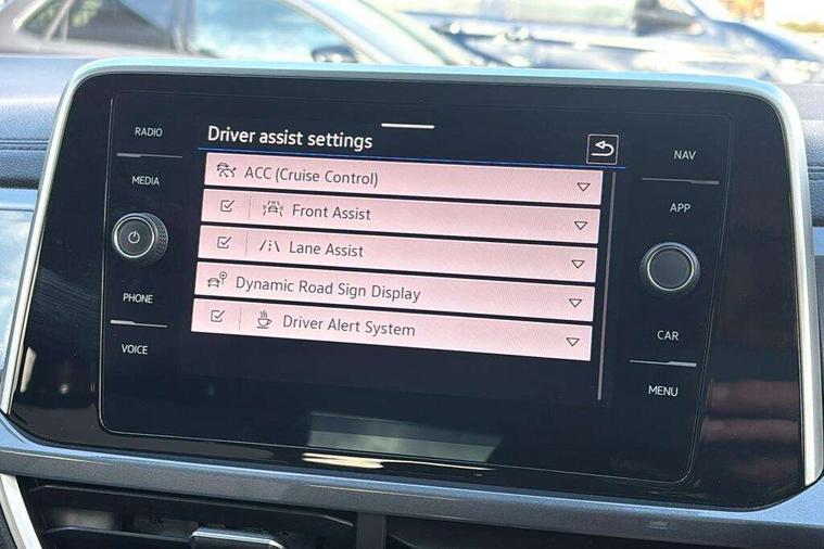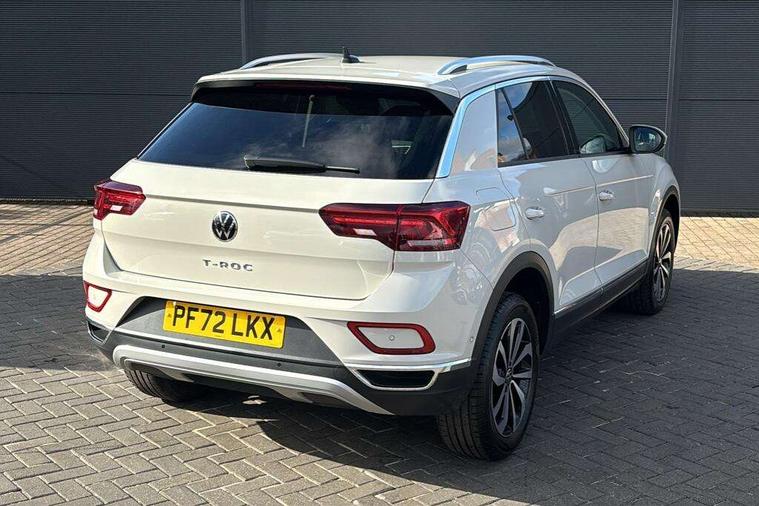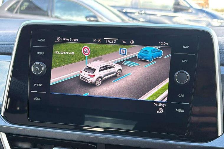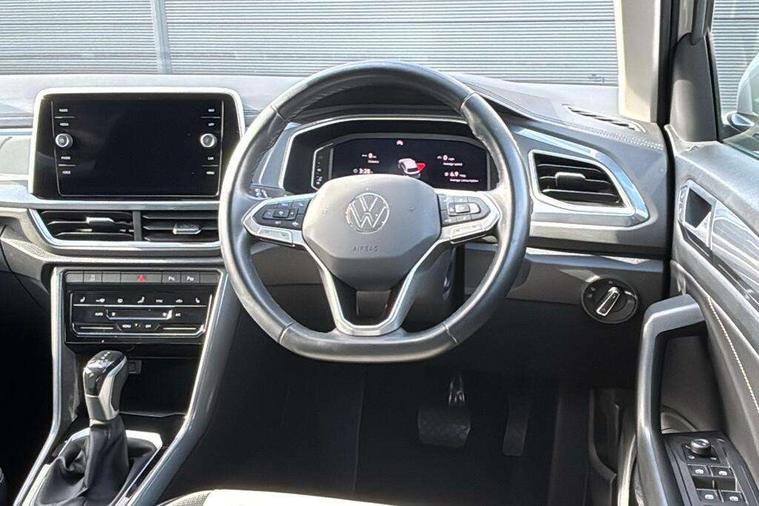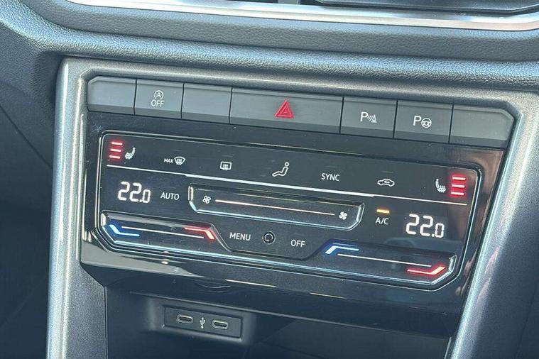 10.25" Digital cockpit pro, Bluetooth mobile phone interface, Driver alert system with fatigue detection, Driver tips and journey analysis, Emergency call service, Lane keeping system Lane Assist, Modified key software - reduce switch off time for key status change to Long no motion, Online services, Park assist including front and rear parking sensors, Service interval indicator, Tailgate/trunk lid release from outside, Think blue trainer driver tips and journey analysis, Warning sound and light for front seatbelts unfastened, Wireless app connect, Battery regeneration during braking, Start/stop function with battery regeneration, Diversity antenna for FM reception, Front and rear 6 speakers, Music playback - MP3, WMA and AAC files, Premium USB cable in choice of either Apple or Android smartphone compatibility, SD card slot, Simultaneous pairing of 2 compatible mobile devices, Title and cover art display, We Connect and We Connect Plus functionality, 3rd brake light, Auto dimming interior rear view mirror, Automatic hazard lights activation under emergency braking, Automatic headlight control with LED separate daytime running lights with coming/leaving home function, Body colour sports bumpers with silver metallic underbody fascia, Dynamic headlight range control with self adjusting whilst driving, Extended roof spoiler, Exterior mirrors aspherical on driver side, convex on front passenger side, External USB type C socket and charging sockets, Front windscreen wiper with intermittent wipe and 4 position delay, Heated rear window, LED Plus headlamps, LED rear combination lamps, LED rear number plate lights, LED tail lamp rear comination lamps, Light mode for poor weather, rain, fog or snow, Power windows with comfort operation and circuit breaker, Rain sensor, Rear exhaust tailpipe, Rear fog light on one side and reversing lights on both sides, Rear side wing doors, Rear wash/wipe with intermittent wipe setting, Remote electrically foldable door mirrors, puddle lights and reverse activated passenger's door mirror, 12V power socket in centre console, 3 rear head restraints, 3 seat bench in 2nd row, 4 load lashing points in luggage compartment, Air care climatronic air conditoning system with active combination filter and 2-zone temperature control, Chrome plated radiator grille inserts, air vent surrounds and light switch surrounds, Door and side trim panel with leatherette insert, Drawer under drivers seat, Front + rear carpet mats, Front centre armrest, Front comfort sports seats, Front cupholders x 2, Front footwell illumination, Instrument lighting, white adjustable panel illumination, Interior ambient lighting and surround lighting, Interior light delay, Isofix child seat preparation, Leather gearshift handle, LED interior light with switch off delay/dimmer and 2 front/rear LED reading lights, Load-through provision with cup holder when folded down ('Unsplit rear seat bench, split folding backrest, with centre armrest), Luggage compartment lighting, Non-folding front passenger seat backrest, Single front passenger seat, Storage compartment in left and right luggage area, Storage compartment in rear doors, Storage compartments in driver and front passenger doors, Sunvisors with illuminated vanity mirrors, Variable boot floor, height adjustable and removable, Driver assistance pack without proactive passenger protection - T-Roc, 3 point height adj front seatbelts + pretensioners, 3 point seatbelts in outer rear with ECE label, ABS, Child locks on rear doors, Driver and front passenger airbag with front passenger airbag deactivation, Driver and front passenger safety-optimised head restraints, Drivers seatbelt reminder, Electronic parking brake, Electronic Stability Control (ESC) inc EDL (Electronic Differential Lock) and ASR (Traction Control), Front and rear passengers curtain airbag system including front side airbags, Front assist with city emergency braking and pedestrian monitoring, Front seat side impact airbags, Predictive pedestrian protection, Rear disc brakes, Single tone horn, Tyre pressure loss indicator, Volkswagen roadside assistance, Alarm with interior protection, Anti-theft alarm system with interior monitoring, backup horn, and towing protection, Remote central locking with SAFELOCK, radio remote control with 2 remote control folding keys, Trims for alloy wheels,