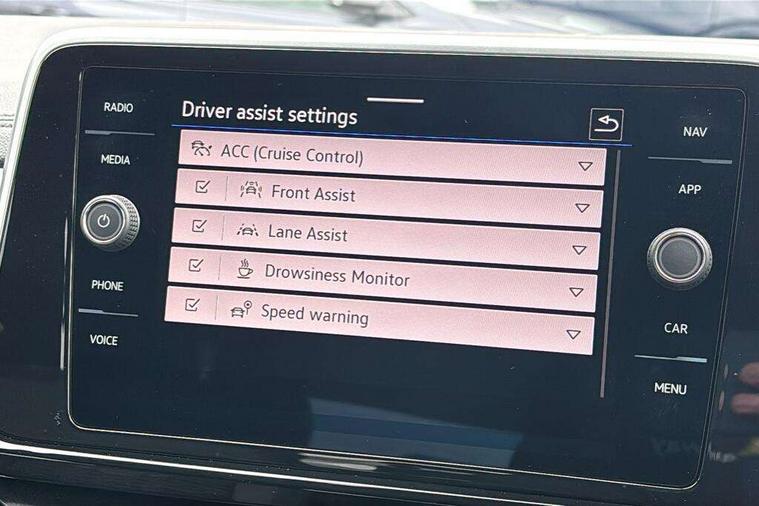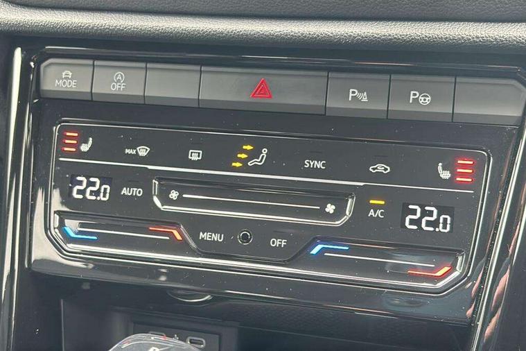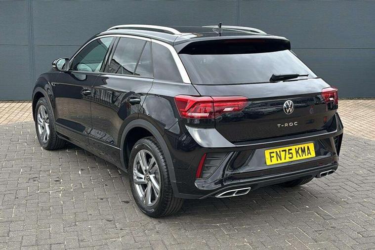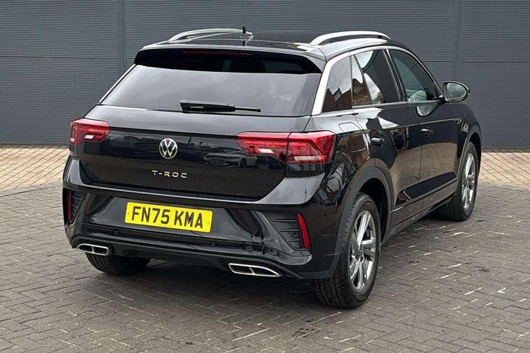 10.25" Digital cockpit pro, Advanced driver attention and drowsiness monitor, Emergency call service, Lane keeping system Lane Assist, Mobile phone interface, Modified key software - reduce switch off time for key status change to Long no motion, Online services, Park assist including front and rear parking sensors, Service interval indicator, Tailgate/trunk lid release from outside, Think blue trainer driver tips and journey analysis, Warning sound and light for front seatbelts unfastened, Wireless app connect, Battery regeneration during braking, Start/stop function with battery regeneration, DAB Digital radio, Diversity antenna for FM reception, Front and rear 6 speakers, Music playback - MP3, WMA and AAC files, Premium USB cable in choice of either Apple or Android smartphone compatibility, SD card slot, Simultaneous pairing of 2 compatible mobile devices, Title and cover art display, We Connect and We Connect Plus functionality, Auto dimming interior rear view mirror, Automatic hazard lights activation under emergency braking, Automatic headlight control with LED separate daytime running lights with coming/leaving home function, Body coloured exterior mirror housings and door handles, Electrically adjustable and heated door mirrors, Extended roof spoiler, Exterior mirrors aspherical on driver side, convex on front passenger side, External USB type C socket and charging sockets, Front windscreen wiper with intermittent wipe and 4 position delay, Heated rear window, LED 3rd brake light, LED rear combination lamps, LED rear number plate lights, Power windows with comfort operation and circuit breaker, Privacy glass for rear side windows and rear window, R-Line design body coloured bumpers, Rain sensor, Rear exhaust tailpipe, Rear fog light on one side and reversing lights on both sides, Rear side wing doors, Rear wash/wipe with intermittent wipe setting, Remote electrically foldable door mirrors, puddle lights and reverse activated passenger's door mirror, 12V power socket in centre console, 3 rear head restraints, 3 seat bench in 2nd row, 4 load lashing points in luggage compartment, Air care climatronic air conditoning system with active combination filter and 2-zone temperature control, Black roof lining, Chrome plated decorative trims, Chrome plated radiator grille inserts, air vent surrounds and light switch surrounds, Door and side trim panel with leatherette insert, Front + rear carpet mats, Front centre armrest, Front cupholders x 2, Front footwell illumination, Front reading light, Front scuff plates with R Line logo, Front seat back storage pockets, Glove compartment door with light, Instrument lighting, white adjustable panel illumination, Interior ambient lighting and surround lighting, Interior light delay, Isofix child seat preparation, Leather gearshift handle, Load-through provision with cup holder when folded down ('Unsplit rear seat bench, split folding backrest, with centre armrest), Luggage compartment lighting, Single front passenger seat, Stainless steel pedals, Storage compartment in left and right luggage area, Storage compartment in rear doors, Storage compartments in driver and front passenger doors, Sunvisors with illuminated vanity mirrors, Variable boot floor, height adjustable and removable, Driver assistance pack without proactive passenger protection - T-Roc, 3 point height adj front seatbelts + pretensioners, 3 point seatbelts in outer rear with ECE label, ABS, Child locks on rear doors, City emergency braking and pedestrian monitoring, Driver and front passenger airbag with front passenger airbag deactivation, Driver and front passenger safety-optimised head restraints, Drivers seatbelt reminder, Electronic parking brake, Electronic Stability Control (ESC) inc EDL (Electronic Differential Lock) and ASR (Traction Control), Front and rear passengers curtain airbag system including front side airbags, Hill start assist, Predictive pedestrian protection, Rear disc brakes, Two tone horn, Tyre pressure loss indicator, Volkswagen roadside assistance, Piano black decorative inserts in dashboard and front door trim panels, Trims for alloy wheels,