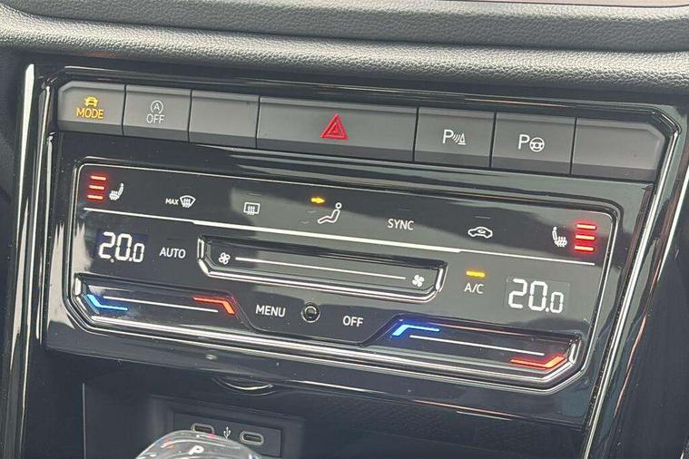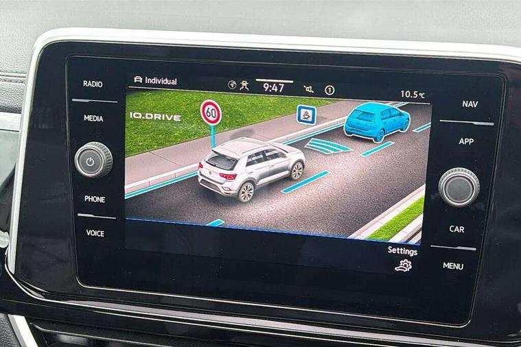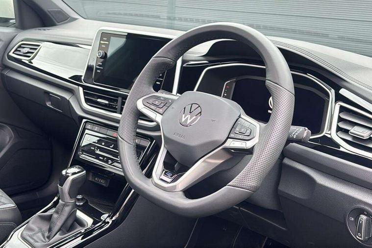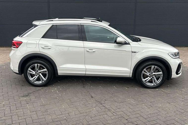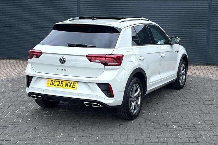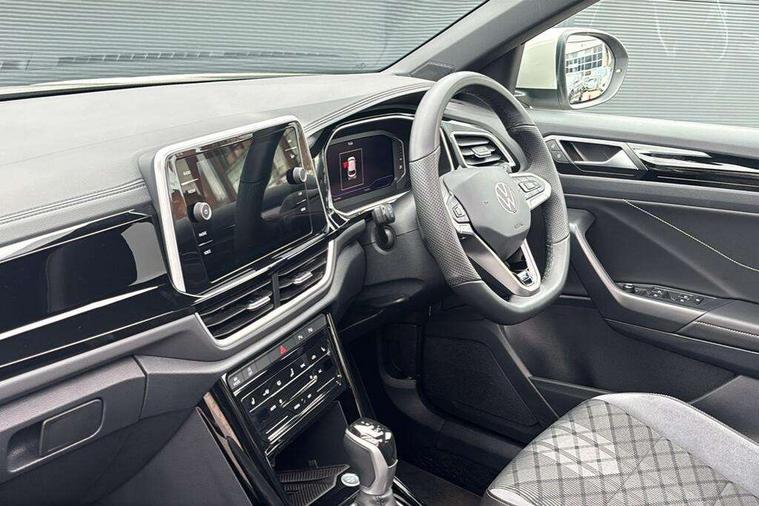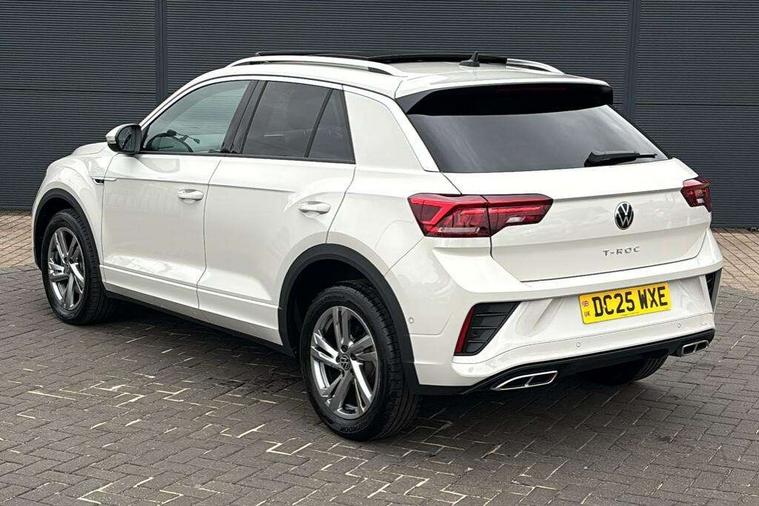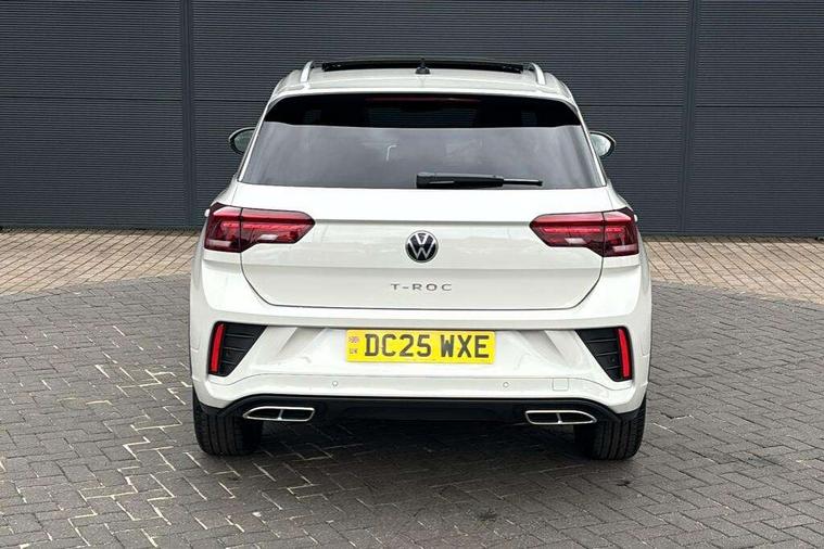 10.25" Digital cockpit pro, Advanced driver attention and drowsiness monitor, Dynamic road sign display, Emergency call service, Lane keeping system Lane Assist, Mobile phone interface, Modified key software - reduce switch off time for key status change to Long no motion, Online services, Park assist including front and rear parking sensors, Service interval indicator, Tailgate/trunk lid release from outside, Think blue trainer driver tips and journey analysis, Warning sound and light for front seatbelts unfastened, Wireless app connect, Battery regeneration during braking, Start/stop function with battery regeneration, DAB Digital radio, Diversity antenna for FM reception, Front and rear 6 speakers, Music playback - MP3, WMA and AAC files, Premium USB cable in choice of either Apple or Android smartphone compatibility, SD card slot, Simultaneous pairing of 2 compatible mobile devices, Title and cover art display, We Connect and We Connect Plus functionality, Auto dimming interior rear view mirror, Automatic hazard lights activation under emergency braking, Automatic headlight control with LED separate daytime running lights with coming/leaving home function, Body coloured exterior mirror housings and door handles, Electrically adjustable and heated door mirrors, Extended roof spoiler, Exterior mirrors aspherical on driver side, convex on front passenger side, External USB type C socket and charging sockets, Front windscreen wiper with intermittent wipe and 4 position delay, Heated rear window, LED 3rd brake light, LED rear combination lamps, LED rear number plate lights, Power windows with comfort operation and circuit breaker, Privacy glass for rear side windows and rear window, R-Line design body coloured bumpers, Rain sensor, Rear exhaust tailpipe, Rear fog light on one side and reversing lights on both sides, Rear side wing doors, Rear wash/wipe with intermittent wipe setting, Remote electrically foldable door mirrors, puddle lights and reverse activated passenger's door mirror, 12V power socket in centre console, 3 rear head restraints, 3 seat bench in 2nd row, 4 load lashing points in luggage compartment, Air care climatronic air conditoning system with active combination filter and 2-zone temperature control, Black roof lining, Chrome plated decorative trims, Chrome plated radiator grille inserts, air vent surrounds and light switch surrounds, Door and side trim panel with leatherette insert, Front + rear carpet mats, Front centre armrest, Front cupholders x 2, Front footwell illumination, Front reading light, Front scuff plates with R Line logo, Front seat back storage pockets, Glove compartment door with light, Instrument lighting, white adjustable panel illumination, Interior ambient lighting and surround lighting, Interior light delay, Isofix child seat preparation, Leather gearshift handle, Load-through provision with cup holder when folded down ('Unsplit rear seat bench, split folding backrest, with centre armrest), Luggage compartment lighting, Single front passenger seat, Stainless steel pedals, Storage compartment in left and right luggage area, Storage compartment in rear doors, Storage compartments in driver and front passenger doors, Sunvisors with illuminated vanity mirrors, Variable boot floor, height adjustable and removable, Driver assistance pack without proactive passenger protection - T-Roc, 3 point height adj front seatbelts + pretensioners, 3 point seatbelts in outer rear with ECE label, ABS, Child locks on rear doors, City emergency braking and pedestrian monitoring, Driver and front passenger airbag with front passenger airbag deactivation, Driver and front passenger safety-optimised head restraints, Drivers seatbelt reminder, Electronic parking brake, Electronic Stability Control (ESC) inc EDL (Electronic Differential Lock) and ASR (Traction Control), Front and rear passengers curtain airbag system including front side airbags, Hill start assist, Predictive pedestrian protection, Rear disc brakes, Two tone horn, Tyre pressure loss indicator, Volkswagen roadside assistance, Piano black decorative inserts in dashboard and front door trim panels, Trims for alloy wheels,