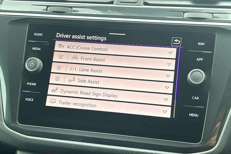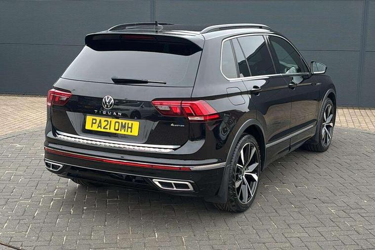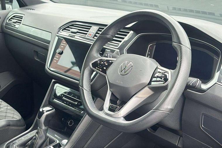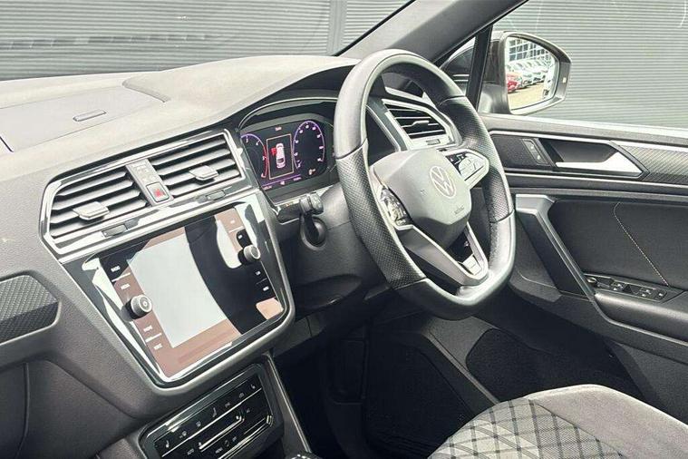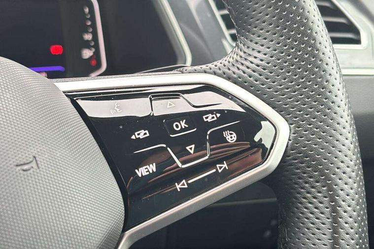 Adaptive cruise control ACC stop and go including speed limiter, App-Connect incl. App-Connect Wireless for Apple CarPlay and Android Auto, Bluetooth phone integration system, Digital Cockpit Pro - Active info display, Distance control assist, Driver alert system, Driver profile selection, Dynamic road sign display, eCall emergency call system, Electromechanical speed sensitive power steering, Lane keeping system Lane Assist, Lights on warning, Multifunction front facing camera, Outside temperature display, Premium multifunction display with multi colour display, Revision / skills operating concept travel assistant, Service interval indicator, Start/stop system with regenerative braking, Warning sound and light for doors and tailgate open, Battery regeneration during braking, Diesel particulate filter, Misfuel prevention device for diesel engine, XDS electronic differential lock for improved traction and handling, 2 USB-C ports in the front, 1 USB-C charging socket on the center console in the rear, Diversity antenna for FM reception, Radio, SD card slot, Simultaneous pairing of 2 compatible mobile devices, SMS functionality - read, compose and send SMS messages using touch-screen display, Title and cover art display, Auto dimming interior rear view mirror, Automatic headlight control system, Black roof rails, Body colour door handles, Body coloured bumpers in R Line style, Chrome moldings on the side windows, Coming/leaving home lighting function, Dynamic headlight range control, Front and rear electric windows, Heated rear window, High level 3rd brake light, Laminated safety glass windshield, heat and sound insulating, LED rear number plate lights, License plate carrier in front and rear, Poor weather light and cornering light, Privacy glass for rear side windows and rear window, R Line body kit, R Line side sills, Rain sensor windscreen wipers, Rear exhaust tailpipe, Rear fog lamp, Rear spoiler in R style, Rear windscreen washer and wiper with interval delay, Side and rear windows in heat insulating glass, Trailer Stability Programme, Unique R Line badging, Windscreen wipers/ intermittent wipe + 4 position delay, 12V outlet in center console rear and in luggage compartment, 2 cup holders in front, 2 LED front reading lights, 2 LED rear reading lights, 3 rear headrests, 4 load lashing points, 40:20:40 split folding rear seats, Air Care Climatronic 3 zone automatic climate control with enhanced air filter and controls in the rear, Backrest release for left front seat, Black headlining, Brushed stainless steel pedals and footrest, Carpet mats in front and rear with decorative stitching in Gray, Climate control unit rear with touch function, Door and side trim panel in foam film, insert in leatherette, Front footwell illumination, Front seats head restraints (x-adjustment), Height adjustable front seats, Height/reach adjust steering wheel, Instrument lighting white adjustable panel illumination, Interior light with delay, Isofix Preparation 2 Rear child seats, Leather gear knob, Lockable cooled glovebox, Luggage compartment lighting, Rear bench seat asymetrically split folding, longitudinally movable and folding with load-through hatch and center armrest, Remote unlocking for rear seat backrest, Removable luggage cover, Safety optimised front head restraints, Sliding/reclining rear seats, Standard rear seat release, Storage compartment in driver's door, Storage compartment in passenger's door, Storage compartment in rear doors, Storage compartments in luggage area left and right, Storage tray on dashboard, Sun visors with illuminated vanity mirrors, Tool kit, Top front comfort seats, Variable boot floor, height adjustable and removable, Ambience pack - Tiguan R Line, Driver assistance pack plus - Tiguan, 3 point seat belt for centre rear seats, 3 point seat belts with seat belt pretensioners for the outer rear seats, Active bonnet, Curtain airbags for front and rear passengers, Driver/Front Passenger airbags, Drivers knee airbag, Electronic parking brake with auto hold, Electronic Stability Control with driver steering recommendation, ABS, ASR, EDL, EDTC and trailer stabilization, Front assist with autonomous emergency braking (for Adaptive Cruise Control ACC up to 130 mph), Front disc brakes, Front passenger airbag deactivation, Front side airbags, Height adjustable front 3 point seatbelts + pretensioners, Hill hold control, Pedestrian monitoring system, Proactive passenger protection system in combination with front assist, Rear disc brakes, Rigid safety cell with front and rear crumple zones, Two tone horn, Warning sound and light for front seat belts if unfastened, Anti theft alarm system with interior monitoring, backup horn and towing protection, Anti theft wheel bolts, Electronic engine immobiliser, 20" Misano black with diamond turned surface alloy wheels with Airstop tyres,