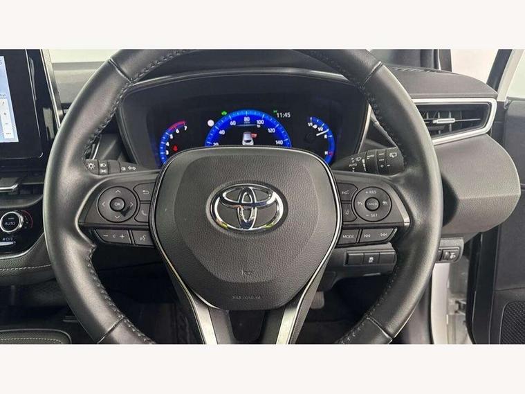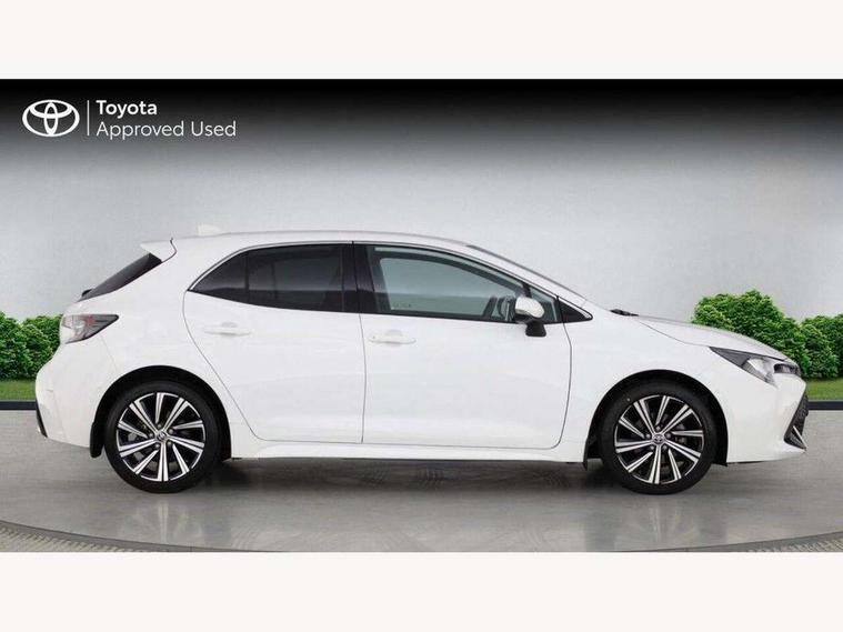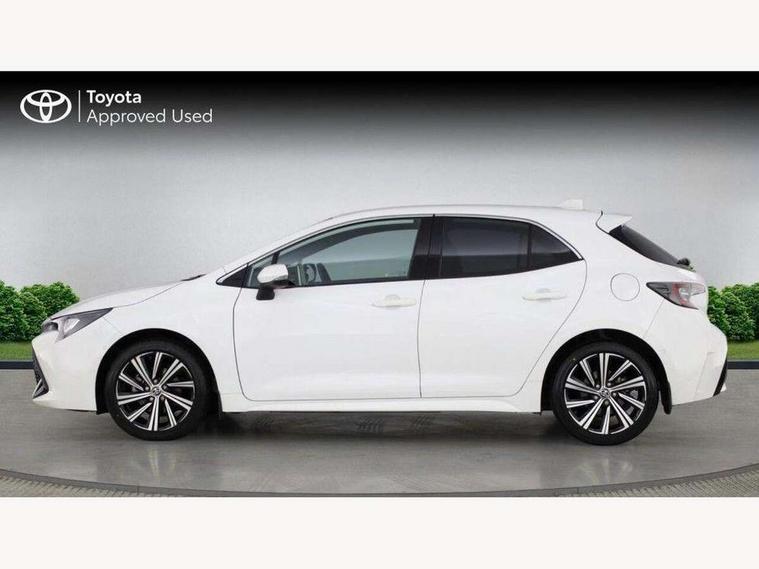 7" Multi information display screen, Bluetooth telephone connectivity, Connected car functionality upgrade, tracker, remote status and e-care, Door trim and centre console material, Dynamic radar cruise control (with RSA) including switch on steering wheel, E-call, Electrically assisted power steering, EV drive indicator, Intelligent park assist, Lane Departure Alert (LDA) switch on steering wheel, Memory on adjustable speed limiter, Push button start, Reversing camera, Smartphone integration with Apple CarPlay and Android auto, Gasoline particulate filter, Vehicle Stability Control (VSC), 6 speakers, 8" Touchscreen with MM19 Multimedia system and voice recognition, AM/FM radio, DAB Digital radio, Toyota touch 2 with go navigation system, USB and Aux in connectors + 12V front outlet, Anti-jam protection on power windows, Auto dimming inside rear view mirror, Auto up and down function on all power windows, Automatic folding mirrors, Automatic headlights with high beam assist, Black metallic surround on lower front grille, Black toyota logo in front, Black window frames, Body colour rear spoiler, Body coloured bumpers, Body coloured door mirrors, Body coloured outside door handles, Follow me home headlights, LED daytime running lights, LED front fog lights, LED Headlights, LED High mounted stop light, LED rear combi lights with LED lightguide, Power adjustable heated door mirrors, Power front windows, Power rear windows, Privacy glass, Rain sensing wipers, Rear side wing doors, Rear window defogger, Rear window wiper, Reverse tilting door mirrors, Shark fin antenna, Time adjustment on intermittent wiper, Turning signal integrated indicators in door mirrors, Unique lower skirt, Unique side rocker with black insert, UV-filter on driver and passenger windows, 3 rear headrests, 3 seat bench in 2nd row, 3 spoke leather steering wheel + gear knob, 60/40 split folding rear seat, Adjustable speed limiter switch on steering wheel, Audio, multimedia and telephone switches on steering wheel, Blue ambient interior illumination to centre tray, front cup holders and front door trim, Boot light, Centre room light, Clean air filter, Driver and front passenger personal light, Driver and passenger assist grip, Driver and passenger sun visor with mirror and light, Dual zone automatic air conditioning with ECO mode switch, Fabric/synthetic leather upholstery, Front and rear cup and bottle holders, Front door pockets, Front head restraints, Front passenger seat, Heated driver and front passenger seats, Illuminated entry system in room lamp, ISOFIX seat fixing (2 fixings on rear outer seats), Leather gear shift with satin chrome on gear shift console, Leather style armrests, Manual height adjustable for driver and front passenger seat, Parcel shelf, Passenger seat back pocket, Pollen filter, Power adjustable lumbar support on driver seat, Power window switches with satin chrome inserts, Rear armrest with 2 cupholders, Rear passenger coat hooks (2), Satin chrome inside door handles, Shopping bag hooks in luggage compartment, Sliding armrest on centre console box, Slow opening glovebox with lights, Tilt/telescopic steering column, Voice recognition switch on steering wheel, Whiplash Injury Lessening (WIL) feature (active headrest) for seats, Parking pack - Corolla, Toyota safety sense 2 pack - Corolla, 3x3 point rear seatbelts, Adjustable driver and front passenger seat belt extender to top anchor point, Anti lock braking system + Electronic brake force distribution, Brake assist function, Child locks on rear doors, Downhill Assist Control (DAC), Electronic parking brake, Emergency brake light signal (EBS), Front passenger airbag on/off switch, Front seatbelt reminder, HAC - Hill start assist control, Rear seat belt reminder, Seatbelt pretensioners and force limiters, Supplemental restraint system (SRS) 7 airbags - dual driver, dual side curtain, side impact and driver knee airbags, Traction control, Tyre pressure warning system, Acoustic vehicle alert system (AVAS), Alarm with motion sensor and immobilizer, Remote central locking + deadlocks, Smart entry, Satin chrome dash trim, Soft touch texture on upper dashboard, Unique wheel finish with red wheel cap,