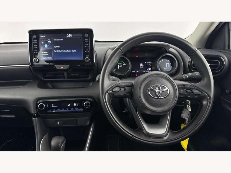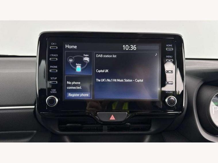 Adaptive cruise control, Adjustable speed limit with speed warning, Bluetooth connectivity, Colour binocular inspired displays with digital speedometer, E-call, Electric power steering, Hybrid energy display, Multi information display switches on steering wheel, Reversing camera, Smartphone integration with Apple CarPlay and Android auto, Tailgate, Voice recognition, Vehicle Stability Control (VSC), 4 speakers, 8" Multimedia display touch screen, USB connection, Acoustic windscreen glass, Auto windscreen wipers, Automatic headlights, Body coloured door mirrors, Electric adjustable heated door mirrors, Follow me home headlights, Front auto power windows with anti jam protection, Full LED rear lights, LED daytime running lights, LED front fog lights, LED front light guide, LED Headlights, LED High mounted stop lamp, LED Indicators, LED rear light guide, Manual headlight levelling, Painted chequered front grille, Rain sensor, Rear auto power windows with anti jam protection, Rear privacy glass, Rear side wing doors, Rear spoiler, Rear wiper, Shark fin antenna, Turning signal integrated indicators in door mirrors, Variable front intermittent wipers, 3 adjustable rear headrests, 3 spoke leather steering wheel, 60/40 split folding rear seat, Active headrests, Adjustable boot height, Auto air conditioning, Coat hooks in rear grab handles, Cup holders (2 front & door), Data Communication Module (DCM) connected services, Fabric upholstery, Front armrest, Glovebox, Grey roof lining, Height adjustable driver's seat, Isofix seat fixing, Leather gearshift, Pollen filter, Shopping bag hooks, Single front passenger seat, Tilt/telescopic steering column, 3 point seatbelts on all rear seats, ABS+EBD+Brake assist, Electronic parking brake, Emergency brake light system (EBS), Front passenger airbag on/off switch, Front seatbelt reminder, Hill start assist control (HAC), Rear child proof door locks, Rear seat belt reminder, Supplemental Restraint System (SRS) 8 airbags: Driver & passenger's airbags, dual side curtain airbags, side impact airbags, front centre airbag, Toyota Safety Sense 2, Precollison + Night time Pedestrian & Cyclist Detection, Lane Trace Assist, Auto High Beam, Intelligent ACC & Road Sign Assist, Tyre pressure warning system, 2x Master key, Alarm/immobiliser, Remote powered central double locking doors, Soft touch instrument panel, Space saver spare wheel,