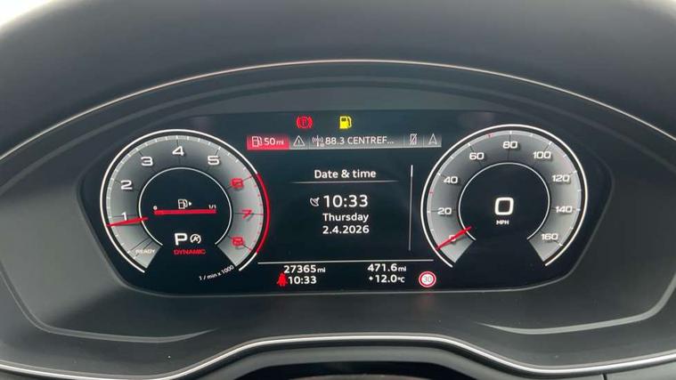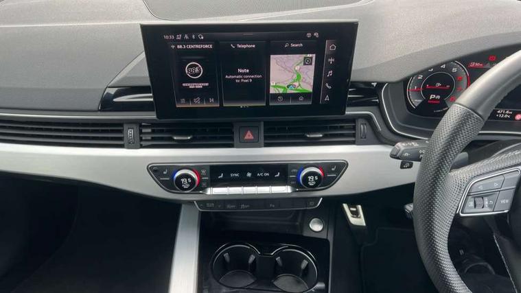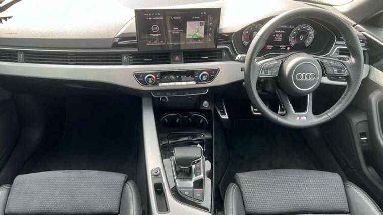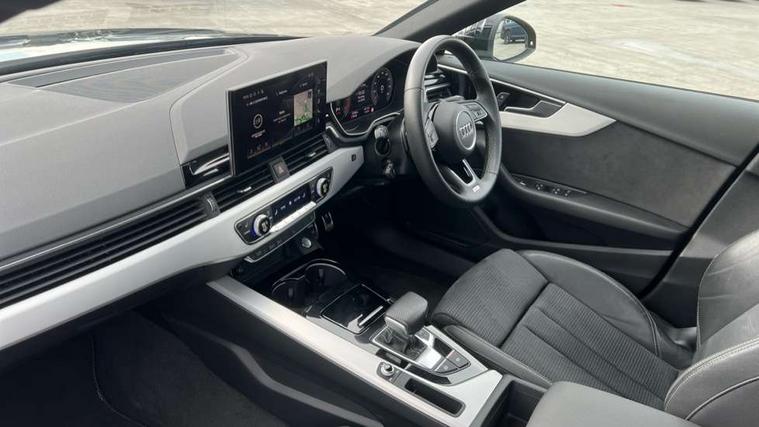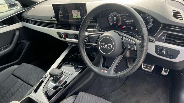 Audi connect safety and service (e-call), Audi drive select, Audi smartphone interface, Audi virtual cockpit, Automatic start-stop system with coasting functionality and efficiency programme, Bluetooth interface, Camera based traffic sign recognition, Electromechanical power steering, Email, calendar and text messages displayed via MMI, Front and rear parking sensors, Lane departure warning, MMI Navigation plus with MMI touch includes 10.1" high resolution colour MMI display, 3D map, Power operated tailgate, Rear view camera, Voice control system, 54 litre fuel tank, Sports suspension lowered by 23mm, 2 USB charging ports, 8 passive loudspeakers, DAB digital radio reception, Aluminium roof rails, Auto dimming rear view mirror, Body colour door handles, Body colour front spoiler lip, Body colour side sill trim, Body coloured door mirrors, Electric adjustable/heated/folding door mirrors with auto dimming, Grained matt black side air inlets with matt aluminium silver inlay, High beam assistant, Honeycomb structure radiator grille in grained matt black, LED headlights with LED rear lights + dynamic rear indicators + headlight adjustment and high beam, turning light + LED daytime running lights, LED third brake light, Matt aluminium silver tailpipe trim, Privacy glass, Rain and light sensors, Rear side wing doors, Rear wiper, S Line badges on the front wings, S line front and rear bumpers with side skirts, S Line rear diffuser in matt anthracite black with trim strip in matt aluminium silver, S Line roof edge spoiler, Variable intermittent front wash/wipe, Windscreen with acoustic glazing, 3 spoke high multi-function sports leather steering wheel grips in perforated leather with S badging including paddle shift, 4 way electric lumbar support for driver and front passenger, 40/20/40 split folding 3 rear seat bench in 3 parts with rear centre armrest, Black carpets, Black cloth headlining, Black perforated leather gearknob, Contrast stitching on seats, steering wheel and gear lever gaiter, Deluxe 3 zone electronic climate control, Electric load area cover, Front and rear head restraints, Front centre armrest, Heated front seats, Illuminated door sill trims with S logo, ISOFIX child seat mounting and top tether, Manual seat adjustment, Single front passenger seat, Stainless steel pedals and foot rest, High gloss package - A4, LED Interior light pack - A4/S4, 3 rear seatbelts, 6 airbags - Driver, front passenger, curtain and side windows, Attention and drowsiness assist, Electronic Stabilisation Control (ESC) including ABS, ASR and EDL, Hill hold assist, Multi collision brake assist, Pop-up bonnet for pedestrian protection, Pre sense city, Rear door child safety locks, Seatbelt monitoring, Warning triangle and first aid kit, Anti theft alarm, Anti theft wheel bolts, Central locking, Keyless Go, Matt brushed aluminium inlays, Tool kit, Tyre repair kit,