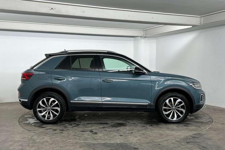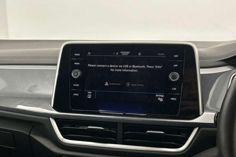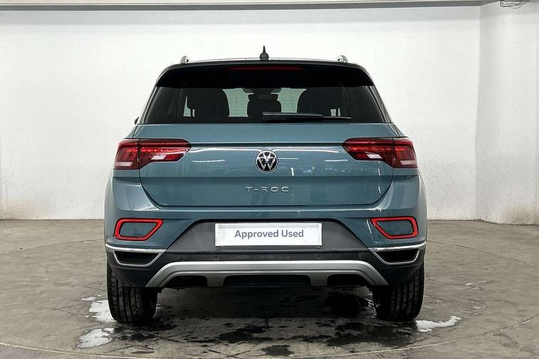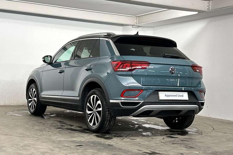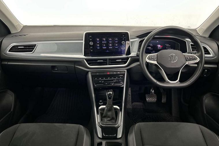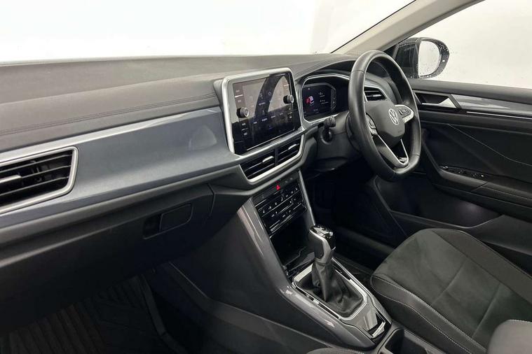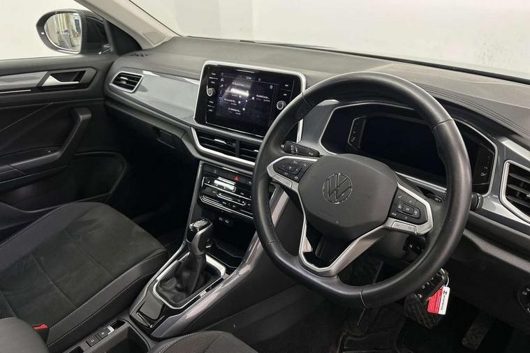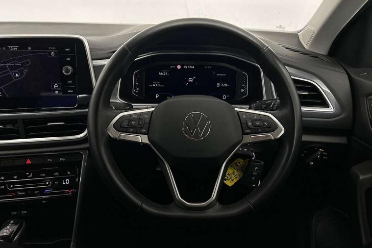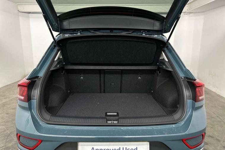10.25" Digital cockpit pro, Bluetooth mobile phone interface, Driver alert system with fatigue detection, Driver tips and journey analysis, Emergency call service, Lane keeping system Lane Assist, Modified key software - reduce switch off time for key status change to Long no motion, Online services, Park assist including front and rear parking sensors, Service interval indicator, Tailgate/trunk lid release from outside, Think blue trainer driver tips and journey analysis, Warning sound and light for front seatbelts unfastened, Wireless app connect, Battery regeneration during braking, Start/stop function with battery regeneration, Diversity antenna for FM reception, Music playback - MP3, WMA and AAC files, Premium USB cable in choice of either Apple or Android smartphone compatibility, SD card slot, Simultaneous pairing of 2 compatible mobile devices, Title and cover art display, We Connect and We Connect Plus functionality, 3rd brake light, Auto dimming interior rear view mirror, Automatic hazard lights activation under emergency braking, Automatic headlight control with LED separate daytime running lights with coming/leaving home function, Body colour sports bumpers with silver metallic underbody fascia, Dynamic headlight range control with self adjusting whilst driving, Extended roof spoiler, Exterior mirrors aspherical on driver side, convex on front passenger side, External USB type C socket and charging sockets, Front windscreen wiper with intermittent wipe and 4 position delay, Heated rear window, LED rear combination lamps, LED rear number plate lights, LED tail lamp rear comination lamps, Light mode for poor weather, rain, fog or snow, Power windows with comfort operation and circuit breaker, Rain sensor, Rear exhaust tailpipe, Rear fog light on one side and reversing lights on both sides, Rear side wing doors, Rear wash/wipe with intermittent wipe setting, Remote electrically foldable door mirrors, puddle lights and reverse activated passenger's door mirror, 12V power socket in centre console, 3 rear head restraints, 3 seat bench in 2nd row, 4 load lashing points in luggage compartment, Air care climatronic air conditoning system with active combination filter and 2-zone temperature control, Chrome plated radiator grille inserts, air vent surrounds and light switch surrounds, Door and side trim panel with leatherette insert, Drawer under drivers seat, Front + rear carpet mats, Front centre armrest, Front comfort sports seats, Front cupholders x 2, Front footwell illumination, Instrument lighting, white adjustable panel illumination, Interior ambient lighting and surround lighting, Interior light delay, Isofix child seat preparation, Leather gearshift handle, LED interior light with switch off delay/dimmer and 2 front/rear LED reading lights, Load-through provision with cup holder when folded down ('Unsplit rear seat bench, split folding backrest, with centre armrest), Luggage compartment lighting, Non-folding front passenger seat backrest, Single front passenger seat, Storage compartment in left and right luggage area, Storage compartment in rear doors, Storage compartments in driver and front passenger doors, Sunvisors with illuminated vanity mirrors, Variable boot floor, height adjustable and removable, Driver assistance pack without proactive passenger protection - T-Roc, 3 point height adj front seatbelts + pretensioners, 3 point seatbelts in outer rear with ECE label, ABS, Child locks on rear doors, Driver and front passenger airbag with front passenger airbag deactivation, Driver and front passenger safety-optimised head restraints, Drivers seatbelt reminder, Electronic parking brake, Electronic Stability Control (ESC) inc EDL (Electronic Differential Lock) and ASR (Traction Control), Front and rear passengers curtain airbag system including front side airbags, Front assist with city emergency braking and pedestrian monitoring, Front seat side impact airbags, Predictive pedestrian protection, Rear disc brakes, Single tone horn, Tyre pressure loss indicator, Volkswagen roadside assistance, Anti-theft alarm system with interior monitoring, backup horn, and towing protection, Remote central locking with SAFELOCK, radio remote control with 2 remote control folding keys, Trims for alloy wheels,