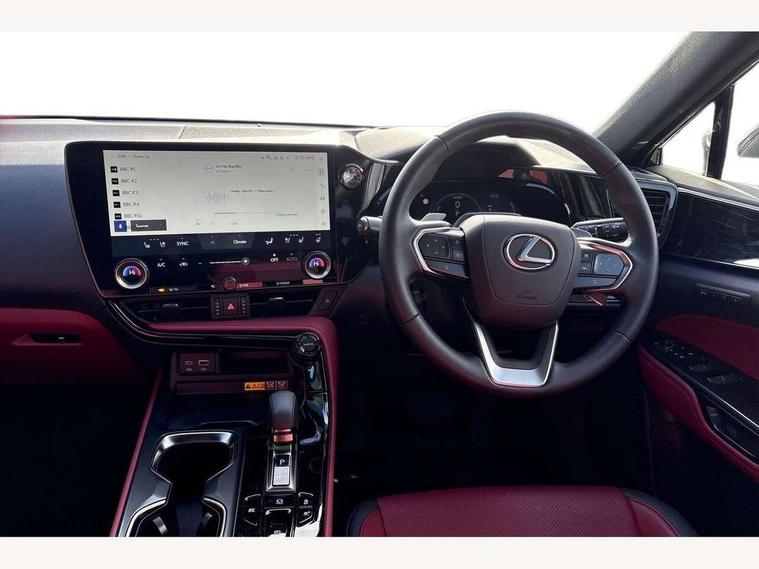 360 degree panoramic view monitor, 7" colour multi information display, 7" display in instrument binnacle, Blind spot monitoring with rear cross traffic alert, Bluetooth telephone connectivity, Digital speedometer, Drive mode select (Eco, Normal, Sport), Driver monitor camera, eCall emergency system, Electric speed sensitive power steering, Emergency driving stop system, Emergency steering assist, Front cyclist detection, Front motorcycle rider detection daytime, Head up Display, Intelligent parking sensors - 4 front and 4 rear with object and pedestrain detection, Intersection turn assist, Lane change flasher function, Lexus link connect - Cloud based navigation, cloud based voice assistant, always online, 14" HD touchscreen, embedded nav and faster CPU, Pre-crash system, Proactive driving assist (PDA), Push button starter, Reversing camera with back guidelines, Road sign linked speed limiter, Service interval indicator, Tailgate, Tailgate electric lift and close, Tailgate height memory function, Tazuna cockpit with 7" improved meters display, 10" HUD and capacitive touch steering wheel switches, Trip meter, Variable ratio rack steering, Wireless Apple CarPlay/Android Auto, Wireless Smartphone charger, All Wheel Drive (AWD), Hybrid automatic transmission, Key cylinder protector, Predictive efficient drive, Standard suspension, Vehicle Dynamics Integrated Management (VDIM), Vehicle Stability Control (VSC), 10 speakers, 3 USB Type-C charging ports, DAB Digital radio, 4 eye LED headlight with adaptive high beam, Acoustic glass (front side and windshield glass), Active brake lights, Auto dimming interior rear view mirror, Auto levelling headlights, Automatic headlights, Automatic rear flashing hazard lights, Black roof, Body coloured door handles, Body coloured door mirrors, Body coloured roof spoiler, Double hidden exhaust pipes, Electrically adjustable door mirrors, Electrochromatic driver's door mirror, Front and rear one touch power windows, with anti-jam protection, Heated and auto folding door mirrors, Hidden exhaust in rear bumper, LED brake lights and rear lights with emergency brake signal, LED cornering lights, LED daytime running lights, LED front fog lights, LED front indicators, LED rear fog lights, Muffler, Optical rear view mirror, Power back door with kick sensor, Privacy glass, Puddle lights, Radiator grille, Rain sensor windscreen wipers, Rear side wing doors, Rear wiper, Roof rails, Shark fin antenna, Silver roof rails, Stainless steel scuff plates with LEXUS name, Ultra Violet (UV) and heat insulating tinted glass, 12V accessory port centre console and luggage compartment, 12V socket in front and boot, 12V socket in rear, 2 cupholders in front centre console, 2 way manually adjustable front headrests, 2 way manually adjustable rear headrests, 2 x fixed shopping bag hooks in boot, 2 x sun visors with vanity mirror and lamp, 3 seat bench in 2nd row, 3 spoke leather trimmed steering wheel, 4 way electrical lumbar adjustment for driver, 4 x tie down hooks in the boot, 60/40 split folding rear seat, 8 way driver/passenger electrically adjustable front seats, Adjustable rear seat backrest, Automatic air circulation control, Card holder installed in driver and passengers sun visors, Centre armrest with storage box, Chrome side windows frame moulding, Driver seat easy entry and exit function, Driver seat memory function, Driving position memory for 3 users (seat, steering wheel & door mirrors), Dual zone climate control air conditioning system with humidity sensor, Electric adjustable steering column, Electronic climate control with nanoeTM, Front and rear textile carpet mats, Front passenger seat, Glove box with key, Heated and ventilated front seats, Heated steering wheel, Illuminated entry system, Leather gearshift, LED ambient lighting, LED boot light, LED Glovebox light, LED interior illumination, Lexus climate concierge, Luggage cover manually folding, Overhead front console sunglasses holder, Paddle shifts, Rear centre armrest with 2 cupholders, S-Flow technology for climate control, Smooth leather upholstery, Steering wheel easy entry and exit function, Steering wheel mounted customizable touch control, USB port (Type - A) front centre console, Whiplash Injury Lessening (WIL) feature (active headrest) for seats, 3 point ELR front seatbelts with pretensioners, 3x3 point rear seat belts, ABS, Acoustic vehicle alerting system, Adjustable seat belt anchor points, Driver 2 stage airbag, Driver/front passenger side airbags, Drivers knee airbag, E-Latch with safe exit assist, EBD + Brake Assist, ECB (Electronically Controlled Brake System), Electronic parking brake, Front and rear curtain shield airbags, Front center airbag, Front passenger seat cushion airbag, Front passenger single stage airbag, Front wheel brake - 328/34mm discs, Hill assist control, Lexus safety system - dynamic radar cruise control, pre collision system day and night, lane tracing assist, road sign, automatic high beam, OTA, Manual rear child locks, Outer rear seatbelt pretensioners, Passenger airbag cut-off device, Rear wheel brake - 17inch discs, Safety kit, Traction control, Tyre pressure warning with auto location, Anti-theft system with alarm, intrusion sensor, glass breakage sensor, tilt sensor and engine immobiliser, Double door lock, Locking wheel nuts, Smart entry ( front/rear/boot), Smart key, Speed sensitive auto door locking, Ultra Wide Band (UWB) Anti-theft system, VIN Window etching, Wireless door lock, 3D prism black Inlay, Organic inlay, Extended mobility tyres, Resin moulding wheel arches, Run flat tyres,