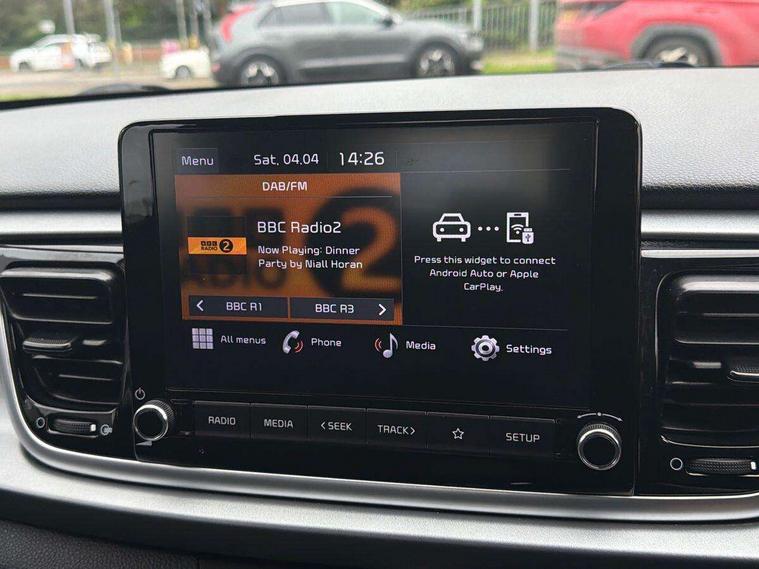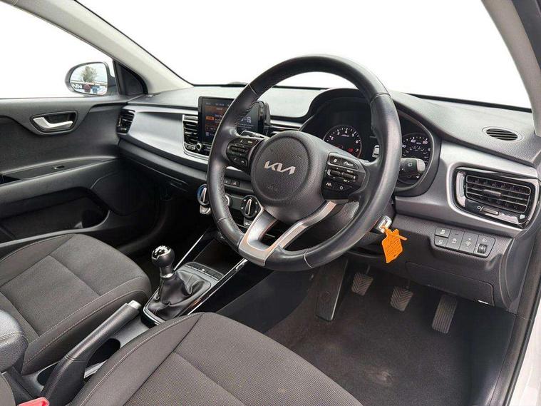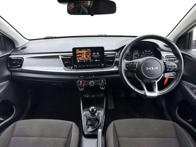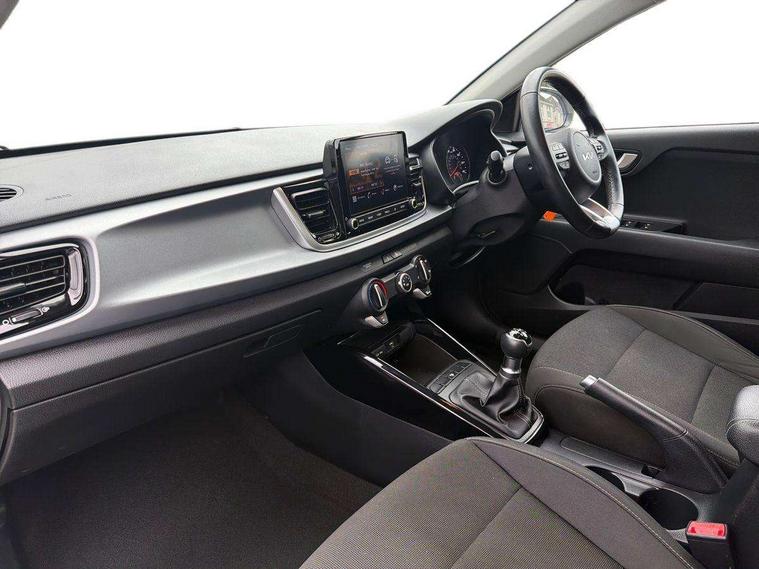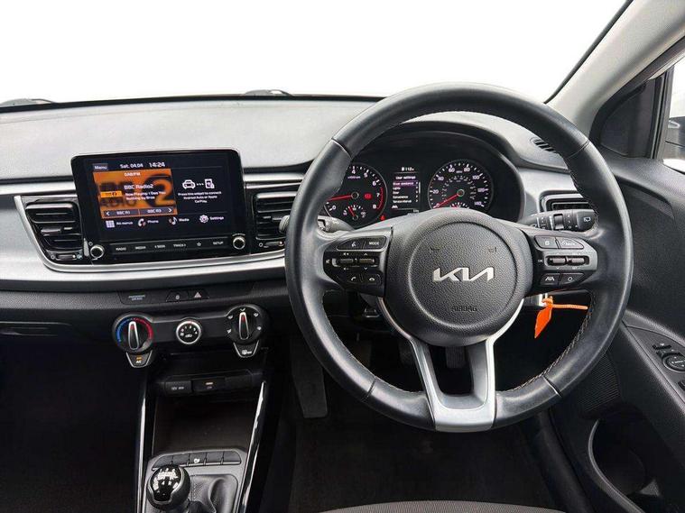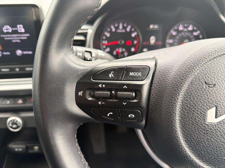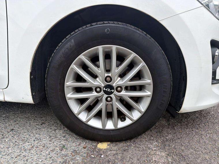 8" touch screen, Apple car play/Android Auto, Cruise control + speed limiter, Digital clock, Electric power steering, Emergency call service, Emergency stop signalling system, Gear selection indicator, Manual speed limit assist (MLSA), Outside temperature display, Rear parking sensor, Reversing camera system with dynamic guidelines (Integrated into centre fascia screen), Tachometer, Tailgate, Trip computer, Voice control system, Windscreen washer level indicator, Intelligent Stop and Go, 6 speakers, Bluetooth connectivity including audio streaming, DAB Digital radio, Front USB port for media connection, Rear USB port, Steering wheel mounted audio controls, 3rd brake light, Aeroblade-type front wipers, Automatic lighting control, Bi-function projection headlights, Black grille with chrome surround, Body colour bumpers, Body colour door handles, Body coloured door mirrors, Cornering light, Electric adjustable/heated/folding door mirrors, Front electric windows with driver's auto up/down function, Headlamp levelling, Heated rear window, LED daytime running lights, LED indicators in door mirrors, Projection front fog lights, Projection headlights, Rear electric windows, Rear fog lamp, Rear side wing doors, Rear wash/wipe, Speed variable front wipers, Tinted glass, Welcome home function, 3 passenger assist grips, 3 seat bench in 2nd row, 60/40 split/folding 2nd row of seats, Air conditioning, All round height adjustable headrests, Centre Console with Storage Box and Sliding Armrest, Dash illumination dimmer switch, Driver's seat height adjuster, Driver/passenger sunvisors and illuminated vanity mirrors, Front and rear door map pockets with bottle holder, Front passenger seatback pockets, Front USB charger port and 12V socket, ISOFIX top tethers and lower anchor points, Leather trimmed gearshift, Leather trimmed steering wheel, Load area light, Luggage area parcel shelf, Luggage hooks, Overhead console with sunglasses holder, Premium cloth upholstery, Silver interior door handles, Single front passenger seat, Tilt/telescopic adjustable steering wheel, Advanced driving assistance pack - Rio, 3-point front seatbelts, 3x3 point rear seatbelts, ABS with Electronic Brakeforce Distribution (EBD) and Brake Assist System (BAS), Automatic unlocking of doors in case of impact, Cornering brake control (CBC) and Straight line stability (SLS), Electronic stability control (ESC) and vehicle stability management (VSM), Front seatbelt pretensioners + load limiters, Height adjustable front seatbelt anchors, Hill start assist control (HAC), Passenger airbag deactivate switch, Rear child proof door locks, Seatbelt warning, Traction control, Twin curtain airbags, Twin front airbags, Twin front side airbags, Tyre pressure monitoring system, Anti theft alarm, Deadlocking system, Engine immobiliser, Locking wheel nuts, Remote central door and tailgate locking with fold-away key, Speed sensitive auto door locking, Visible vehicle identification number, Silver fascia trim, 15" Alloy wheels, Tyre mobility system,