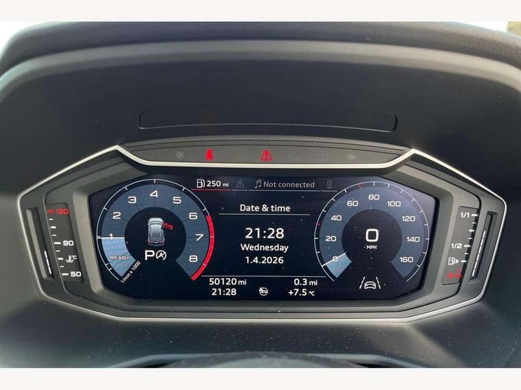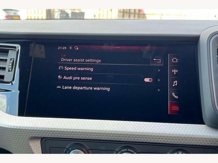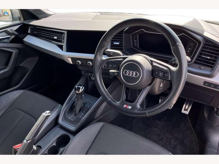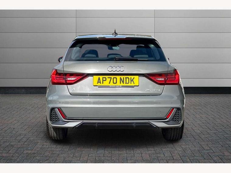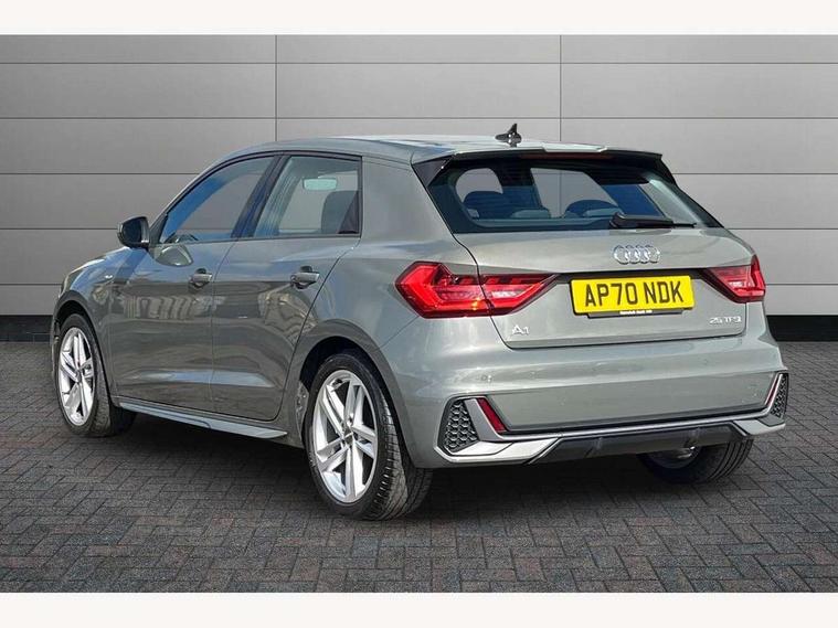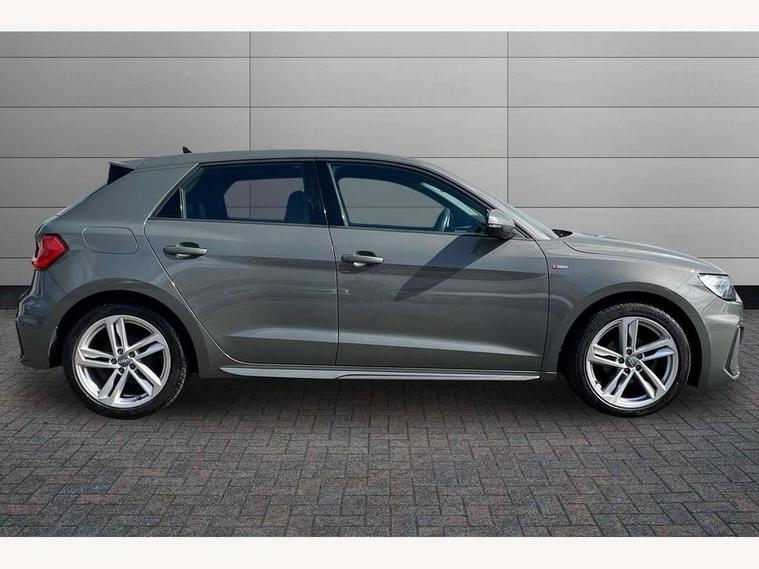 10.25" Digital instrument cluster display classis style instrument dials + speed, odometer, time, outside temperature, telephone menu + fuel level warning, Audi connect safety emergency and service including E-call, Audi smartphone interface with connect compatible smartphone via USB directly MMI display + Nav, music, third party apps controlled via MMI controller, Automatic start/stop system, Bluetooth interface, Cruise control, Driver's information system, Electromechanical power steering, Lane departure warning system, Rear parking sensor, Service interval indicator, Speed limiter, Voice control system, Washer fluid level indicator, Sports suspension, 1 x SDXC card reader, 1 x USB type C and 1 USB type A charging points, DAB Digital radio, MMI radio plus with 8.8" colour MMI display screen and MMI touch, Auto dimming rear view mirror, Body coloured door mirrors, Door sills with aluminium inlays and S Line logo, Electric front and rear windows, Electrically adjustable, heated, folding door mirrors with integrated LED side indicator, Front side air inlets in grained matt black and C frame in titanium black, Heat insulating glass windscreen and side windows, Heated rear windscreen, LED headlights with LED rear lights + dynamic rear indicators + headlight adjustment and high beam, turning light + LED daytime running lights, Radiator grille and rear diffuser in matt titanium black, Radiator protective grille frame in matt aluminium silver, Rain and light sensors, Rear fog lights, Rear wiper, S line badges on front wings, Side front spoiler lips in grained matt black, 12V socket in centre console with two cup holders, 3 rear seats with headrests, 40:60 Split folding rear seat or folded fully, Black cloth headlining, Driver and passenger seat with manual height adjust with forward and backwards adjustment, Front and rear black floor mats with contrast stitching in fine silver, Front head restraints, Height and reach adjustable steering wheel, ISOFIX child seat mounting for front passenger and outer rear seats including top tether attachment point of outer rear seats, Leather gear knob with aluminium trim, Luggage compartment light with front and rear reading lights, Manually adjustable lumbar support in front seats, Stainless steel pedals, LED interior lighting pack - A1, Luggage compartment pack - A1, S line exterior styling pack - A1 Sportback, 3x3 point rear seatbelts, Audi pre-sense front with pedestrain and cyclist recognition, Brake assist function, Driver and front passenger airbag with front side and head airbags, Electronic Stability Control including ABS, EBD, ASR and EDL, Front and rear seatbelt reminder, Front passenger airbag deactivation switch, Hill hold assist, Seatbelt height adjustment for front seats, Seatbelt monitoring, Tyre pressure warning light, Warning triangle and first aid kit, Anti theft alarm, Anti theft wheel bolts and loose wheel warning, Immobiliser, Remote central locking with 2 foldaway keys, Aluminium trim for control switches, air vents and digital instrument cluster, Silver grey inlays polygon structure in diamond paint finish, Structured grey accent areas including air vents, door handle recesses and centre console in quartz paint finish,