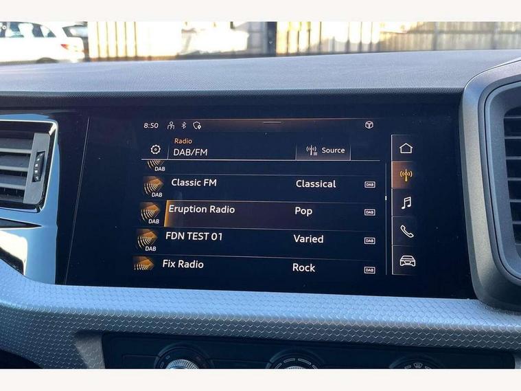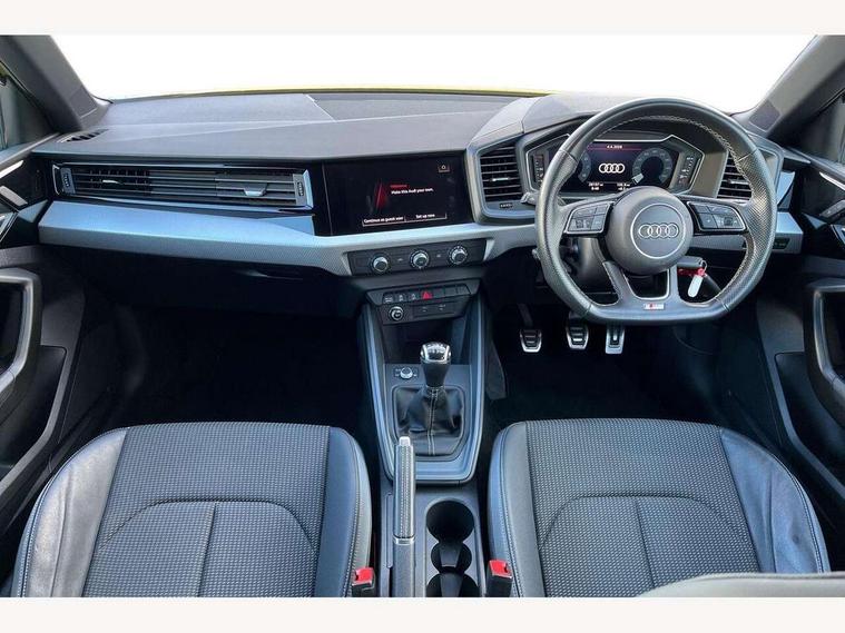 10.25" Digital instrument cluster display classis style instrument dials + speed, odometer, time, outside temperature, telephone menu + fuel level warning, Audi connect safety emergency and service including E-call, Audi drive select - power steering assistance + engine, Audi smartphone interface with connect compatible smartphone via USB directly MMI display + Nav, music, third party apps controlled via MMI controller, Automatic start/stop system, Bluetooth interface, Cruise control, Driver's information system, Electromechanical power steering, Emergency services call system, Lane departure warning system, Service interval indicator, Speed limiter, Voice control system, Washer fluid level indicator, Sports suspension, 1 x SDXC card reader, 2 x USB type C connection points, DAB Digital radio, MMI radio plus with 8.8" colour MMI display screen and MMI touch, Auto dimming rear view mirror, Black door mirrors, Black side skirts, Body coloured bumpers, Door sill trims with aluminium inlays and logo, Electric front and rear windows, Electrically adjustable, heated, folding door mirrors with integrated LED side indicator, Front side air inlets in grained matt black and C frame in titanium black, Heat insulating glass windscreen and side windows, Heated rear windscreen, High level LED brake light, LED headlights with LED rear lights + dynamic rear indicators + headlight adjustment and high beam, turning light + LED daytime running lights, Radiator protective grille frame in matt aluminium silver, Rain and light sensors, Rear diffuser strip in matt titanium black, Rear fog lights, Rear side wing doors, Rear wing door, Rear wiper, Side front spoiler lips in grained matt black, 12V socket in centre console with two cup holders, 3 rear seats with headrests, 3 seat bench in 2nd row, 3 spoke flat bottomed multi-function plus leather steering wheel with S badging, grips in preforated leather and contrast stitching, 40:60 Split folding rear seat or folded fully, Black cloth headlining, Driver and passenger seat with manual height adjust with forward and backwards adjustment, Front and rear black floor mats with contrast stitching in fine silver, Front head restraints, Front passenger seat, Height and reach adjustable steering wheel, ISOFIX child seat mounting for front passenger and outer rear seats including top tether attachment point of outer rear seats, Leather gear knob with aluminium trim, Luggage compartment light with front and rear reading lights, Manually adjustable lumbar support in front seats, Stainless steel pedals, Black styling pack - A1 Sportback Black Edition, LED interior lighting pack - A1, Luggage compartment pack - A1, 3x3 point rear seatbelts, Audi pre-sense front with pedestrain and cyclist recognition, Brake assist function, Driver and front passenger airbag with front side and head airbags, Electronic Stability Control including ABS, EBD, ASR and EDL, Front passenger airbag deactivation switch, Hill hold assist, Manual rear child locks, Seatbelt height adjustment for front seats, Seatbelt monitoring, Tyre pressure warning light, Warning triangle and first aid kit, Anti theft alarm, Anti theft wheel bolts and loose wheel warning, Immobiliser, Remote central locking with 2 foldaway keys, Aluminium trim for control switches, air vents and digital instrument cluster, Silver grey inlays polygon structure in diamond paint finish, Structured grey accent areas including air vents, door handle recesses and centre console in quartz paint finish, 18" 7 spoke rotor design alloy wheels in gloss anthracite black, diamond cut finish,