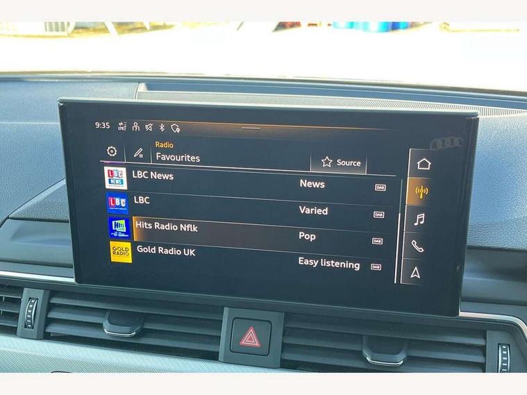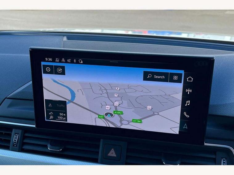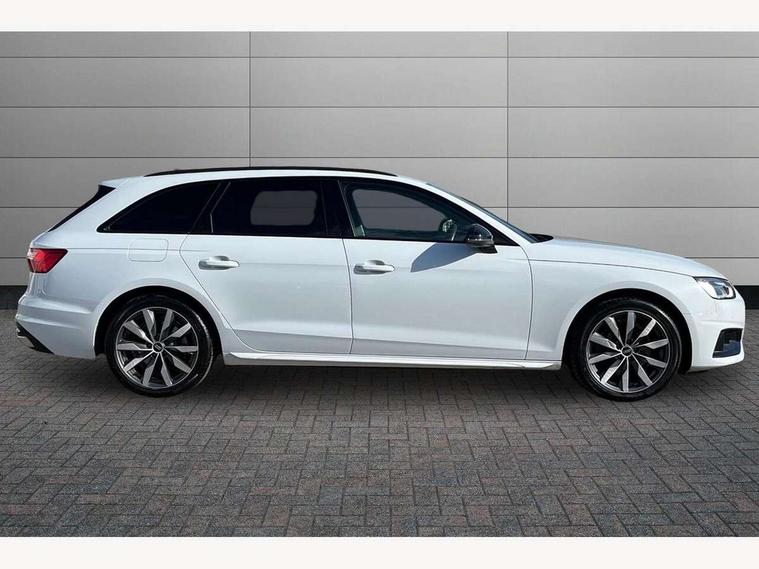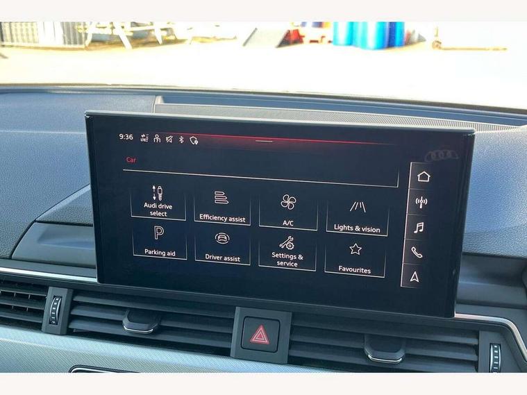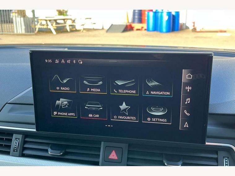 Audi connect safety and service (e-call), Audi connect with Amazon Alexa Integration, Audi drive select, Audi smartphone interface, Audi virtual cockpit, Automatic start-stop system with coasting functionality and efficiency programme, Bluetooth interface, Cruise control system with speed limiter, Electromechanical power steering, Email, calendar and text messages displayed via MMI, MMI Navigation plus with MMI touch includes 10.1" high resolution colour MMI display, 3D map, Power operated tailgate, Voice control system, 54 litre fuel tank, Comfort dynamic suspension, 2 USB charging ports, 8 passive loudspeakers, DAB digital radio reception, Auto dimming rear view mirror, Body colour door handles, Body colour side sill trim, Body coloured door mirrors, Electrically folding auto dimming/adjustable/heated door mirrors with LED side indicators and kerb view function for passenger side, LED headlights and rear lights with LED daytime running lights, LED third brake light, Matt aluminium silver tailpipe trim, Privacy glass, Rain and light sensors, Rear diffuser in matt titanium black with trim strip in matt aluminium silver, Rear side wing doors, Rear wiper, Sport front and rear bumpers with side skirts, Variable intermittent front wash/wipe, Windscreen with acoustic glazing, 3 spoke high multi-function leather sport steering wheel with paddle shift and height and reach adjustable, 4 way electric lumbar support for driver and front passenger, 40/20/40 split folding 3 rear seat bench in 3 parts with rear centre armrest, Deluxe 3 zone electronic climate control, Door sill trims with aluminium inlay, Electric load area cover, Front and rear head restraints, Front centre armrest, Heated front seats, ISOFIX child seat mounting and top tether, Manual seat adjustment, Single front passenger seat, Twin leather upholstery + front sports seats, Black styling pack - A4 Avant Sport Edition/S4 Black edition/S4 Vorsprung, High gloss package - A4, LED Interior light pack - A4/S4, 3 rear seatbelts, 6 airbags - Driver, front passenger, curtain and side windows, Electronic Stabilisation Control (ESC) including ABS, ASR and EDL, Hill hold assist, Multi collision brake assist, Pop-up bonnet for pedestrian protection, Pre sense city, Rear door child safety locks, Seatbelt monitoring, Warning triangle and first aid kit, Anti theft alarm, Anti theft wheel bolts, Central locking, Keyless Go, Aluminium ellipse silver inlays, 18" 10 spoke dynamic design alloy wheels, Tool kit, Tyre repair kit,