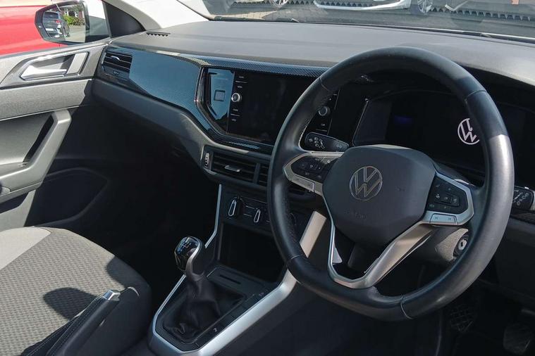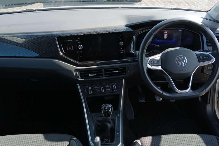 Adaptive cruise control without follow-to-stop and speed limiter, Bluetooth mobile phone interface, Driver alert system, Emergency call service, Front assist system, Power assisted speed sensitive steering, Preparation for We connect and We connect plus, Speedo and rev counter, electronic odometer, trip, service interval display and fuel gauge, Standard rear axle, Travel Assist - Lane keeping system and traffic jam assist, Travel assist including emergency assist, Trip computer, Warning signal and warning light for front and rear seatbelts not fastened, Washer fluid level indicator, Wireless app connect, Front wheel drive, Rear shock absorpion, Start-stop system with battery regeneration (recuperation - energy recovery during braking), DAB Digital radio, Diversity antenna for FM reception, Front and rear 6 speakers, Automatic dimming interior rear view mirror, Body colour bumpers, Body colour door handles, Body colour door mirrors, Electric front windows, Heat insulating darkened glass in side and rear windows, Heat insulating glass windscreen, Power folding adjustable/heated exterior mirrors and front passenger exterior mirror lowering function, Rain sensor, Rear electric windows, Rear fog light, Rear side wing doors, Rear windscreen washer and wiper with interval delay, Third brake light, 12V power socket in centre console, 2 front and 2 rear reading lights, 2 USB-C ports in the front, 2 USB-C charging sockets on the center console in the rear, 3 rear head restraints, 60/40 split folding rear seat and rear seat bench not split, Ceramique headliner, Chrome plated radiator grille inserts, air vent surrounds and light switch surrounds, Door and side trim panel, Driver and front passenger seat height adjustment, Driver/passenger sunvisors with illuminated vanity mirrors, Front centre armrest, Front seat backrest storage pockets, Front standard seats, Handbrake lever handle in leather, Hartley/Thomas cloth upholstery, Isofix child seat preparation easy-fit (for two outer rear seats, and front passenger seat) compatible with I-size, Leather trimmed gear knob, Luggage compartment cover, Luggage compartment floor, Luggage compartment lighting, Multifunction steering wheel, Single front passenger seat, Standard pedal cluster, Light and vision pack - Polo, 3 point height adj front seatbelts + pretensioners, 3x3 point rear seatbelts, ABS, Driver and front passenger airbag with front passenger airbag deactivation, Drivers and front passengers safety optimised head restraints, ESC (Electronic stability control) + EDL (Electronic Differntial lock) and ASR (Traction control), Extended and predictive pedestrian/ cyclist protection, Front curtain and side airbags with center airbag, Front disc brakes, Hill hold control, Manual child lock in rear doors, Rear drum brakes, Single tone horn, Tyre pressure loss indicator, Alarm with interior protection, Anti-theft alarm system with interior monitoring, backup horn, and towing protection, Anti-theft wheel bolts, Electronic engine immobiliser, Lava stone black gloss/matt decorative inserts in dash and front door panels, Low rolling resistance tyres,