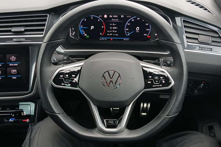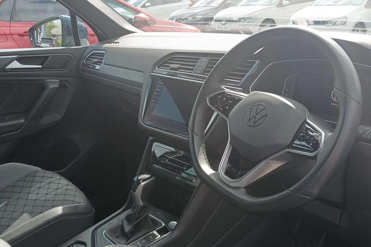 Adaptive cruise control ACC stop and go including speed limiter, App-Connect incl. App-Connect Wireless for Apple CarPlay and Android Auto, Bluetooth phone integration system, Distance control assist, Driver alert system, Driver profile selection, Dynamic road sign display, eCall emergency call system, Electromechanical speed sensitive power steering, Engine start/stop button, Lane keeping system Lane Assist, Lights on warning, Multifunction front facing camera, Outside temperature display, Premium multifunction display with multi colour display, Remote control boot opening, Rev counter, Revision / skills operating concept travel assistant, Service interval indicator, Speed limit display, Start/stop system with regenerative braking, Trip computer, Warning sound and light for doors and tailgate open, Battery regeneration during braking, Diesel particulate filter, Misfuel prevention device for diesel engine, Selective Catalytic Reduction, XDS electronic differential lock for improved traction and handling, 4 X 20 watt output, 8 Speakers, Diversity antenna for FM reception, Radio, SD card slot, Simultaneous pairing of 2 compatible mobile devices, SMS functionality - read, compose and send SMS messages using touch-screen display, Title and cover art display, USB C ports, Auto dimming interior rear view mirror, Automatic headlight control system, Body colour door handles, Chrome moldings on the side windows, Coming/leaving home lighting function, Dynamic headlight range control, Front and rear electric windows, Heated rear window, High level 3rd brake light, Laminated safety glass windshield, heat and sound insulating, LED headlamps with LED separate daytime running light and dynamic cornering light, LED rear combination lamps, LED rear number plate lights, License plate carrier in front and rear, Poor weather light and cornering light, R Line body kit, R Line side sills, Rain sensor windscreen wipers, Rear exhaust tailpipe, Rear fog lamp, Rear side wing doors, Rear spoiler in R style, Rear windscreen washer and wiper with interval delay, Side and rear windows in heat insulating glass, Trailer Stability Programme, Unique R Line badging, Windscreen wipers/ intermittent wipe + 4 position delay, 12V outlet in center console rear and in luggage compartment, 12V outlet in front and tray, 2 cup holders in front, 2 LED front reading lights, 2 LED rear reading lights, 3 bench rear seats in 2nd row, 3 rear headrests, 4 load lashing points, 40:20:40 split folding rear seats, Air Care Climatronic 3 zone automatic climate control with enhanced air filter and controls in the rear, Backrest release for left front seat, Black headlining, Brushed stainless steel pedals and footrest, Carpet mats in front and rear with decorative stitching in Gray, Climate control unit rear with touch function, Door and side trim panel in foam film, insert in leatherette, Front centre armrest, Front footwell illumination, Front seats head restraints (x-adjustment), Height adjustable front seats, Height/reach adjust steering wheel, Instrument lighting white adjustable panel illumination, Interior light with delay, Isofix Preparation 2 Rear child seats, Leather gear knob, Lockable cooled glovebox, Luggage compartment lighting, Luggage net, Rear bench seat asymetrically split folding, longitudinally movable and folding with load-through hatch and center armrest, Remote unlocking for rear seat backrest, Removable luggage cover, Removable rear headrests, Safety optimised front head restraints, Single front passenger seat, Sliding/reclining rear seats, Standard rear seat release, Storage compartment in driver's door, Storage compartment in passenger's door, Storage compartment in rear doors, Storage compartments in luggage area left and right, Storage tray on dashboard, Sun visors with illuminated vanity mirrors, Top front comfort seats, Variable boot floor, height adjustable and removable, Driver assistance pack plus - Tiguan DSG, 3 point seat belt for centre rear seats, 3 point seat belts with seat belt pretensioners for the outer rear seats, Active bonnet, Curtain airbags for front and rear passengers, Driver/Front Passenger airbags, Drivers knee airbag, Electronic parking brake with auto hold, Electronic Stability Control with driver steering recommendation, ABS, ASR, EDL, EDTC and trailer stabilization, Front assist with autonomous emergency braking (for Adaptive Cruise Control ACC up to 130 mph), Front disc brakes, Front passenger airbag deactivation, Front side airbags, Height adjustable front 3 point seatbelts + pretensioners, Hill hold control, Manual child proof rear door locks, Pedestrian monitoring system, Power assisted brakes, Proactive passenger protection system in combination with front assist, Rear disc brakes, Rigid safety cell with front and rear crumple zones, Two tone horn, Warning sound and light for front seat belts if unfastened, Anti theft alarm system with interior monitoring, backup horn and towing protection, Anti theft wheel bolts, Electronic engine immobiliser, Tool kit,