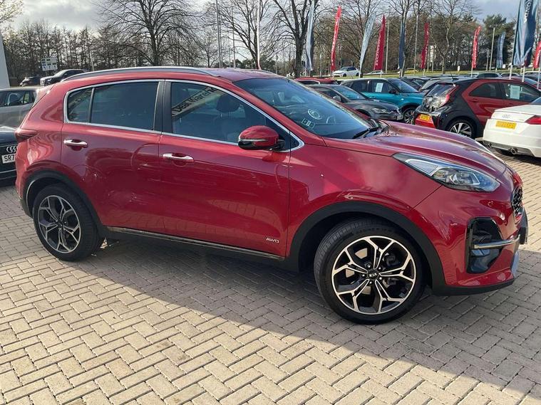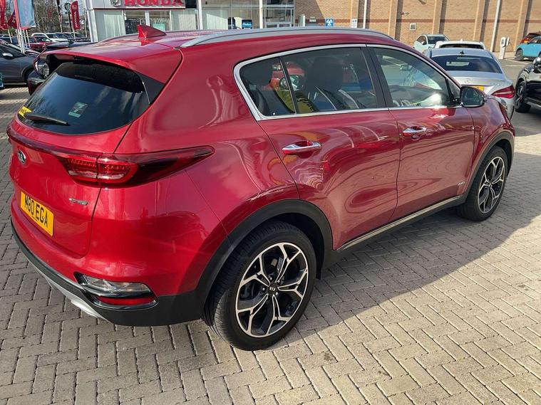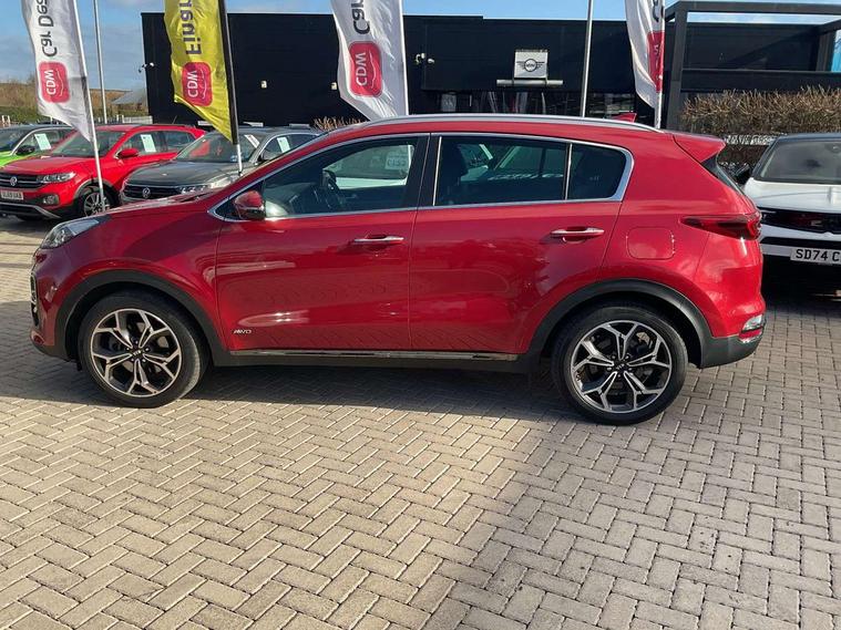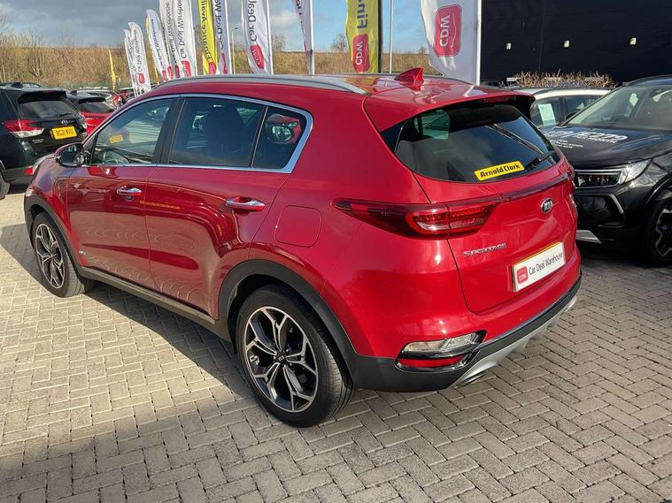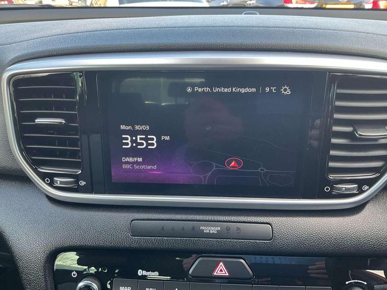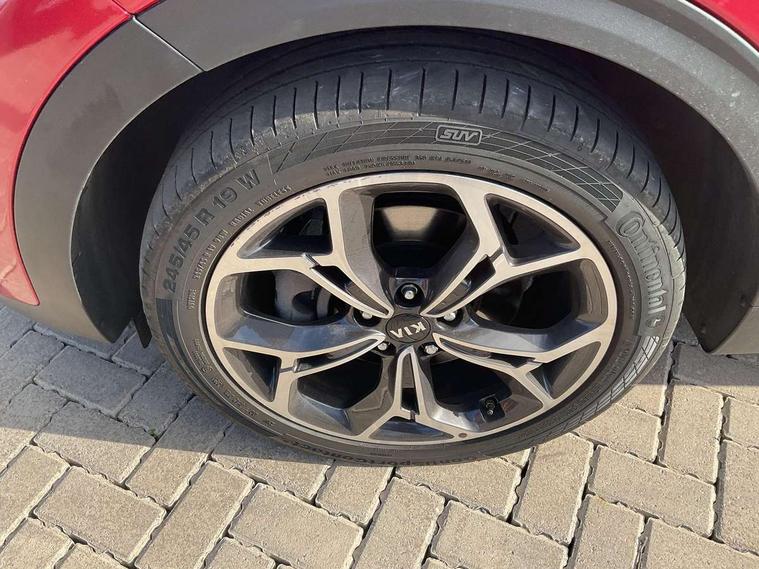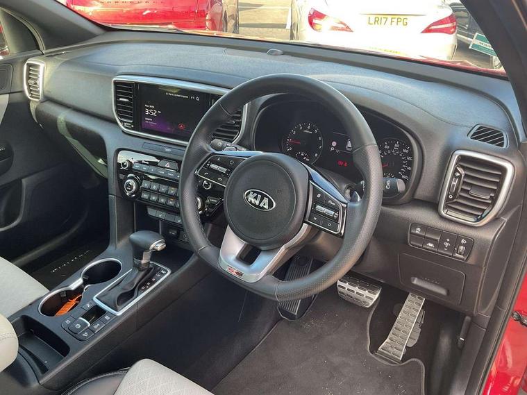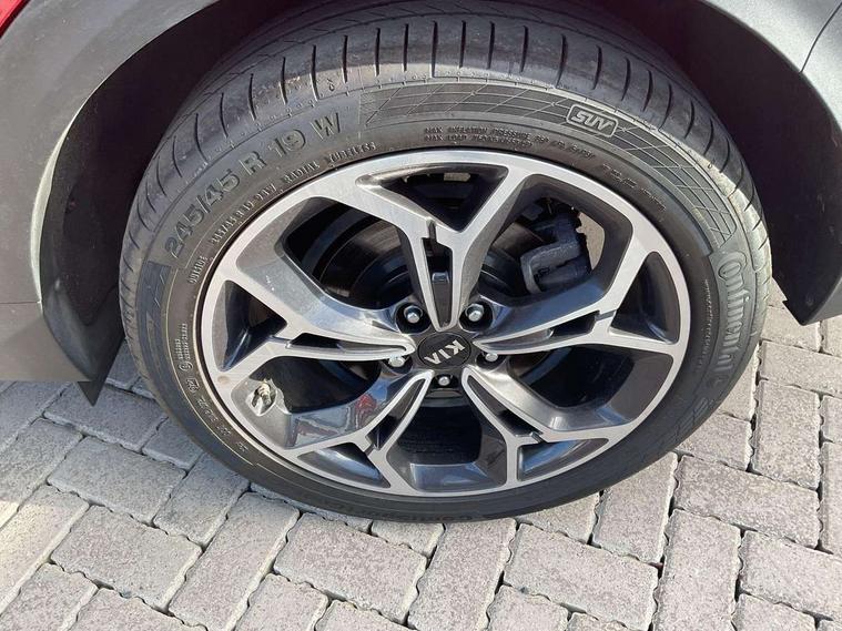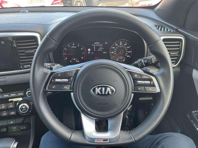 4.2" supervision colour cluster display, 8" touchscreen satellite navigation with European mapping and traffic messaging channel, Android auto with voice control, Apple car play with voice control, Cruise control + speed limiter, Drive mode selector, Driver attention warning, Emergency stop signalling system, Front parking sensor, Kia connected services featuring TomTom live, Lane keep assist, Rear parking sensor, Reversing camera, Speed limit information, Speed sensitive power steering, Telematics system with UVO connect services, Trip computer, Windscreen washer level indicator, Intelligent Stop and Go, 6 speaker audio system, Bluetooth audio streaming, DAB Radio with MP3, Rear USB port, Steering wheel mounted audio controls, USB/iPod/auxiliary input connections, All round electric windows with drivers auto up/down function, Auto dimming rear view mirror, Automatic lighting control, Automatic window defogger, Black wheel arch body mouldings and side sills with dark chrome insert, Body colour door handles with chrome inserts, Body colour door mirrors, Chrome window surround, Dark chrome front bumper insert, Dark chrome front grille surround, Electrically adjustable/heated/folding door mirrors with LED indicators, Front wiper de-icer, High beam assist, High gloss black blade mesh radiator grille, LED Bi-Function headlights, LED daytime running lights, LED ice cube front fog lights, LED rear lights, LED third brake light, Privacy glass - Rear windows and tailgate, Rain sensing front wipers, Rear spoiler, Rear wiper, Roof rails, Shark fin antenna, Silver painted front and rear skid plates, Tinted glass, Trailer stability assist, Welcome and follow-me home light functionality, Wide view drivers door mirror, 12V power in front and rear centre console, 3 x passenger assist grips, 60/40 split folding rear seat, Air filter, All-round height adjustable headrests, Aluminium door scuff plates, Aluminium pedals, Black headlining, Centre cabin light, Centre console storage box, Chrome boot sill guard, D-Shaped sports leather steering wheel and perforated inserts with GT-Line logo, Driver and front passenger side sunvisors with illuminated vanity mirrors, Driver's seat manual height adjust, Drivers seat power lumbar support, Dual zone automatic air conditioning, Front and rear door storage, Front cabin LED map light with sunglasses case, Front door courtesy reflectors, Front seat and rear pockets, Front/rear centre armrests, Gear shift indicator, Glovebox illumination, Heated front and outer rear seats, Interior door lock/unlock function, ISOFIX Child seat top tethers and anchor fixings outer rear seats, Leather trimmed door armrests, Leather trimmed gearshift, Luggage area light, Luggage area load cover, Luggage net with hooks, Paddle shift controls, Rear centre armrest with cupholder, Rear coat hooks, Satin chrome interior door handles, Tilt/telescopic adjustable steering wheel, Two tone leather upholstery, Ventilation ducts to rear compartment, Active front headrests, All round 3-point seatbelts, Anti-lock braking system with electronic brakeforce distribution, Dual front side airbags, Electronic parking brake, Electronic stability control with downhill brake control, Front passenger airbag cut-off switch, Front seatbelt pretensioners + load limiters, Height adjustable front seatbelts, Hill start assist control (HAC), Impact sensing auto door unlocking, Rear door child safety locks, Traction control, Twin curtain airbags with roll over sensor, Twin front airbags, Tyre pressure monitoring system, Advanced anti-theft system including immobiliser and alarm, Door deadlocks, Engine Start/Stop Button with Smart Entry System, Locking wheel nuts, Speed sensitive auto door locking, Visible vehicle identification number, High gloss black centre fascia, 19" alloy Wheels B-type, Tyre mobility kit,