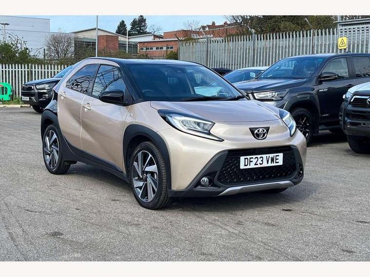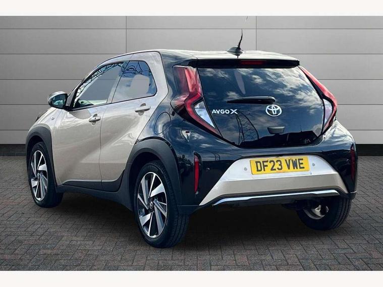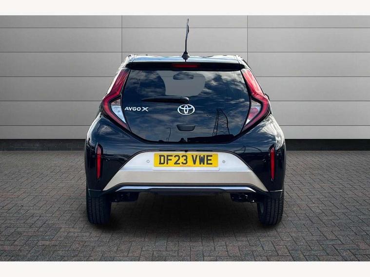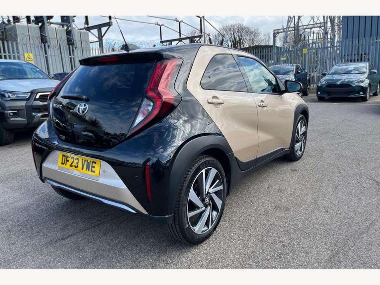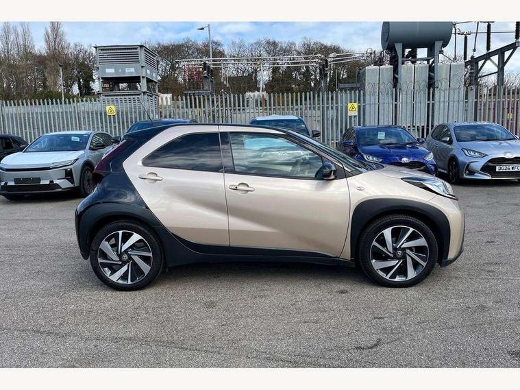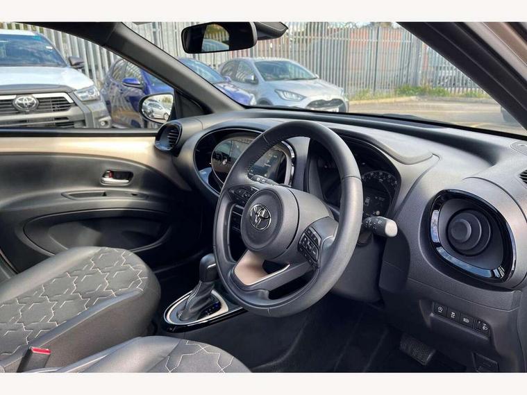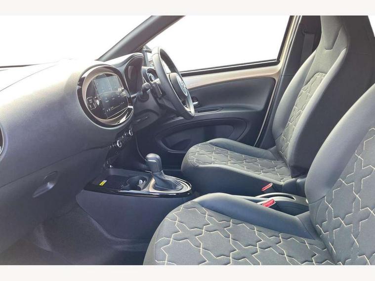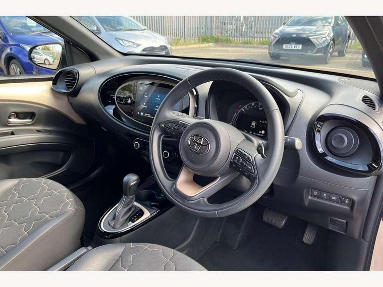 4.2" TFT colour screen, Adjustable speed limiter, Analogue speedometer, Bluetooth connectivity, Digital tachograph, Driver attention alert system, eCall emergency call system, ECO-driving indicator, Electric power steering, Front and rear parking sensors with auto brake, Intersection turn assist, Key reminder warning, Noise reduction kit, Pre collision system with emergency steering assist, Remote boot door release on key, Reversing camera with static guide lines, Smart entry and push button start, Speed limit display, Start and stop, Wireless charger, Wireless Smartphone Integration includes Apple CarPlay and Android auto, Vehicle Stability Control (VSC), 4 speakers, 9" HD multimedia display touch screen with Toyota smart connect, DAB digital audio broadcast, USB connector, Auto headlights, Auto wipers, Automatic headlights cut-off, Automatic high beam On/Off switch, Bicycle towing hook, Black fog light surrounds, Black side protection mouldings, Black wheel arch mouldings, Body colour door handles, Body coloured front bumper, Boot door scuff plate, Eclipse black rear bumper, Electric heated door mirrors, Follow me home headlights, Front and rear underruns in silver, Front fog lights, Front power windows, Gloss black door mirrors, Gloss black upper front grille, Headlight cut-off reminder, LED daytime running lights guide, LED front light guide, LED High mounted stop lamp, LED projector headlights, Manual day/night rear view mirror, Manual headlight levelling, Pagoda roof, Power adjustable door mirrors, Power back door, Privacy glass, Rain sensor, Rear combination lights LED bulb type, Rear side wing doors, Rear windscreen defogger, Rear windscreen wiper, Remote hazard lights system, Short antenna, Variable intermittent windscreen wipers, 12v power outlet - front, 2 seat bench in 2nd row, 3 spoke leather steering wheel, 50/50 split folding rear seat, Adhesive roof headlining, Adjustable speed limiter switch on steering wheel, Audio and telephone switches on steering wheel, Auto air conditioning, Black roof lining, Body colour satin anodised insert on steering wheel, Boot light, Centre room light, Chrome interior door handles, Chrome surround on air conditioning buttons, Clean air filter, Console box storage, Floor mats, Front and rear cup holders, Front head rest deco art, Front head restraints, Gear shift indicator, Height adjustable driver seat, Intelligent adaptive cruise control switch on steering wheel, ISOFIX child restraint system on rear seats, Lane departure alert switch on steering wheel, Leather gearshift knob, Light blue ambient lighting in centre console, Manual tilt steering wheel, Manually reclining and sliding driver seat, Manually reclining and sliding front passenger seat, Multimedia switches on steering wheel, Paddle shift levers on steering wheel, Partial synthetic leather upholstery, Pollen filter, Rear door pockets, Rear head restraints, Remote air-conditioning system, Satin silver insert on gear shift knob, Single compartment glovebox with lights, Single front passenger seat, Soft tonneau cover, Sun visors with mirror on driver and passenger side, Voice recognition switch on steering wheel, Toyota safety sense pack - Aygo X, Anti lock braking system + Electronic brake force distribution, Child safety door lock, Emergency brake light signal (EBS), Hill start assist control (HAC), Passenger airbag on/off switch, Seat belt reminder for front and rear seats, Supplement restraints system (SRS) - 6 airbags, Traction control, Tyre pressure warning system, Immobiliser, Remote power door locks, Black wheel centre caps, Tyre repair kit,