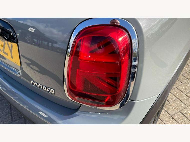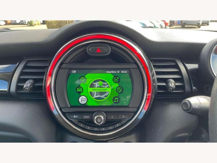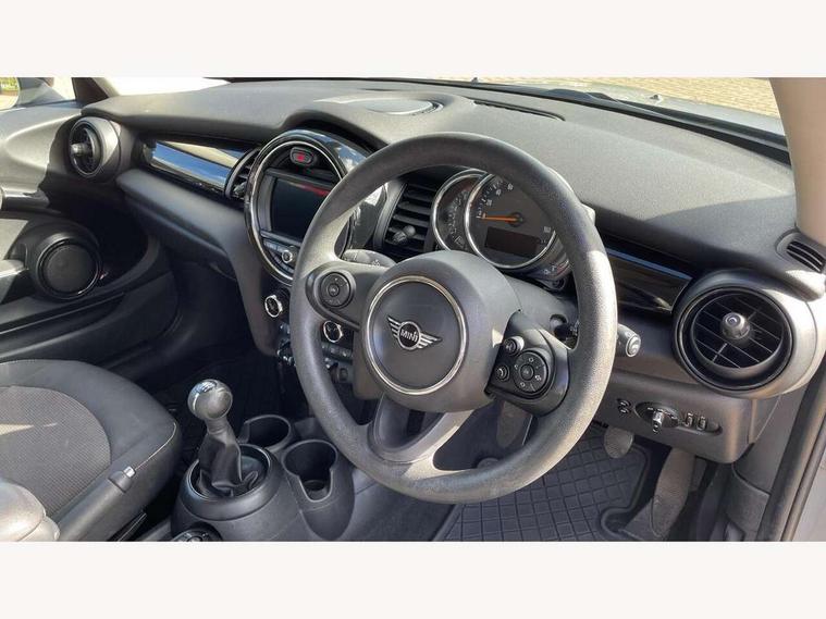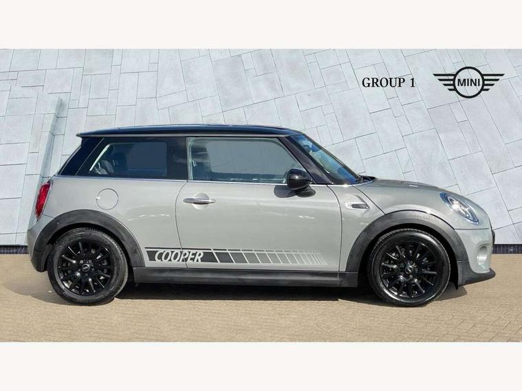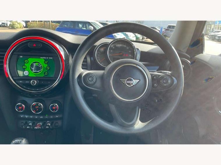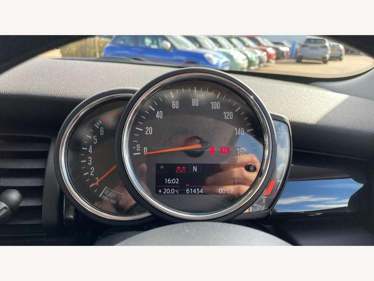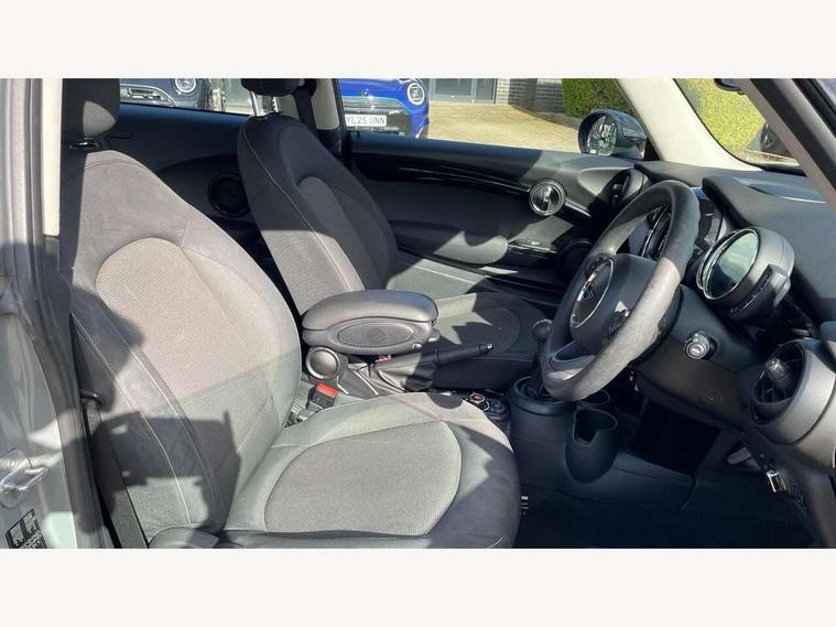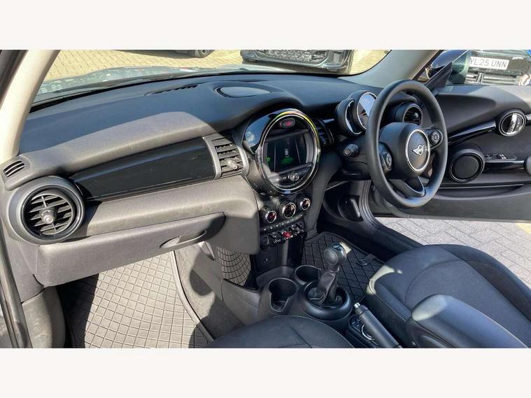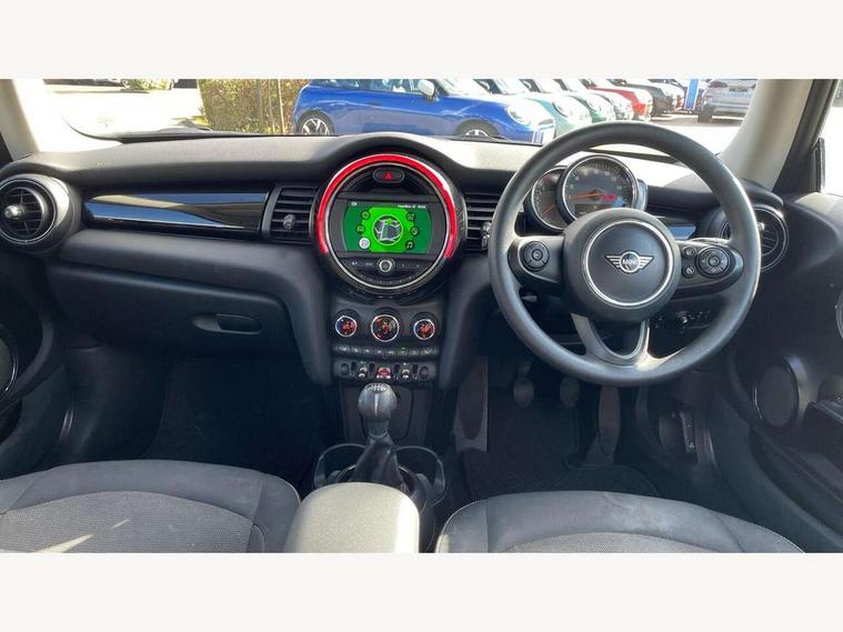 Compatible mobile phone bluetooth with audio streaming, Instrument cluster, Mini E-call, MINI TeleServices, On board computer, Service interval indicator, 6.5" touchscreen with LED ring, FM tuner and DAB digital radio, Automatic headlight activation switch, Body colour fuel filler cap, Chrome border high gloss black slats radiator grille, Dynamic brake lights, Electric front windows, Heated rear window, Heated windscreen washer jets, LED headlight with closed ring and daytime driving lights, Left exhaust tailpipe with chrome finisher, Metal door sill strips with MINI imprint, Model logo Cooper on right of tailgate, Rain sensor window wipers, Rear fog lights, Rear LED lights with union jack design, Rear window wiper, Side scuttle panel with integrated indicator, Sun/heat protection glass, White indicator lenses, 12V Accessory socket in centre console, 4 lashing eyes in luggage compartment, 60/40 split folding rear seat, Chrome interior highlights, Colour line - Carbon black, Cupholders, Front and rear isofix with front passenger airbag deactivation, Glove compartment, Height and length steering column adjustment, Interior lighting with 12 basic colours selectable via toggle switch in roof, Leather gearshift lever and handbrake gaiters, Manual air conditioning, Mechanical seat adjustment, driver seat height adjust, forward/back and front seats backrest, Mini logo projection on floor from drivers exterior mirror, Multifunction steering wheel, Satellite grey headlining, Storage compartments in doors, Sunvisors with vanity mirrors, 3 point seatbelts on all four seats, 6 Airbags - front, side, head and seat belt tensioners, Anti-lock braking system (ABS), DSC - Dynamic Stability Control, Front and rear disc brakes, Hill start assist, Single tone fanfare horn, Tyre pressure monitoring system, Alarm system with tilt sensor, monitoring doors, bonnet interior and tailgate, Electronic vehicle immobiliser, Start/stop toggle with keyless go, Tool kit,