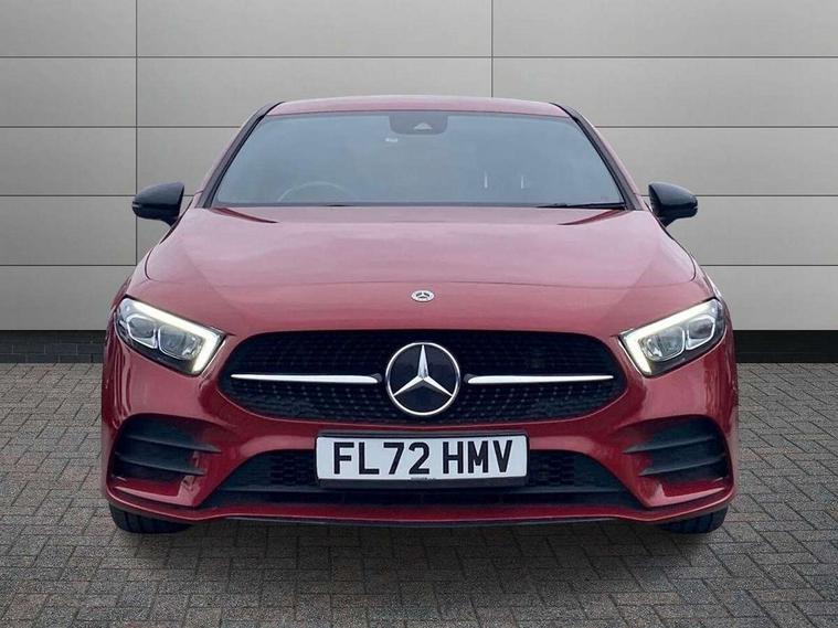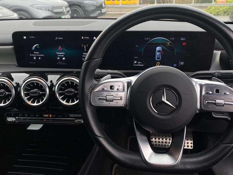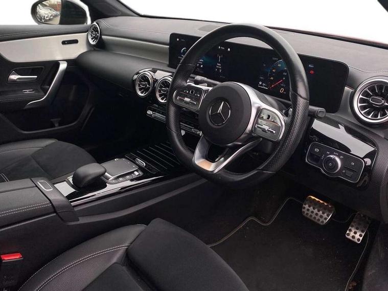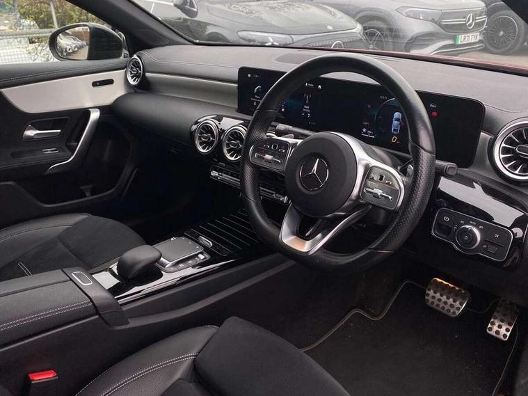 10.25" media display, 180 degree rear view camera with parking guidelines, 7" colour screen in instrument panel, Active parking assist with visual and audible warning of detected obstacles, Attention assist, Brake pad wear indicator warning light, Car wash mode, Cruise control + speed limiter, Direct steering, Dual bluetooth interfaces, DYNAMIC SELECT with a choice of driving modes (ECO, Comfort, Sport and Individual), ECO start/stop function, Fluid level warning indicator for fuel, oil, coolant and washer fluid, Hard-disk navigation, Hey Mercedes Voice activation, Lamp failure indicator, Lane keeping system, Mercedes me connect including emergency call system, accident recovery, breakdown and maintenance management, Mercedes me remote services, Outside temperature gauge, Owners manual in English, Pre-installation for private car sharing, Preinstallation for Mercedes Benz link, Service indicator (ASSYST), Smartphone integration with Apple CarPlay and Android auto, Speed sensitive power steering, Trip computer, Ultrasonic sensors positioned in the front and rear bumpers, Lowered comfort suspension, Rear axle torsion beam, 2 USB ports (type C) in rear stowage compartment and one in front of center console, 6 speakers, DAB Digital radio, MBUX multimedia system with DAB digital radio and touchpad including satellite navigation, Mercedes-Benz sound system - 100W, 4 Electric Front and Rear windows, Adaptive brake lights, AMG bodystyling - Front apron with splitter in chrome, rear apron with chrome trim and chrome visible trim elements in tailpipe, Automatic headlights, Black weather strip, Body colour bumpers, Body colour door handles, Body colour side skirt, Body coloured door mirrors, Electric adjustable and heated door mirrors with integrated LED side indicators, Exclusive diamond radiator grille, Exhaust system - Twin visible tailpipes in polished stainless steel, Headlamp assist automatic headlamp activation, Heated glass rear windscreen + timer control, High gloss black beltline, LED high performance headlamps with integrated LED daytime running lights, LED tail lamp, Privacy glass, Radio aerial, Rain sensing windscreen wipers with two sensitivity settings, Rear boot, Rear fog lights, Rear side wing doors, Third brake light featuring LED technology, Window line trim strip in high gloss black, 3 seat bench in 2nd row, 3 Spoke flat bottom leather multi function steering wheel with perforated leather in grip area, 40:20:40 split folding rear seats, Artico man-made leather/Microfibre Dinamica upholstery with contrast stitching in light grey, Auto Mercedes-Benz child seat recognition sensor, Black air vents with surround in silver chrome, Black roof lining, Brushed stainless steel sports pedals with rubber studs, Controller on centre console with chrome surround, Floor mats with black top stitching and embroidered edition logo and piping in light grey, Front centre armrest with storage compartment, Front door sills with Mercedes Benz lettering, Front seat backs luggage nets, Front seat cushion length adjustment, Front sports seats with adjustable head restraints, Galvanished gear shift paddles on steering wheel, Heated front seats, Height/reach adjustable steering column, Interior lighting - 64 colour Ambient lighting, Interior mirror with reading lamps in black and frameless, Manual height adjustable front seats, Rear head restraints, Seat occupancy sensor for front passenger seat, Single front passenger seat, Stowage compartment in centre console with retractable cover, Sunvisors with illuminated vanity mirrors, Touchpad on center console, Twin front cupholders, Two zone thermotronic luxury automatic climate control, Light and sight pack - A Class, Mirror package - A Class, Night pack - A Class Saloon/Hatchback, Seat comfort pack - A Class, 3 rear 3 point seatbelts, ABS with Brake Assist, Active bonnet, Active brake assist includes forward collision warning system with autonomous braking, Adaptive brake assist with hold function and hill start assist, Childproof locks manually operated for rear doors and electrically operated for rear power windows, Crash responsive emergency lighting, Driver and passenger head and side airbags, Drivers knee airbag, Dual stage driver/passenger airbags, Electronic parking brake, ESP curve dynamic assist, ESP with ASR, Front and rear seatbelt reminder, Front brake callipers with Mercedes Benz lettering, ISOFIX and top tether child seat fixing points in two outer rear seats, Tyre pressure monitoring system, Warning triangle and first aid kit, Window airbags, Alarm system/interior protection/immobiliser, Keyless Go, Remote central locking and crash sensor with emergency opening function, Urban guard vehicle protection system with immobiliser and interior protection, Black seatbelts, Matrix look light longitudinal grain aluminium trim element, 18" AMG 5 twin spoke light alloy wheels aerodynamically optimised painted in black with highsheen finish, Summer tyres, Tirefit sealant kit,