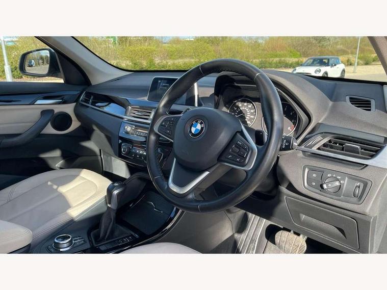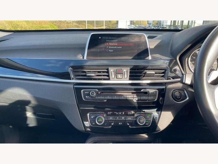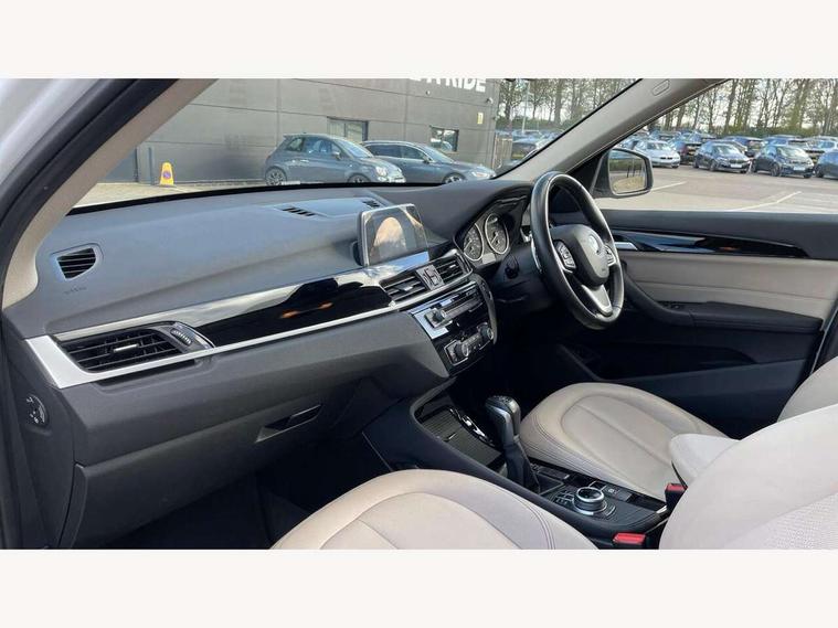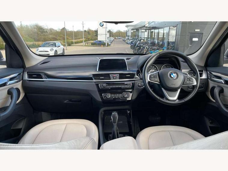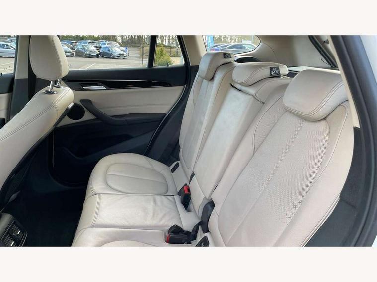 Active Guard incl speed limiting and lane departure functions with auto steering, and front collision warning with brake intervention, Ambient temperature display, Attentiveness assist, Automatic tailgate opening, BMW Online services, BMW remote services, BMW Teleservices, Lights on warning, On board computer, Outside temperature gauge, Real time traffic information, Service interval indicator, Servotronic PAS, Speed limiter, Stop/start button, Tyre puncture warning system, Diesel particulate filter, Electronic differential lock, Performance Control, 2 USB ports in centre console, BMW professional radio with CD player, DAB Digital radio, USB/audio interface, Adaptive LED Headlights, Adjustable headlights, Body colour bumpers, Body colour door handles, Body colour door mirrors, Chrome tailpipe finisher, Electrically adjustable and heated door mirrors, Exclusive door sill finishers, Fingertip control / anti-trap function on electric window, Follow me home headlights, Front and rear electric windows, Front fog lights, Heat insulating tinted glass, Heated windscreen washer jets, LED daytime running lights, Rain sensor including auto headlights activation, Rear window wash/wipe, Twin chrome exhaust tailpipes x2, Welcome home function, 12v power point in centre console, 12V power socket in passenger footwell, 3 rear headrests, 3 spoke sport leather steering wheel, 4 grab handles, Black door sill finishers with BMW designation, Boot light, Centre console with cupholders, Dakota leather upholstery, Driver/passenger sunvisors with ticket holders, Drivers folding storage compartment, Dual zone automatic air conditioning, Front and rear door armrests, Front centre armrest/sliding cover, Front passenger isofix child seat attachment, Front/rear adjustable head restraints, Heated front seats, Illuminated glovebox, Isofix rear child seat preparation, Leather gearknob/gaiter/handbrake grip, LED ambient lighting in door trim, Luggage area underfloor compartment, Luggage compartment lighting, Multifunction steering wheel, Rake/reach adjustable steering wheel, Sliding/split/reclining 40/20/40 rear seat with 60/40 split rear seat base, Steering wheel gearshift paddles, Velour floor carpets, Extended storage package - X1, 3 rear 3 point seatbelts, ABS/EBD, Audio/visual collision warning system, Automatic Stability Control (ASC), BMW emergency call, Cornering brake control (CBC), Crash Sensor - activates hazard/interior lighting + unlocks doors, Driver/Front Passenger airbags, Driver/front passenger side airbags, DSC - Dynamic Stability Control, Dynamic brake control, Dynamic Traction Control - DTC, Electronic parking brake, Front and rear head airbags, Front passenger airbag deactivation, Front seatbelt force limiters, Hill start assist, Pyrotechnically pre-tensioned front seatbelts, Rear door child safety locks, Seatbelt warning, Tyre pressure monitor, Warning triangle and first aid kit, Auto door lock when driving, Central locking including boot and fuel flap with deadlocks, Engine immobiliser, Locking wheel nuts, Remote control Thatcham category 1 alarm, High gloss black centre console, Low rolling resistance tyres,