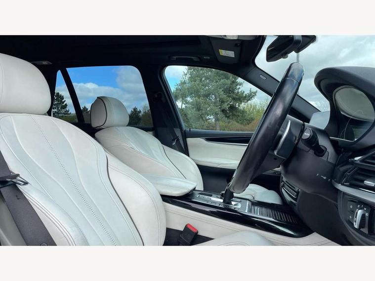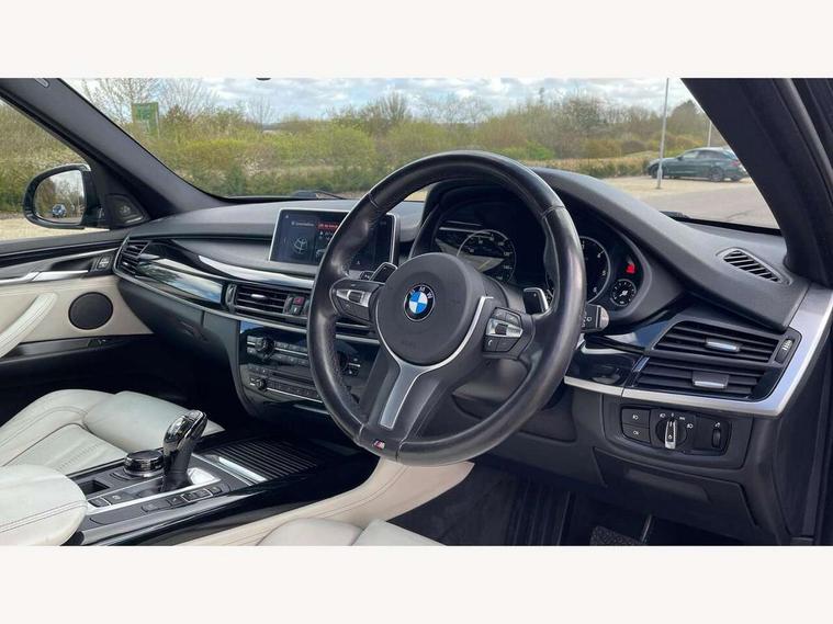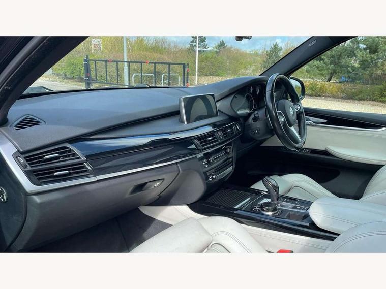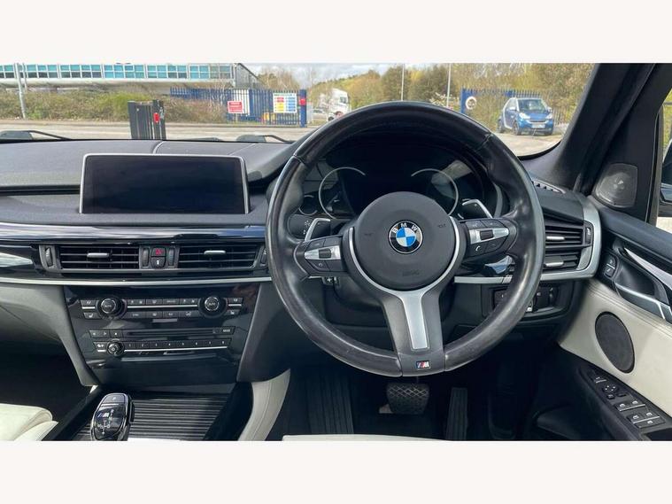 20GB Hard drive, 6.5" colour display screen, BMW online + Apps interface, BMW remote services, BMW Teleservices, Brake force display, Check control system, iDrive controller and display with 10.2" colour display monitor, Lights on warning, M Servotronic power steering, On board computer, Outside temperature gauge, Park distance control, Professional multimedia navigation system, Real time traffic information, Remote tailgate release, Service interval indicator, Stop/start button, Voice control system, Adaptive M suspension, Diesel particulate filter, Sport automatic transmission, Auxiliary point for auxiliary devices, BMW professional twin tuner radio with single CD player and MP3 CD playback facility, DAB Digital radio, Auto dimming rear view mirror, Auto upper tailgate release, Body colour bumpers, Body colour door handles, Clear indicator lenses, Door mirror integrated indicators, Double kidney grille with chrome surround and titanium slats, Downlights in exterior door handles, Electric folding/heated door mirrors + electrochromic on drivers side, Electric front/rear windows with anti-trap, Electric headlight adjustment, Ferric grey mirror caps, Follow me home headlights, Green tinted glass, Headlight washer jets, Heat insulated glass, Heated washer nozzles, Individual door sill finishers, Intermittent rear wash/wipe, M aerodynamic body kit, Rain sensor with auto light activation system, Stainless steel exhaust pipes, Two piece tailgate, 12V accessory power point in centre console, 12V socket in luggage compartment, 2 individual folding 3rd row seats, 2 x 12V socket in rear centre console, 40:20:40 split folding rear seats, Ambient interior lighting, Anthracite Velour floor mats, Boot lashing points, Electric front seats + driver memory, Front and rear cupholders, Front armrest with storage bin, Front/rear courtesy lights with soft on/off dimming, Front/rear reading lights, Gearshift paddles on steering wheel, Heated front seats, Height adj rear head restraints, Illuminated glovebox with lock, Isofix child seat preparation, LED footwell lights, Luggage compartment cover, M leather steering wheel, Reach + rake adjustable steering column, Securing rings in luggage compartment, Storage bins on all doors, Sunvisors with illuminated vanity mirrors, Tilt/height adjustable front head restraints, Toolkit located in luggage compartment, Extended storage pack - X5, 3 rear 3 point seatbelts, ABS, ADB - Automatic Differential Brake, Automatic Stability Control (ASC), BMW emergency call, Child locks on rear doors, Cornering brake control (CBC), Crash Sensor - activates hazard/interior lighting + unlocks doors, Driver/Front Passenger airbags, DSC - Dynamic Stability Control, Dynamic brake control, Dynamic Traction Control - DTC, Electronic brake force distribution, Electronic parking brake, Front and rear head airbags, Front passenger airbag deactivation, Front passenger seat occupancy sensor, Front side airbags, Height adjustable front seatbelts, Hill start assist, Pyrotechnically pre-tensioned front seatbelts, Tyre pressure monitor, Warning triangle and first aid kit, Locking wheel nuts, Remote central locking, Thatcham cat 1 remote alarm/immobiliser, Run flat tyres,