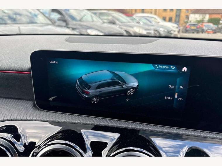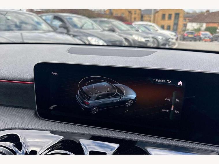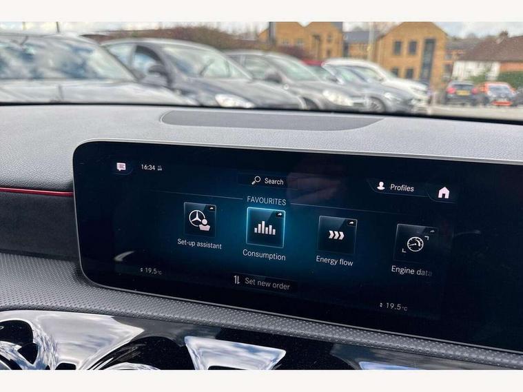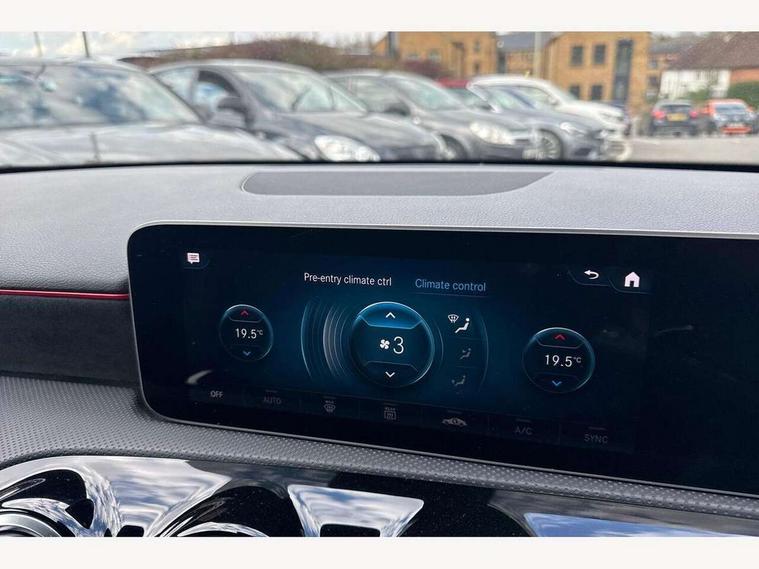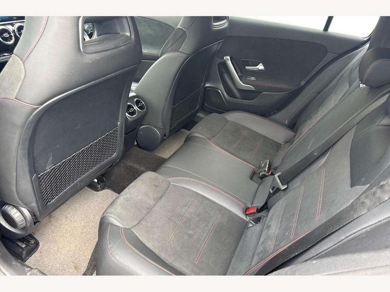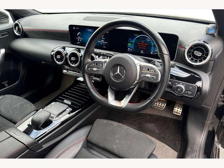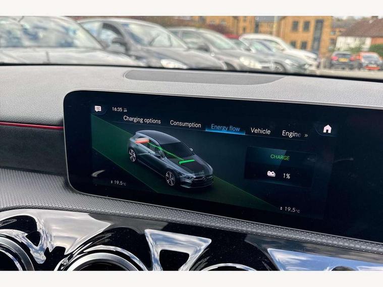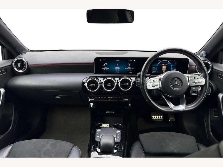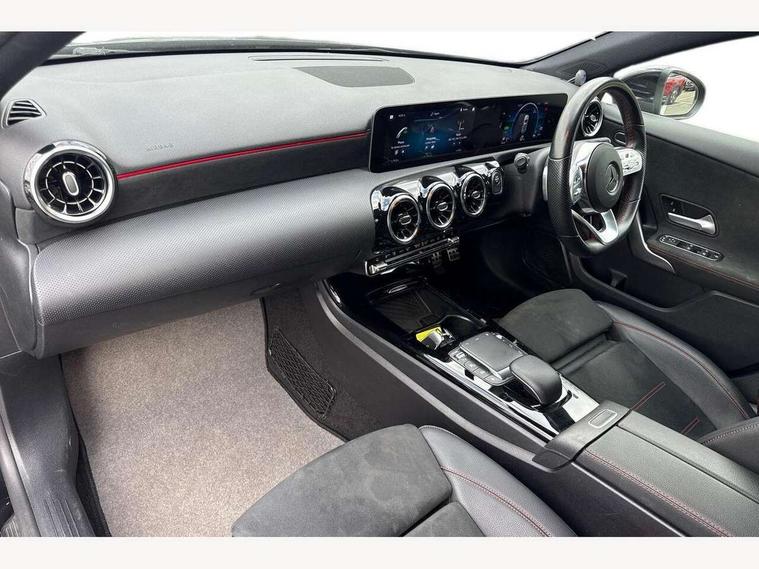 10.25" media display, 180 degree rear view camera with parking guidelines, 7" colour screen in instrument panel, Acoustic ambient protection, Active lane keep assist, Active park assist with parktronic system including front and rear parking sensors, Attention assist, Brake pad wear indicator warning light, Car wash mode, Cruise control + speed limiter, Direct steering, Dual bluetooth interfaces, DYNAMIC SELECT with a choice of driving modes (ECO, Comfort, Sport and Individual), ECO start/stop function, Fluid level warning indicator for fuel, oil, coolant and washer fluid, Hard-disk navigation, Hey Mercedes Voice activation, Lamp failure indicator, Mercedes me connect including emergency call system, accident recovery, breakdown and maintenance management, Outside temperature gauge, Owners manual in English, Pre-installation for private car sharing, Pre-installation for Vehicle Monitoring, Pre-installation for Vehicle Setup, Preinstallation for Mercedes Benz link, Service indicator (ASSYST), Smartphone integration with Apple CarPlay and Android auto, Speed sensitive power steering, Trip computer, Wireless charging, 7.4 kW monophase on board charger, Comfort suspension, Mode 3 charging cable 11 kW, Rear axle multi-link, 2 USB ports (type C) in rear stowage compartment and one in front of center console, 6 speakers, DAB Digital radio, MBUX multimedia system with DAB digital radio and touchpad including satellite navigation, Mercedes-Benz sound system - 100W, 4 Electric Front and Rear windows, Adaptive brake lights, AMG bodystyling - Front apron with splitter in chrome, rear apron with chrome trim and chrome visible trim elements in tailpipe, Black weather strip, Body colour bumpers, Body colour door handles, Body colour side skirt, Body coloured door mirrors, Chrome beltline trim, Diamond radiator grille with chrome pins and silver louvre + chrome insert, Electric adjustable and heated door mirrors with integrated LED side indicators, EQ badging, Exhaust system - Twin visible tailpipes in polished stainless steel, Headlamp assist automatic headlamp activation, Heated glass rear windscreen + timer control, LED high performance headlamps with integrated LED daytime running lights, LED tail lamp, LED third brake light, Privacy glass, Radio aerial, Rain sensing windscreen wipers with two sensitivity settings, Rear fog lights, Rear wiper, Window line trim strip in chrome, 3 Spoke flat bottom leather multi function steering wheel with perforated leather in grip area, 40:20:40 split folding rear seats, Artico man-made leather/Microfibre Dinamica upholstery with red contrast stitching, Auto Mercedes-Benz child seat recognition sensor, Black air vents with surround in silver chrome, Black roof lining, Brushed stainless steel sports pedals with rubber studs, Charging socket, Controller on centre console with chrome surround, Floor mats with stitched edging and AMG lettering, Front centre armrest with storage compartment, Front door sills with Mercedes Benz lettering, Front seat backs luggage nets, Front seat cushion length adjustment, Galvanished gear shift paddles on steering wheel, Heated front seats, Height/reach adjustable steering column, Interior mirror with reading lamps in black and frameless, Manual height adjustable front seats, Pre-entry climate control, Rear head restraints, Seat occupancy sensor for front passenger seat, Sports seats with integrated headrests, Stowage compartment in centre console with retractable cover, Sunvisors with illuminated vanity mirrors, Touchpad on center console, Twin front cupholders, Two zone thermotronic luxury automatic climate control, Light and sight pack - A Class, Mirror package - A Class, Seat comfort pack - A Class, 3 rear 3 point seatbelts, ABS with Brake Assist, Active bonnet, Active brake assist includes forward collision warning system with autonomous braking, Adaptive brake assist with hold function and hill start assist, Childproof locks manually operated for rear doors and electrically operated for rear power windows, Crash responsive emergency lighting, Driver and passenger head and side airbags, Drivers knee airbag, Dual stage driver/passenger airbags, Electronic parking brake, ESP curve dynamic assist, ESP with ASR, Front and rear seatbelt reminder, Front brake callipers with Mercedes Benz lettering, ISOFIX and top tether child seat fixing points in two outer rear seats, Perforated front brake discs, Radar based regeneration, Tyre pressure monitoring system, Warning triangle and first aid kit, Window airbags, Alarm system/interior protection/immobiliser, Keyless Go, Remote central locking and crash sensor with emergency opening function, Urban guard vehicle protection system with immobiliser and interior protection, Black seatbelts, Dinamica microfibre trim in black, 18" AMG 5 twin spoke light alloy wheels in titanium grey with highsheen finish, Summer tyres, Tirefit sealant kit,
