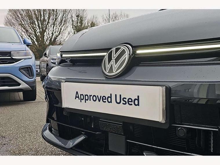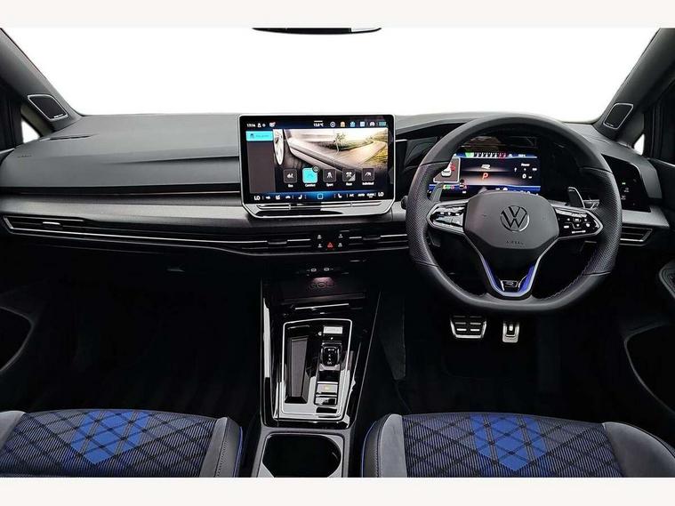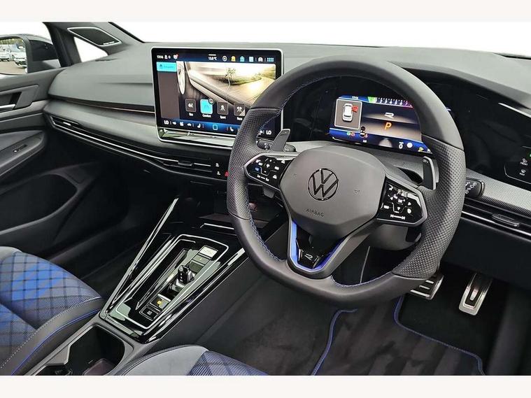 Activated carbon canister, Adaptive cruise control (ACC), Advanced driver attention and drowsiness monitor, Dynamic road sign display, E-Sim card for online connectivity, eCall emergency call system, Electronic maximum speed limit increased to 270 km/h, includes driving Modes 'drift' and 'special', larger roof spolier and GPS laptimer + G-Meter, Multi-color Digital cockpit pro, selection of different info profile possible, Multifunction front facing camera for distance control, Navigation system, Oncoming vehicle braking when turning including swerve support, Progressive steering, Side assist blind spot lane change system, rear traffic alert and exit warning system, Speed limiter, Speedo, rev counter, electronic odometer, trip, service interval display, exterior temperature and fuel gauge, Traffic jam assist, Voice enhancer and voice control, Warning signal and warning light for front and rear seatbelts not fastened, We connect plus preparation, We connect preparation, Wireless app connect, All wheel drive - 4Motion, Petrol Particulate Filter, Start-stop system with battery regeneration (recuperation - energy recovery during braking), XDS electronic differential lock for improved traction and handling, 2 USB C ports in front, 2 USB charging sockets on the centre console in the rear charging capacity upto 45W, Digital radio reception (DAB), Diversity antenna for FM reception, Gaming platform via car app, Infotainment system with 12.9" display, Mobile phone interface with inductive charging feature, 3rd brake light, Auto dimming rear view mirror, Automatic headlamp activation with Coming home and Leaving home feature, Black badge on B-pillar, Black mirror caps, Black strips on radiator grille and headlights, Body colour door handles, Darkened headlights, Darkened R Logos and VW logos in front, rear and on fender, Exterior mirrors convex on the left and aspherical on the right, Front and rear electric windows, Front fog lamps and cornering light, Heat insulating windshield made of laminated glass, Illuminated lighting animation with wake up/goodbye scenario, LED matrix headlights with ambient light V2, advanced high beam, dynamic range contol with cornering, LED rear lamp with indicator, poor weather, LED separate daytime running light, Light assist with High beam control, R name plate, Rain sensor, Rear fog light on one side and reversing lights on both sides, Rear side wing doors, Rear tinted glass 65% light absorbing from B pillar backwards, Rear windscreen washer and wiper with interval delay, Remote electrically foldable door mirrors, puddle lights and reverse activated passenger's door mirror, Welcome light with surround lighting, 12V socket in front centre console, 12V socket in luggage compartment, 3 rear head restraints, 3 seat bench in 2nd row, 30 colour ambient lighting, illuminated center console storage compartment in front, Air care climatronic 3 Zone automatic climate control with rear air conditioning control panel, Aluminium gearshift handle, Brushed stainless steel pedals, Chrome plated radiator grille inserts, air vent surrounds and light switch surrounds, Entry lights, Front + rear black carpet mats, Front centre armrest, Integrated front head restraints, ISOFIX anchors for child seats on outer rear bench seats and on front passanger seat compatible for i-Size, Luggage compartment lighting, Rear cupholder and loadthough, Single front passenger seat, Soul black instrument panel, Soul black roof lining, Split folding backrest with centre armrest and unsplit rear seat bench, Sun visors with illuminated vanity mirrors, Driver assistance pack - Golf Estate/Hatchback Auto, R styling pack - Golf, Technology park and comfort pro package - Golf Hatchback, 3 point height adj front seatbelts + pretensioners, 3 rear three point seatbelts, ABS, Autonomous emergency braking front assist with pedestrian and cyclist monitoring, Child locks on rear doors, Driver and front passenger airbag with front passenger airbag deactivation, Electronic parking brake with auto hold, ESC (Electronic Stability Control), Extended pedestrian protection measures, Front and rear black brake calipers with darkened R-logo, Hill start assist, Rear disc brakes, Two tone horn, Tyre pressure loss indicator, Volkswagen roadside assistance, Anti theft wheel bolts, Preparation for alcohol interlock, Sporty vehicle dynamics, Tool kit for tyre mobility set, Tyre mobility kit Includes 12V compressor and tyre sealant, Wheel hub cover with darkened R-logo,