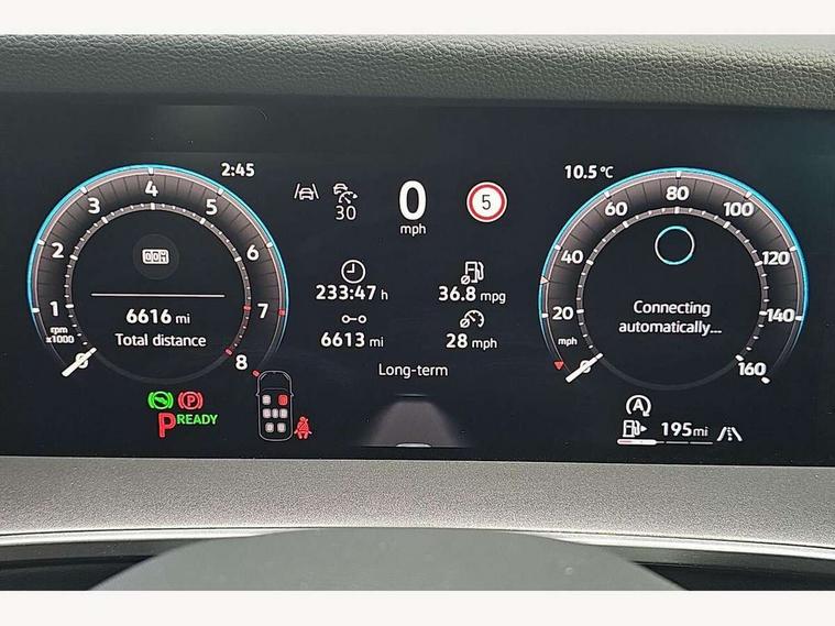 Adaptive cruise control (ACC), Digital Cockpit Pro - 10.25" high resolution dash display screen with customisable menus and information, Driver alert system, Driver attention monitoring system, Dynamic road sign display, E-Sim card for online connectivity, eCall emergency call system, Lane change system, Side assist, Rear traffic alert and Exit warning system, Multifunction front facing camera, Oncoming vehicle braking when turning including swerve support, Start/stop system with regenerative braking, Voice activation spoken voice commands for telephone and navigation system, Warning signal and warning light for front and rear seatbelts not fastened, Wireless App-Connect, Front wheel drive, Digital radio reception (DAB), Diversity antenna for FM reception, Auto dimming interior rear view mirror, Automatic headlight control system, Body colour door handles, Body-coloured exterior mirror housings, Chrome moldings on the side windows, Comfort bumpers, Coming/leaving home lighting function, Exterior mirrors convex on the left and aspherical on the right, Heat insulating glass in side and rear windows, Laminated safety glass windshield, heat insulating, LED 3rd brake light, Puddle lights, Rain sensor windscreen wipers, Rear fog light on one side, reversing light on both sides, Rear side wing doors, Rear wiper, Reverse activated passenger's door mirror, Surround lighting with welcome light, 12V outlet in center console rear and in luggage compartment, 3 rear headrests, 3 rear seat bench in 2nd row, backrest split folding with centre armrest and 2 seats in 3rd row of seats, Carpet mats, front and rear, Centre console with illuminated storage compartment with sliding cover and two drinks holders, Door and side trim panel with leatherette insert, Flat luggage compartment floor, Front centre armrest, ISOFIX anchors for child seats on outer rear seats and front passenger seat compatible with i-Size, Mechanical rear seat release, Power adjustable lumbar support in front, Single front passenger seat, Sun visors with illuminated vanity mirrors, 3 Point seat belts in front with pretensioners, 3 point seatbelts in outer rear with ECE label, Autonomous emergency braking front assist with pedestrian and cyclist monitoring, Driver and front passenger airbag with front passenger airbag deactivation, Electronic parking brake with auto hold, First aid kit with warning triangle and safety vest, Front and rear curtain airbags, Front and rear side airbags, Front centre airbag, Front disc brakes, Hill start assist, Rear disc brakes, Two tone horn, Decorative material set,