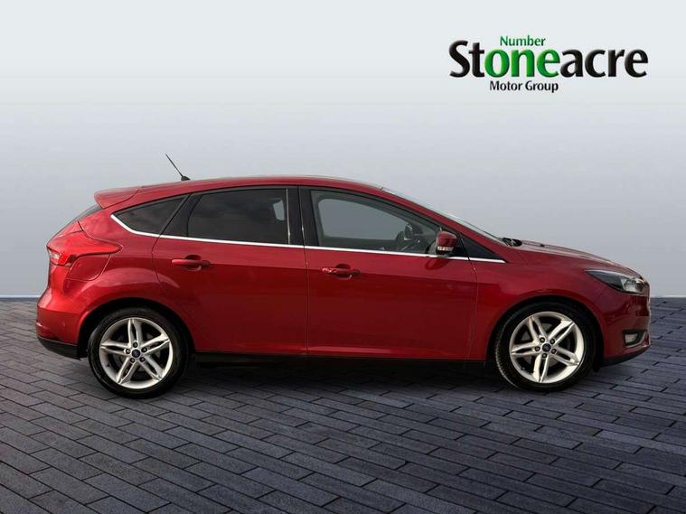 Cruise control + speed limiter, Digital clock, Easy fuel capless refuelling system, Eco mode, Electric boot release, PAS, Rear parking sensor, TFT cluster screen, Trip computer, Diesel particulate filter, 6 speakers, Aux input, Steering column with mounted audio controls, SYNC 2 DAB radio/CD, 8" colour touch screen, emergency assistance, Bluetooth connection, advanced voice control, USB connection, 'Quickclear' heated windscreen/heated washer jets, Auto dimming rear view mirror, Automatic headlights, Automatic rain sensing wipers, Body colour bumpers, Body colour door handles, Body colour door mirrors, Body colour rear spoiler, Chrome finish on upper door line, Chrome radiator grille and surround, Electric adjustable heated door mirrors, Front fog lights, Front variable intermittent wipers with electric wash, Heated rear window, LED daytime running lights, Tailgate wash/wipe, 3 spoke leather steering wheel, 60/40 split back and cushion rear seats with 2 height adjustable headrests, Centre console storage box/armrest, Driver's seat with adjustable lumbar support, Dual electronic automatic temperature control air conditioning - CFC-free, Height adjustable front headrests, Isofix child seat preparation, Passenger seat height/lumbar adjustment, Reach + rake adjustable steering column, Sports style front seats, ABS+Electronic Brake force Distribution, Active city stop, Driver airbag, ESP with traction control + emergency brake assist, Front inertia reel height adjustable seatbelts with pre-tensioners, Front passenger airbag, Front side airbags, Hill start assist, Side curtain airbags, Three rear inertia reel lap/diagonal seatbelts, Torque vectoring brake, Tyre pressure monitoring system, Immobiliser-Passive Anti-Theft System (PATS), Key free system, MyKey system, Remote central double locking, Thatcham Cat.1 alarm,