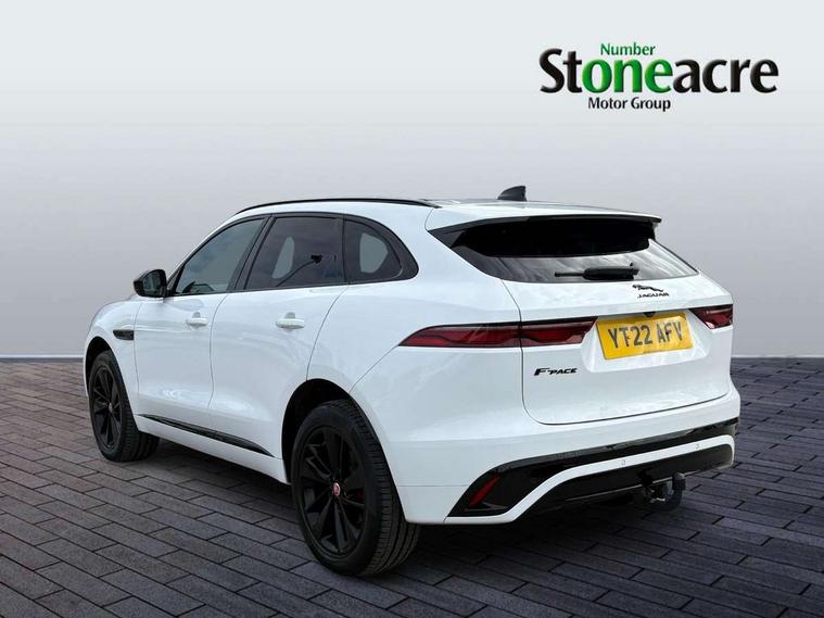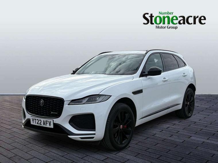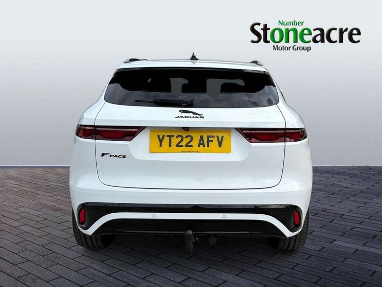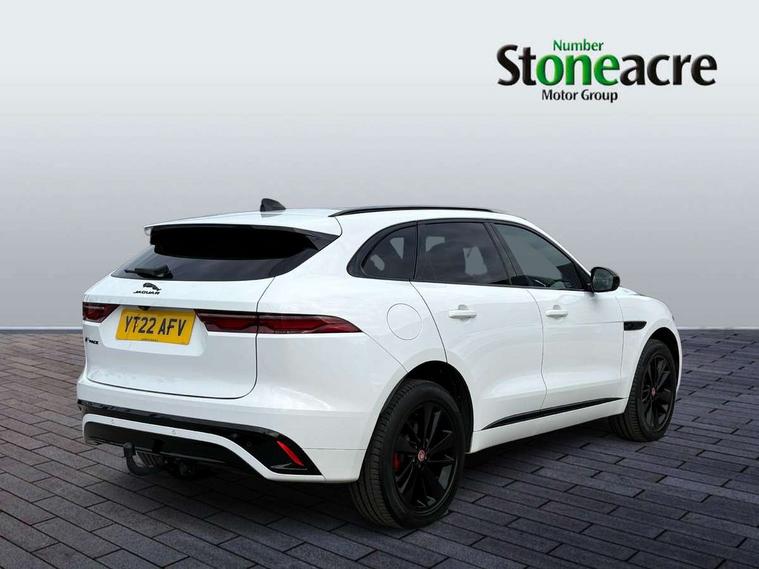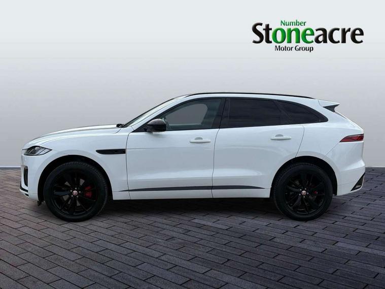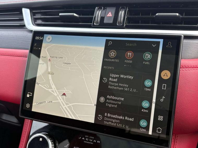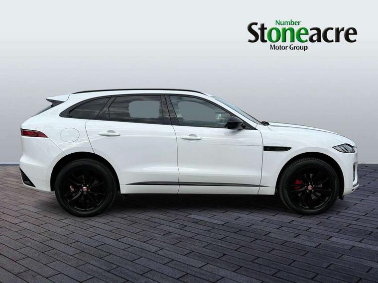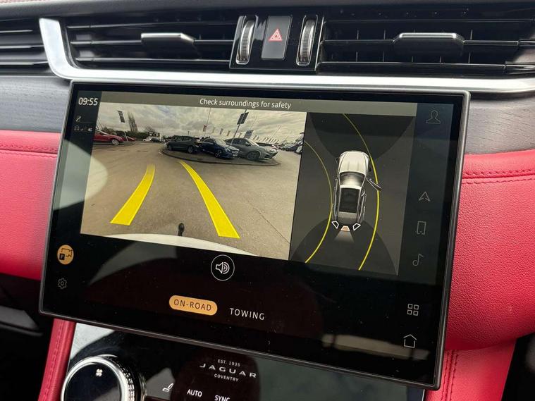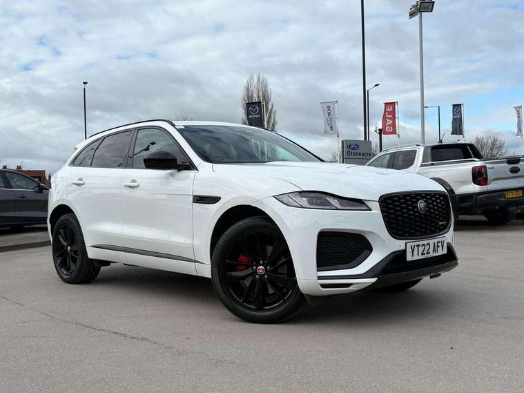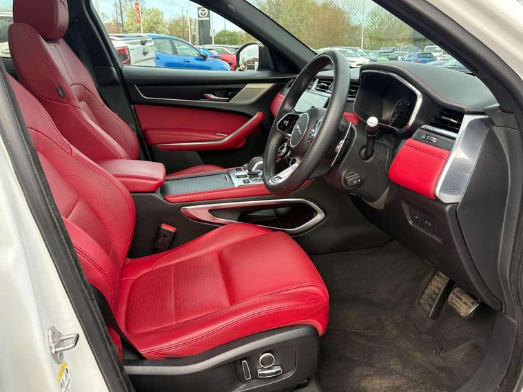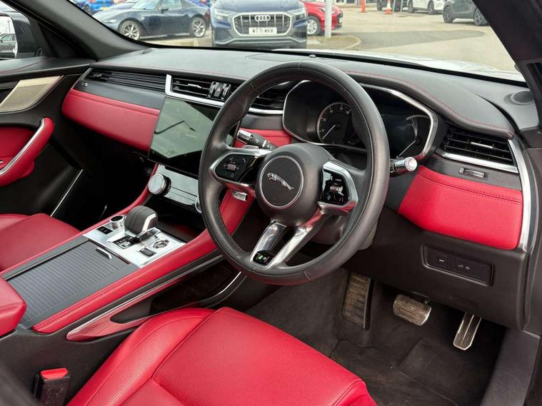 11.4" touchscreen, Android Auto, Apple car play, Bluetooth connectivity, Driver alert system, Driver condition monitor, eCall emergency call system, Eco driving style assistant, Electric power assisted steering, InControl remote, Jaguar Toggle shift selector, Lane departure warning system, Lane keep assist, Outside temperature gauge, Personalisation profile management, Pivi pro connected navigation system with app interface and media storage, Pro services and wifi hotspot, Push button starter, Service interval indicator, Speed proportional steering, Start up sequence with movement in dials and lighting, Traffic sign recognition with adaptive speed limiter, Trip computer, Voice control system, 8 speed automatic transmission, All terrain progress control, All Wheel Drive (AWD), Open differential with torque vectoring by braking, AM/FM radio, Bluetooth streaming, DAB Radio (Digital Audio Broadcasting), Dynamic volume control, InControl apps, InControl protect, iPod integration, 3 flash lane change indicators, Animated directional indicators, Approach Illumination, Auto dimming rear view mirror, Automatic headlights, Electric windows with one touch open/close and anti trap, F-Pace and R Dynamic badge, Gloss black door mirrors, Gloss black roof rails, Green tinted glass, Heated front windscreen + heated washer jets, Heated rear window with timer, Jaguar script and leaper, LED High level third brake light, LED tail lights, Non acoustic front windscreen, Privacy glass, R Dynamic badge on side door, Rain sensor windscreen wipers, Rear fog lights, Rear metal tread plates, Rear side wing doors, Rear wiper, Trailer stability assist, Variable front intermittent wipers, 12V power point front, 3 rear headrests, 3 seat bench in 2nd row, Air distribution speed, Bright metal foot pedals, Centre armrest console, Centre console with side storage, Deletion loadspace storage rails, Door sill tread plates, Fold flat front seats, Front centre armrest with storage compartment, Front door storage space, Glovebox finisher with jaguar script, Heated steering wheel, Hooks in loadspace, Illuminated glovebox, Interior front door handles with separate locking switches, ISOFIX on outer rear seats, Jaguar sense, Luggage tie downs in loadspace, Mist sensing, Multifunction steering wheel, Overhead lighting console, Overhead stowage for sunglasses, Passive front head restraints, Premium cabin lighting, Premium carpet mats, R-Dynamic branded leather steering wheel, Rear air vents, Rear armrest with twin cupholders, Rear centre headrest, Rear door storage space, Reversible boot floor, Satin chrome gearshift paddles, Shopping bag hook, Single front passenger seat, Sunvisors with illuminated vanity mirrors, Twin front cupholders with cover, Black Exterior pack - F Pace R-Dynamic/Sport, Exterior pack - F Pace R-Dynamic, Online Pack with data plan - F-Pace, 355mm front brakes and 325mm rear brakes, 3x3 point rear seatbelts, ABS, All surface progress control (ASPC), Brake pad warning light, DSC - Dynamic Stability Control, Electric parking brake (EPB), Emergency brake assist, Front airbags with passenger seat occupant detector, Front and rear seatbelt reminder, Front side airbags, Full length side window curtain airbag, Hill launch assist, Power operated child locks, Torque vectoring brake, Traction control, Tyre pressure monitoring system, Immobiliser, Keyless start, Locking wheel nuts, Perimeter alarm, Remote central locking, Valet mode,