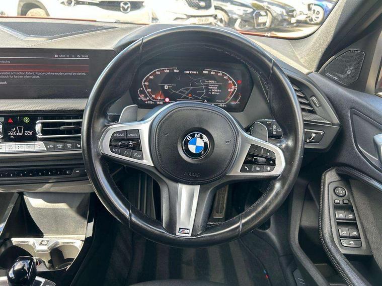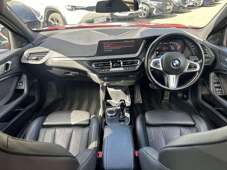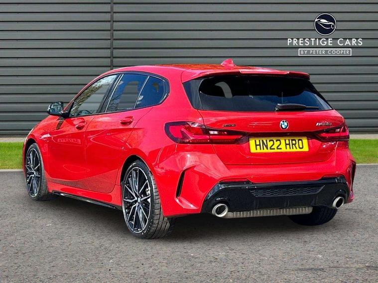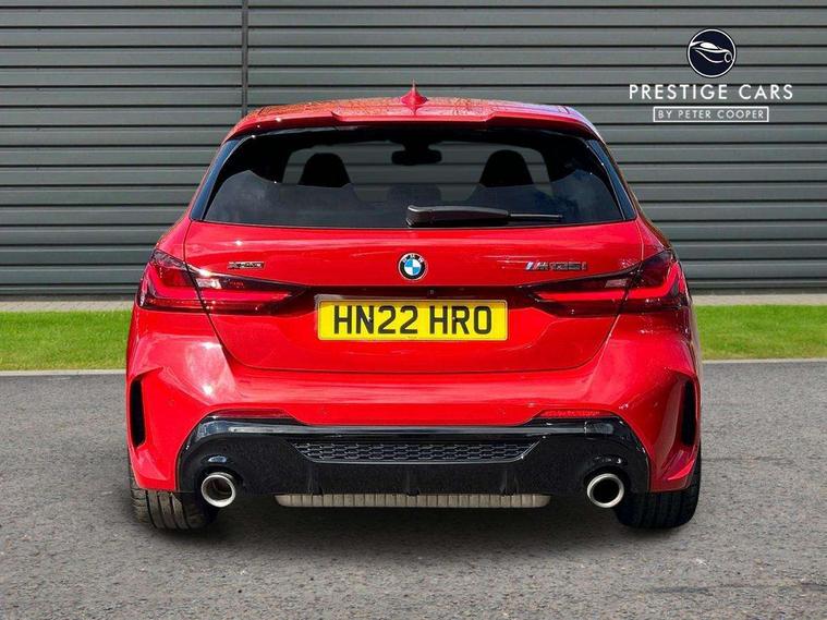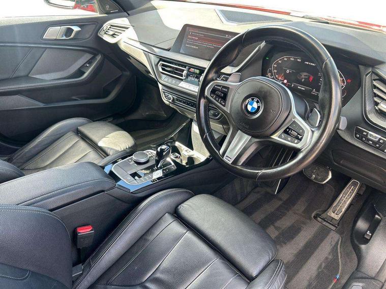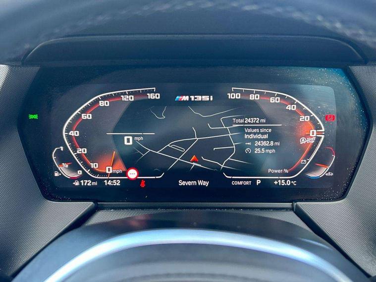 Active guard plus, Attentiveness assist, Bluetooth / WiFi interface for wireless connection of mobile terminal devices and audio streaming, BMW ConnectedDrive online services, BMW Teleservices, Check Control warning system for monitoring of lights and door/luggage compartment open warning, Cruise control with brake assist, Eco pro mode, Electric power steering, Electro hydraulically controlled multi-plate clutch transfers drive to rear axle and with power take-off device located on the front differential., Energy efficient operating strategy, Front axle single joint with specific axle kinematics to minimise drive influences on steering + provide increased rigidity agile driving behaviour, Gearshift time display in manual mode, Integrated owners handbook, Lane departure warning system, M Sports steering with M135i xDrive specific settings, Oil sensor for level and grade, On board computer, Optimum shift indicator, Personal Profile, Pull away assistant, Rigidly mounted rear subframe - Multi link construction with separate spring / damper configuration and excellent driving characteristics, Speed limit Info including no-overtaking indicator, Speed limiter, Sporty fast gear shifting in sport mode, Aluminium lightweight construction, Anti roll bar front and rear, Balancer shaft, Double VANOS, Drive Performance Control, Eight speed sport automatic transmission with gearshift paddle switches, Electronic differential lock, Electronic selector lever, Engine cover with M performance designation, High precision injection, Larger fuel tank capacity (50 litres), Launch control, M135i specific heavily de-throttled engine intake air guide, M135i specific high-performance cooling package, M135i specific larger turbocharger with integrated divert-air valve, Petrol Particulate Filter, Twin tube gas filled shock absorbers with degressive characteristic curve, VALVETRONIC engine management, Variable, stepless and infinitely adjustable distribution of drive torque between the front and rear axles, xDrive intelligent all wheel drive with M135i specific reinforced components, DAB Digital radio, Auto dimming rear view mirror, Automatic headlight beam throw control, Automatic windscreen wipers and automatic headlight, Body colour door handles, Body colour roof trims, Cerium grey exterior mirror caps, Direction indicator side lights in exterior mirrors, Exhaust tailpipe, Cerium Grey with bevelled finish - twin, round 100mm, left and right split, Fading support, Folding side mirrors with auto dimming/folding wing mirrors with auto dimming, Follow me home headlights, Front and rear bumper system with replaceable deformation elements, Front and rear electric windows with open and close fingertip control, anti trap facility and comfort closing, Front door sill finishers with M135i designation, Green tinted heat protection glazing, Heated, electrically adjustable exterior mirror aspheric on driver side, convex on passenger side, High gloss shadowline window frame, Recess cover mirror frames and B/C pillar embelisher trim, High level third brake light, Integrated front windscreen with washer jets, Kidney grille frame in Cerium Grey with Mesh design, LED daytime running lights, LED eyebrow turn indicators, LED front fog lights, Lightweight engineering, M logo designation side in cerium grey, M Performance exhaust system with valve control and minimised exhaust back pressure, M Performance specific setup, M Sport spoiler, Matt black air guide grilles, Matt black wheel arch trim, Model designation on electric bootlid includes xDrive designation for M135i xDrive, Nearside reverse light in rear light cluster, Preparation for high beam assistant, Rear fog lights, Rear side wing doors, Rear window wiper, Reinforced crank drive, new pistons and adapted con rods, Shark fin antenna, Trailer stabilisation logic, Visible VIN plate, Welcome lighting, 12V power socket in front centre console with blanking plug, 3 rear seat head restraints, 3 seat bench in 2nd row, 3 spoke sports leather steering wheel with black leather and stitching, pearl chrome decorative finish, specific M Badge, Ambient interior lighting, Anthracite headlining, Child seat ISOFIX attachment for two outer rear seats and front passenger seat with anchorage points, Conditioned based service, Driver and front passenger seat heating, Floor mats in anthracite velour with contrasting colour seam to match contrast stitching on instrument panel, Folding rear clothes hook, Four grab handles integrated in roof lining, Front and rear door pockets with bottle holders, Front and rear side armrest integrated into door trim, Front armrest, Front integrated head restraints, Front M sports seats, Glove compartment, Luggage compartment for bag hooks on left and right, foldable luggage compartment liner and two lashing eyelets, Manual adjust steering wheel, Multi-function controls for steering wheel, Single front passenger seat, Storage compartment in centre console, Sun visors with vanity mirrors and insert tab, Two front centre console cupholders, Two zone automatic air conditioning, Additional interior lighting pack - 1 Series M135i, Additional storage compartment pack with code 493 -1 series, BMW live cockpit professional pack- 1 Series, Connected pack professional - 1 Series, Interior lights pack - 1 Series, M Sport exterior styling aerodynamics pack - 1 Series 135i, 2 tone horn, 3 point seatbelts on all seats, front pyrotechnic belt tensioners, stopper and belt force limiters, rear coded belt buckles, Airbags - Front driver/passenger, front and rear curtain head protection, front side, manual deactivation of front passenger airbag, Anti lock braking system (ABS) with brake assist, BMW emergency call, Brake drying, Braking readiness, Child proof locking system in rear door, City braking function, Comfort modes, Cornering brake control, Crash sensor activating central locking release, hazard warning lights, fuel cut off, interior lighting + activation of safety battery terminal