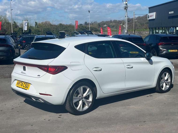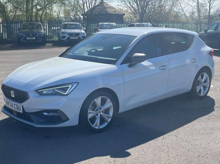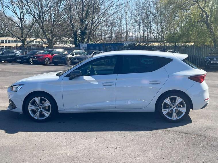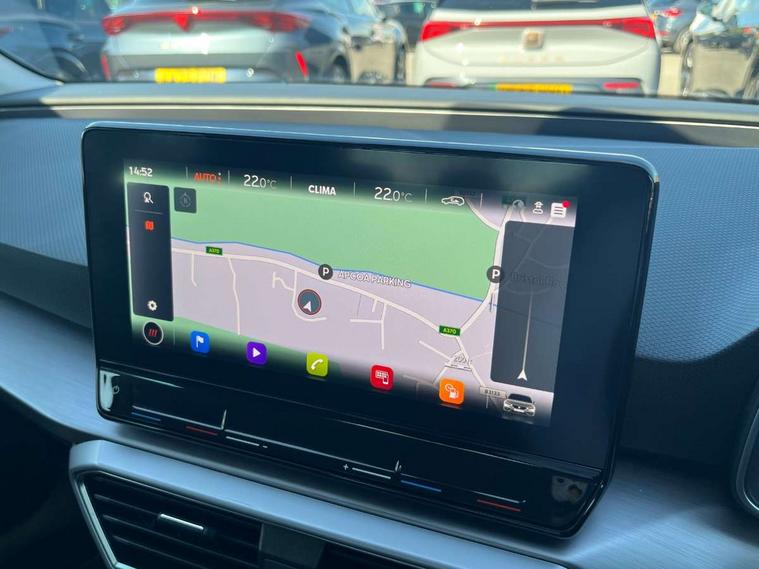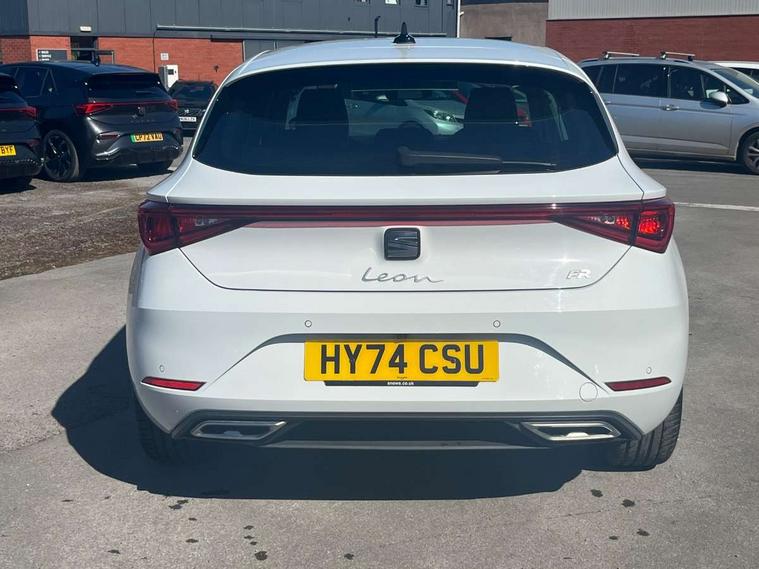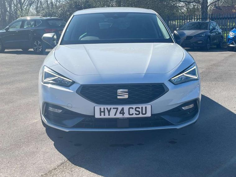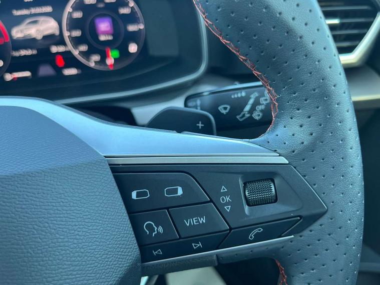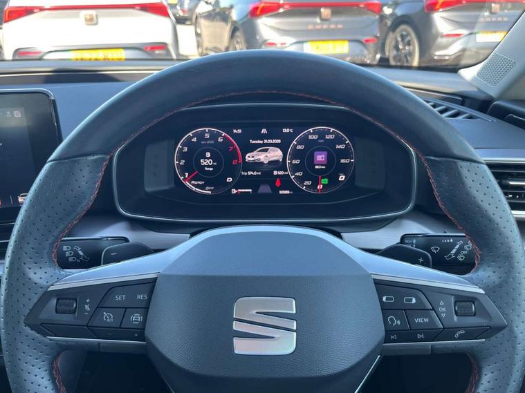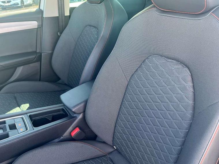 Digital cockpit, E-call, Four x USB Type C ports, Front assist with forward collision warning braking reaction to vehicles, pedestrians and cyclists, Full link smartphone integration with Mirror Link, wireless Apple CarPlay and wired Google Android Auto, Lane assist, Lockable tailgate, Park assist (inc front/rear parking sensors), Power assisted speed sensitive electro-mechanical steering, Rear view camera, RPM, trip computer, outside temp gauge, instrument light brightness, low fuel warning light, lights on reminder, gearshift indicator, SEAT drive profile with 4 modes (Eco/Normal/Sport/Individual), throttle response and gearshift mode, Service interval indicator, Start/stop system with regenerative braking, Sports suspension, XDS electronic differential lock and dynamic traction support, 7 speakers, Auxiliary input socket, Auto dimming rear view mirror, Body colour door handles, Body coloured bumpers, Cosmo grey exterior mirrors with integrated LED indicators, Dark tinted rear windows, Dynamic headlight range control, Electric front/rear windows, Electrically adjustable, heated and folding door mirrors, FR sports bumper, Illuminated front door sill, LED front fog lamps, LED Headlights with dynamic turn signals, LED tail lights and rear fog lights with rear coast to coast lighting, Rear side wing doors, Rear wash/wipe, Separate daytime running light with automatic headlight control and coming home feature, Third brake light, Welcome light silhouette from exterior mirrors, Windshield wiper intermittent control with light/rain sensor, 12v power point in centre console, 3 seat bench in 2nd row, 60/40 split rear bench seat with armrest, Ambient lighting with glovebox, footwell and single monocolour, Driver/passenger manual seat height adjustment, Dust/pollen filter, Folding boot cover, Front and rear height adjustable headrests, Front and rear reading lights X 4, Front centre armrest, Front seatback storage pockets, Height/reach adjust steering wheel, ISOFIX points in outer rear seats with top tether anchorage points, Luggage tie-down hooks, Lumbar adjustment for front seats, Single front passenger seat, Sunvisors with covered illuminated mirror, Three zone climate control, Tool kit, Two tone cloth upholstery, Media system plus with navigation - Leon, 3 point seatbelts on all rear seats, ABS, Brake control system - ESC and brake booster, Child proof door locks, Driver and front passenger airbags with front passenger airbag de-activation, front side and curtain airbags, Electronic parking brake, Extended safety system - seat belt tensioner, window closure and hazard lights, Hill hold control, Rear disc brakes, Seat belt reminder for front and rear seats, Tiredness recognition system, driver alert system, Tyre pressure monitoring system, Anti theft alarm system with interior monitoring in cab, backup horn and towing protection, KESSY Go (Keyless start), Locking wheel bolts, Wireless phone charging, Chrome interior detailing, 17" Dynamic Bi-spoke alloy wheels with 91W tyres,
