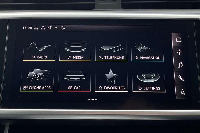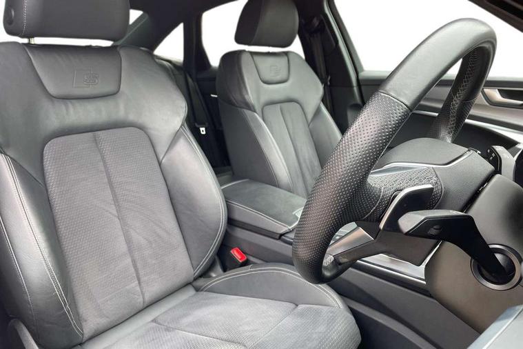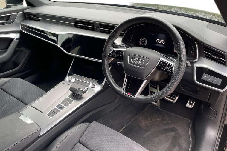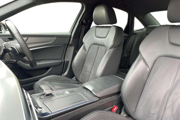 7" high resolution colour driver information display system, Audi connect safety and service (e-call), Audi connect with Amazon Alexa Integration, Audi drive select, Audi parking system plus - acoustic and visual park assist system for front and rear, Automatic start/stop system with coasting functionality, Bluetooth interface, Electric boot lid release, Lane departure warning system, Progressive steering, Rear view camera, Service interval indicator, Smartphone interface includes wireless Apple carplay/Android Auto, Voice control system, Sports suspension, Audi front music interface, Audi sound system, Auxiliary input socket, DAB Digital radio, USB connection, All weather LED headlights, Body coloured door mirrors, Electric front/rear windows, Frameless auto dimming interior rear view mirror, Front intermittent wipers, Headlight washers, Heat insulating darkened glass in side and rear windows, Heat insulating glass in windshield, LED rear lights, LED signature front daytime running light, LED third brake light, Matt black side air intake grille with inlay in matt aluminium, Privacy glass, Radiator grille in titanium black matt, single frame in chrome and horizontal struts in matt aluminium silver, Rain and light sensors, Rear boot, Rear side wing doors, S line air inlet design with inlay in matt aluminium, S Line badge on front fender, S Line front and rear bumpers, S line rear diffuser and grille in matt black with matt aluminium tailpipes, S Line side skirts, 2 zone deluxe electronic climate control, 4 way electric lumbar support for driver and front passenger, 40/20/40 split folding 3 rear seat bench in 3 parts with rear centre armrest, Black cloth headlining, Black steering wheel insert, Electrically adjustable front seats with driver memory, Front centre armrest, Front head restraints, Heated front seats, Height/reach adjust steering wheel, Illuminated door sill trims with S logo, Illuminated sun visors with vanity mirrors, ISOFIX child seat mounting and Top Tether with front passenger airbag deactivation, Leather gear knob, Rear headrests, S line front and rear black carpet floor mats with contrast stitching, Single front passenger seat, Stainless steel pedals and foot rest, LED Interior Ambient Lighting Pack - A6, Non smoking pack - A6, Technology pack - A6, 3 point seatbelts on all seats, Airbags - Front side, front and rear including head, Audi pre-sense front, EBD - Electronic brakeforce distribution, Electromechanical parking brake, Electronic Stability Control (ESC) including ABS, ASR and EDL, Extended pedestrian protection measures, Manual child proof rear door locks, Seatbelt monitoring, Tyre pressure warning light, Warning triangle and first aid kit, Anti theft alarm with tow away protection, Anti-theft wheel bolts and wheel loosening detection, Immobiliser, Keyless Go, Remote central locking, Black seatbelts, Matt brushed aluminium dark inlays,