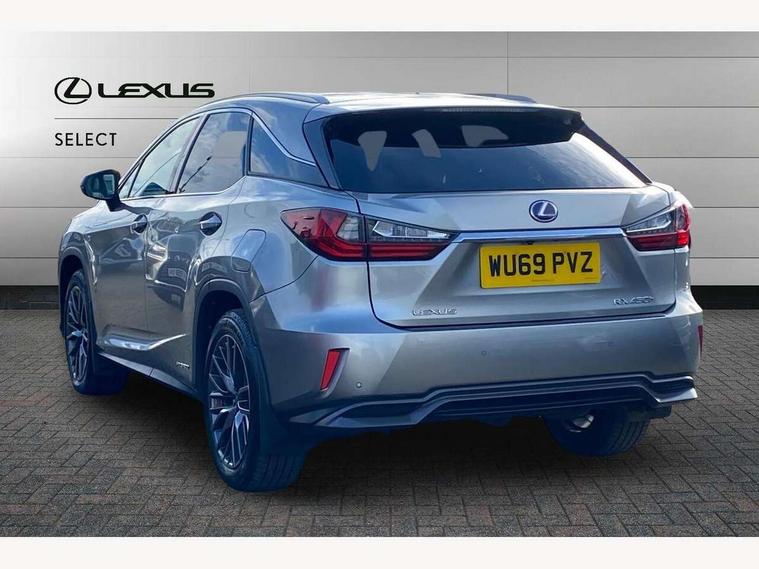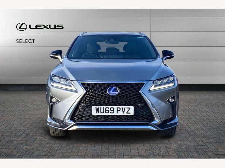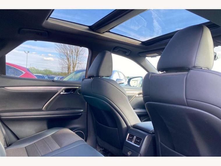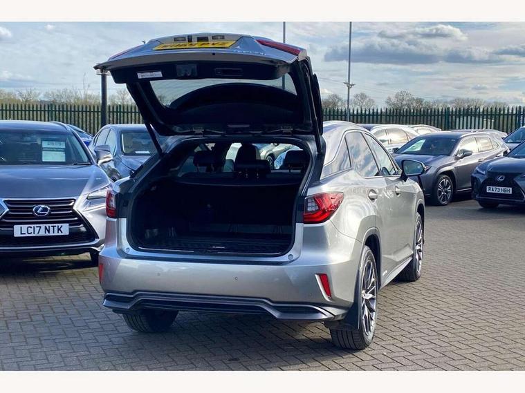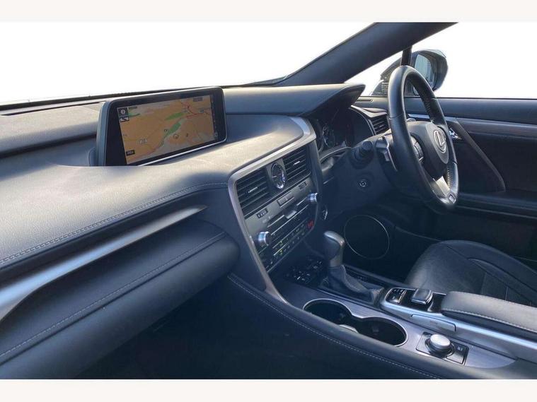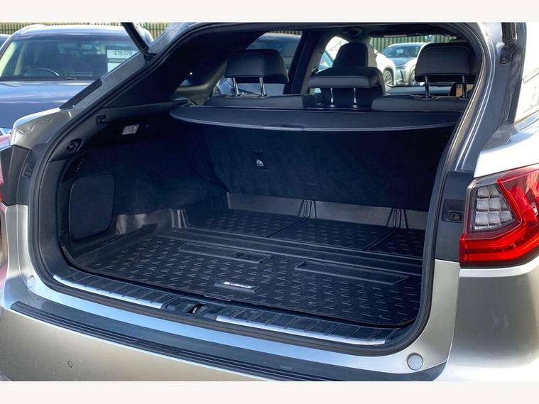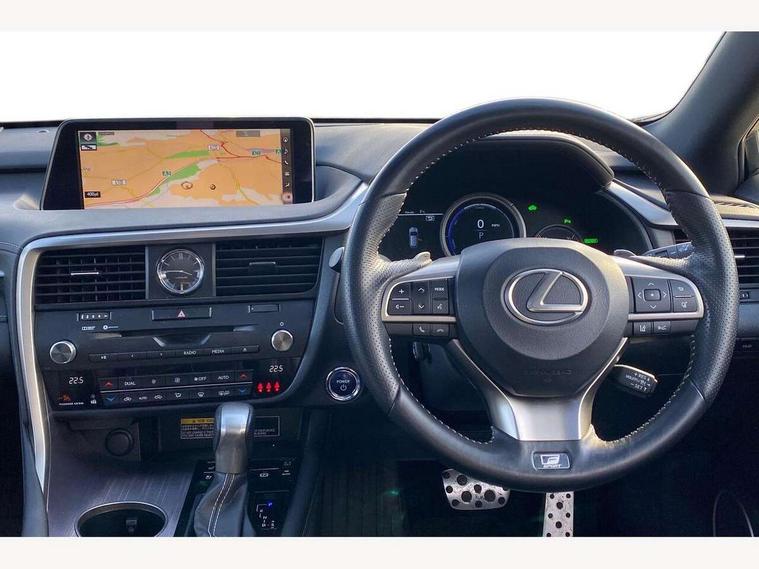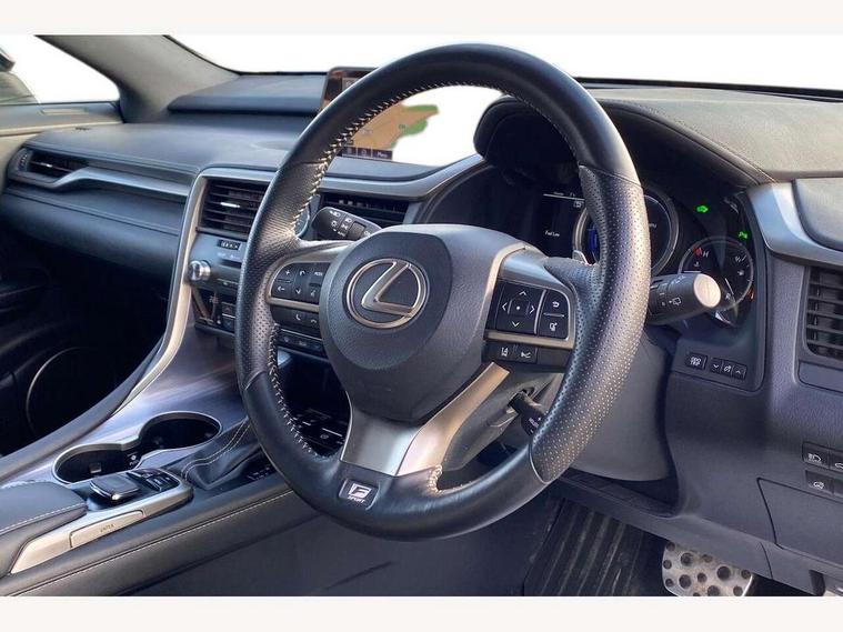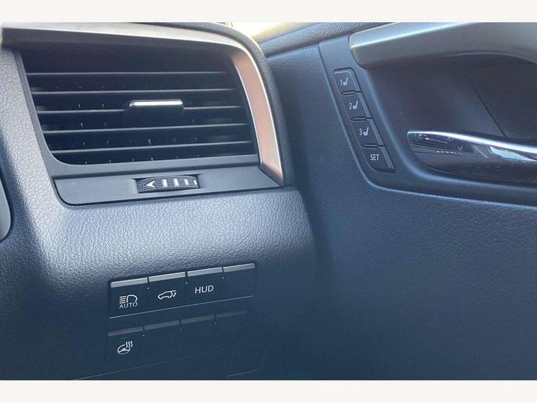Adaptive cruise control + pre-crash system, Analogue clock, Analogue clock with GPS function, Bluetooth system, Drive mode selector, Driver alert system, EPAS, Hands free power tailgate, Intelligent parking assist, Lane keep assist, Multi-information display, Premium navigation system, Push button starter, Remote touch interface, Reversing camera, Service interval indicator, Sports steering system, Traffic sign recognition, Trip computer, Wireless Smartphone charger, Adaptive variable suspension, VDIM, Vehicle Stability Control (VSC), 12 speakers, 12.3" colour touch-screen display, Auxiliary input socket, DAB Digital radio, DVD System, Steering wheel mounted audio/telephone controls, USB connection, 3 eye LED headlamps, Adaptive front lighting system, Auto dimming interior mirror + dimming door mirrors, Auto high beam assist, Black mirror caps, Body colour bumpers, Door mirror memory, Electric folding door mirrors, Electrochromatic rear view mirror, F SPORT exterior styling, Front and rear electric windows, Front windscreen de-icer, Headlight washers, Heated door mirrors, Laminated front side windows, LED brake lights and rear lights with emergency brake signal, LED cornering headlights, LED daytime running lights, LED front and rear sequential indicators, LED front fog lights, LED rear lights, Power back door system, Privacy glass (rear side windows and rear screen), Puddle lights, Rain sensor windscreen wipers, Rear side window blinds, Rear wiper, Roof rails, Roof spoiler, UV reducing glass, 2 bag hooks in luggage compartment, 2 way electric lumbar support, 3 rear headrests, 3 x 12V power sockets, 4 load securing hooks in luggage area, 60/40 split sliding rear seats, 8 way electrically adjustable front seats, Active sound control, Aluminium scuff plates, Aluminium sports pedals, Automatic air recirculation system, Card holder installed in driver and passengers sun visors, Carpet mats, Centre armrest with storage box, Clean air filter, Driver seat memory function, Driver/passenger temperature controls, Dual zone climate control air conditioning system with auto recirculation, pollen removal mode, nano technology and climate concierge, Electric adjustable steering column, F Sport interior styling, Front centre armrest with 2 cupholders, Front head restraints, Front seat back map pockets, Heated and ventilated front seats, Heated leather steering wheel, Illuminated entry system, Isofix standard child seat restraint mounting, Leather gear knob, Leather gear lever, Leather steering wheel, LED interior illumination, Lexus safety system +, Memory for steering column, Multi function steering wheel, Paddle shift controls, Perforated leather upholstery, Rear armrest with storage + cupholders, Rear door map pockets, Side sunshades, Sliding/reclining rear seats, Sunglasses holder, Sunvisors with illuminated vanity mirrors, ABS, Curtain airbags, Driver/Front Passenger airbags, Driver/front passenger side airbags, Drivers knee airbag, EBD + Brake Assist, Electronic parking brake, Electronically controlled braking, Front passenger seat cushion airbag, Front/rear seatbelt pre-tensioners, Hill start assist, Passenger airbag cut-off device, Rear passenger side airbags, Sway warning system, Three 3 point rear seatbelts, Traction control, Tyre pressure warning, WIL whiplash protection front seats, Anti theft alarm, Deadlocks, Immobiliser, Locking wheel nuts, Remote central double locking, Security window etching, Smart keyless entry, Aluminium inlays, 20" Sport alloy wheels, Space saver spare wheel,
