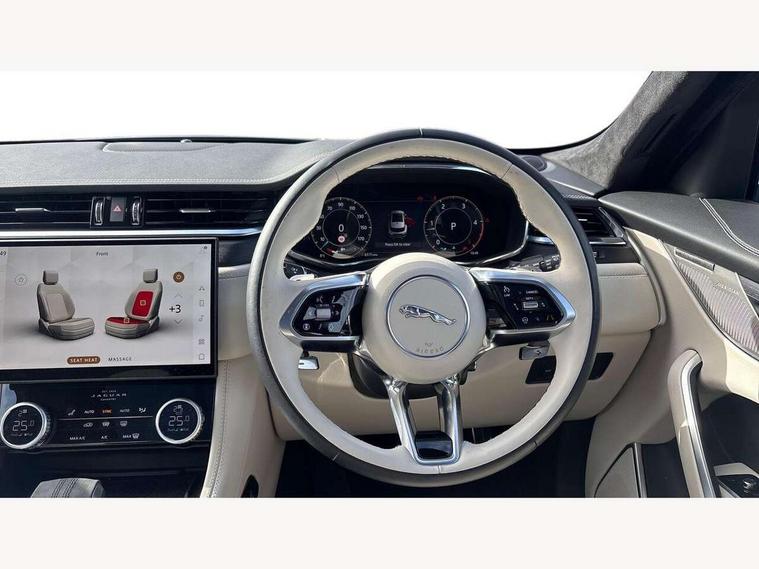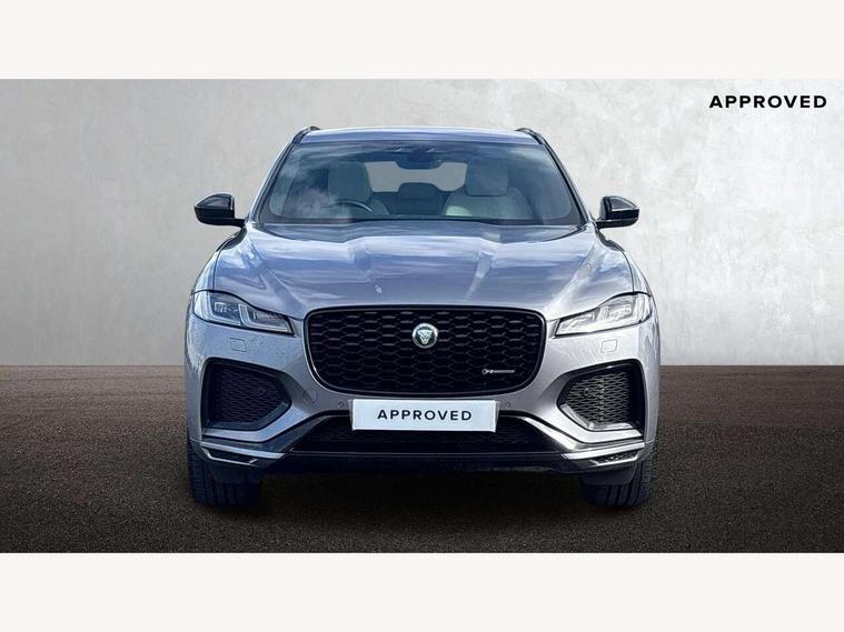 11.4" touchscreen, Adaptive cruise control with steering assist, Android Auto, Apple car play, Blind spot assist, Bluetooth connectivity, Clear exit monitor, Driver alert system, Driver condition monitor, eCall emergency call system, Eco driving style assistant, Electric power assisted steering, InControl remote, Interactive driver display digital with 12" TFT display, Jaguar Toggle shift selector, Lane departure warning system, Lane keep assist, Outside temperature gauge, Personalisation profile management, Pivi pro connected navigation system with app interface and media storage, Pro services and wifi hotspot, Push button starter, Rear collision monitor, Rear traffic monitor, Service interval indicator, Speed proportional steering, Start up sequence with movement in dials and lighting, Traffic sign recognition with adaptive speed limiter, Trip computer, Voice control system, Wireless device charging, 8 speed automatic transmission, Adaptive dynamics, All terrain progress control, All Wheel Drive (AWD), Configurable dynamics, Open differential with torque vectoring by braking, AM/FM radio, Bluetooth streaming, DAB Radio (Digital Audio Broadcasting), Dynamic volume control, InControl apps, InControl protect, iPod integration, 3 flash lane change indicators, AHBA and animated directional indicators, Approach Illumination, Auto dimming rear view mirror, Automatic headlights, Electric heated/power fold memory door mirrors with approach lights and auto dimming driver side, Electric windows with one touch open/close and anti trap, F-Pace and R Dynamic badge, Green tinted glass, Heated front windscreen + heated washer jets, Heated rear window with timer, Illuminated metal tread plates with Jaguar script, Jaguar script and leaper, LED High level third brake light, LED tail lights, Metal load space scuff plates, Non acoustic front windscreen, Privacy glass (rear side windows and rear screen), R Dynamic badge on side door, Rain sensor windscreen wipers, Rear fog lights, Rear metal tread plates, Rear side wing doors, Rear wiper, Trailer stability assist, Variable front intermittent wipers, 12V power point front, 3 rear headrests, 3 seat bench in 2nd row, Additional power sockets - Two additional USB sockets in rear centre console and one 12V socket in trunk, Air distribution speed, Bright metal foot pedals, Centre armrest console, Centre console with side storage, Configurable cabin lighting, Deletion loadspace storage rails, Door sill tread plates, Ebony suede cloth headlining, Electrically adjustable steering column, Fold flat front seats, Front centre armrest with storage compartment, Front door storage space, Glovebox finisher with jaguar script, Heated steering wheel, Hooks in loadspace, Illuminated glovebox, Interior front door handles with separate locking switches, ISOFIX on outer rear seats, Jaguar sense, Leather steering wheel, Luggage tie downs in loadspace, Mist sensing, Multifunction steering wheel, Overhead lighting console, Overhead stowage for sunglasses, Passive front head restraints, Premium carpet mats, Rear air vents, Rear armrest with twin cupholders, Rear centre headrest, Rear door storage space, Reversible boot floor, Satin chrome gearshift paddles, Shopping bag hook, Single front passenger seat, Sunvisors with illuminated vanity mirrors, Twin front cupholders with cover, Online Pack with data plan - F-Pace, 355mm front brakes and 325mm rear brakes, 3x3 point rear seatbelts, ABS, All surface progress control (ASPC), Brake pad warning light, DSC - Dynamic Stability Control, Electric parking brake (EPB), Emergency brake assist, Front airbags with passenger seat occupant detector, Front and rear seatbelt reminder, Front side airbags, Full length side window curtain airbag, Hill launch assist, Power operated child locks, Traction control, Tyre pressure monitoring system, Immobiliser, Keyless entry, Keyless Start, Locking wheel nuts, Perimeter alarm, Remote central locking, Valet mode,