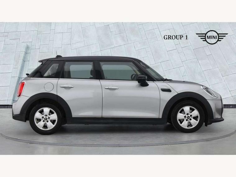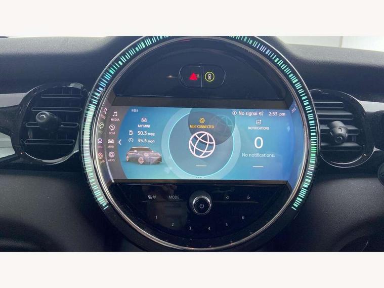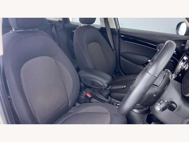 Apple CarPlay, Automatic start/stop function with brake energy recuperation, Compatible mobile phone bluetooth with audio streaming, Cruise control with brake assist, Electro-mechanical speed dependant steering assistance, Flexible car sharing preparation, Instrument cluster, Mini E-call, MINI TeleServices, On board computer, Service interval indicator, Double Vanos system, Fully variable valve control, Gear change indicator display, High precision injection, Performance Control, Steptronic transmission with double clutch, 8.8" touchscreen with LED ring, FM tuner and DAB digital radio, 3rd brake light, Automatic headlight activation switch, Body colour fuel filler cap, Chrome border high gloss black slats radiator grille, Dynamic brake lights, Electric front+rear windows, Exhaust tailpipe on left with chrome finisher, Heated rear window, Heated windscreen washer jets, LED headlight with closed ring and daytime driving lights, Metal door sill strips with MINI imprint, Model logo Cooper on right of tailgate, Rain sensor window wipers, Rear fog lights, Rear LED lights with union jack design, Rear side wing doors, Rear window wiper, Side scuttle panel with integrated indicator, Sun/heat protection glass, White indicator lenses, 12V Accessory socket in centre console, 3 seat bench in 2nd row, 4 lashing eyes in luggage compartment, 60/40 split folding rear seat, Ambient lighting, Carbon black colour line - Knee roll and door armrest, Chrome interior highlights, Cupholders, Front and rear head restraints, Front and rear isofix with front passenger airbag deactivation, Front and rear velour floor mats, Glove compartment, Height and length steering column adjustment, Interior lighting with 12 different colours across the dashboard, underneath door bezel with illuminated laser-engraved design on central display, Leatherette gearshift lever and handbrake gaiters, LED reading lights, vanity mirror lights, front foot well light and spotlight on front seats, Manual air conditioning, Mechanical seat adjustment - forward/back & backrest for front seats and driver seat height adjust, Multifunction steering wheel, Satellite grey headlining including grab handles and clothes hooks, Single front passenger seat, Sport leather steering wheel with speed limiter and audio/communication controls, Storage compartments in doors, Sunvisors with vanity mirrors, 3 point seatbelts on all five seats, 6 Airbags - front, side, head and seat belt tensioners, Anti-lock braking system (ABS), Child locks on rear doors, DSC - Dynamic Stability Control, Front and rear disc brakes, Hill start assist, Single tone fanfare horn, Tyre pressure monitoring system, Alarm system with tilt sensor, monitoring doors, bonnet interior and tailgate, Electronic vehicle immobiliser, Start/stop toggle with keyless go, Piano black interior trim, Tool kit, Tyre repair kit,