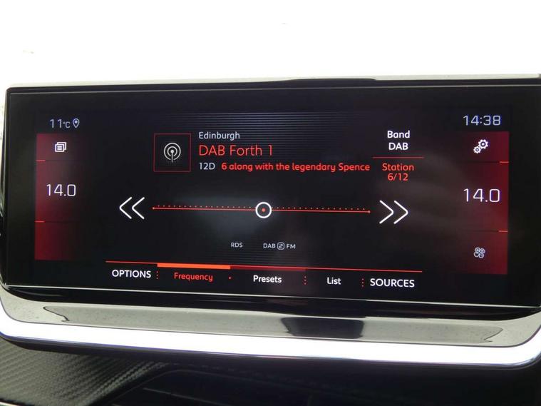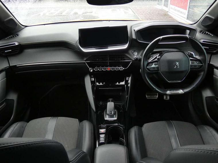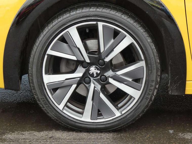 Bluetooth telephone facility, Driver attention warning, Exterior temperature indicator with ice warning, Front and rear parking sensors, Mirror screen with mirror link, apple carplay and android auto, Multi function trip computer, PEUGEOT i-Cockpit with compact steering wheel, PEUGEOT i-Cockpit with configurable 3D headup instrument panel, PEUGEOT SOS and assistance, Push button start, Smart phone docking station, Smartphone charging plate, Speed limit recognition and recommendation, Visio Park 1 with 180 degree Colour reversing camera, 2 front USB socket with USB-C, 2x USB sockets in rear, 6 speakers radio with mp3 compatible, DAB Digital radio, Voice recognition for radio, navigation and telephony features, 2 X Rear number plate lights, Automatic hazard light activation upon heavy brake application, Automatic lights, Automatic windscreen wipers, Body coloured exterior door handles, Dark tinted rear side and tailgate windows, Diamond Black roof, Electric front windows + one touch + anti-pinch, Electric rear windows with one touch/anti-pinch, Electrically adjustable, heated and power folding door mirrors, Extended diamond black rear spoiler, Follow me home headlights, Frameless electrochrome interior rear view mirror, Front windscreen wiper with magic wash cleaning system, Full LED headlights with smartbeam assist, Gloss black finish on B pillar, Gloss black rear cluster connecting strip, Gloss black wheel arch extensions, Gloss black window surround, GT Line model designation badging on C pillar, GT Line model designation badging on tailgate, Headlights left on audible warning, LED daytime running lights with 3 claw headlight with distinctive tooth design, LED side indicator lights integrated into door mirrors, Model designation badges front and rear, Nera black door mirror shells, Radiator grille - Dark chrome chequered and gloss black edge trim, Rear bumper with gloss black finish, Rear full LED 3D peugeot signature claw effect lights with daylight function, Rear lower bumper diffuser effect trim in gloss black, Rear reversing lights, Rear windscreen wiper triggered automatically in reverse gear, Stainless steel door sill scuff plates, Tailgate with heated rear windscreen and wiper blade, Twin chrome exhaust tailpipes, 1/3 to 2/3 split folding rear seats, 12V socket, 8 Colour personalisable ambient lighting, Aluminium pedals and foot rest, Automatic gear lever in full grain leather and satin chrome, Driver and front passenger seat manual adjustment in longitudinal and back rest angle, Driver and front passenger seat mechanical height adjustment, Driver and front passenger sport seats, Dual zone electronic climate control, Electric power steering with reach and rake adjustable steering column, Front and rear carpet mats in black with lime green stitch detail, Front centre armrest with storage compartment, Front LED interior light with 2 reading spotlights and rear interior light with timer, High centre console with 2 cup holders, ISOFIX child seat mounting points on passenger seat, Lime green contrast stitching to armrest, front centre console, door panels and dashboard facia, Map pockets on the backs of the front seats, Mistral full grain perforated leather steering wheel with aikinite stitch detail and satin chrome 'GT' emblem, Piano keys gloss black plated toggle switches to access main functions of the vehicle, Roof lining - Mistral black, Seatbelt unfastened on the move audible and visual alert for front and rear seats, 2x 2nd row ISOFIX child seat mountings, 3 point seatbelts on all rear seats, ABS (Anti-lock Braking System) with EBD (Electronic Brakeforce Distribution) and EBA (Emergency Braking Assistance), Active safety brake with night function/cyclists/pedestrians, Child locking functionality on rear doors, Driver and passenger airbags with Passenger airbag deactivation system, Driver/front passenger side airbags, Electric parking brake, ESP with Hill Assist, Front and rear curtain airbags, Front and rear disc brakes, Front optimised safety headrests and 3 x rear retractable headrests with height adjustable, Front three point retractable seatbelts with force limiters, Tyre pressure sensor, Automatic door locking when moving off, Deadlock, Electronic code immobiliser, Thatcham Cat.1 alarm, Carbon effect Dashboard, front and rear door panel finish, 17" Camden diamond cut two tone alloy wheels, Space saver spare wheel,