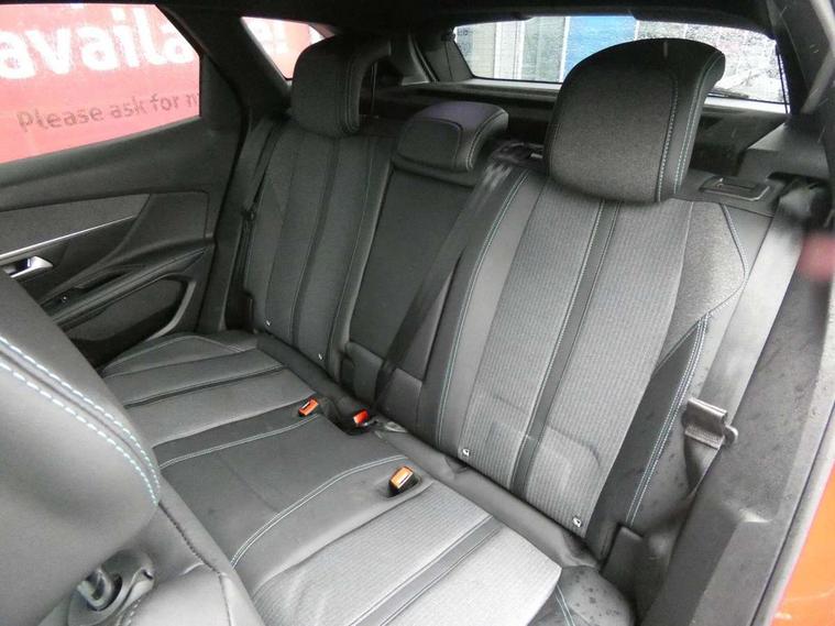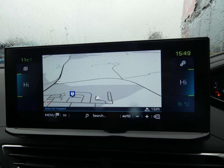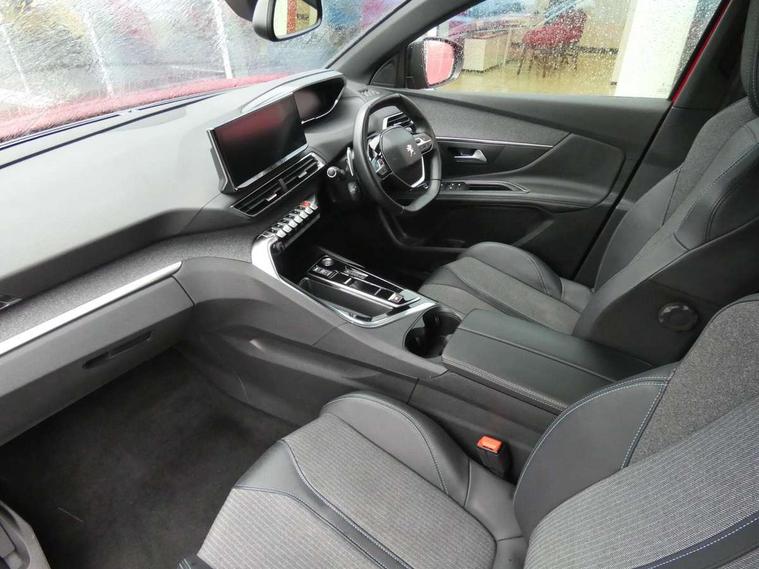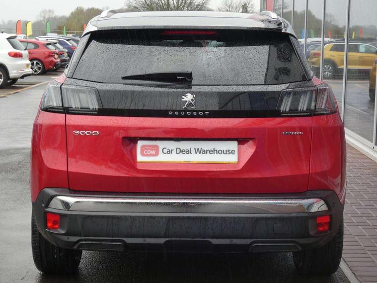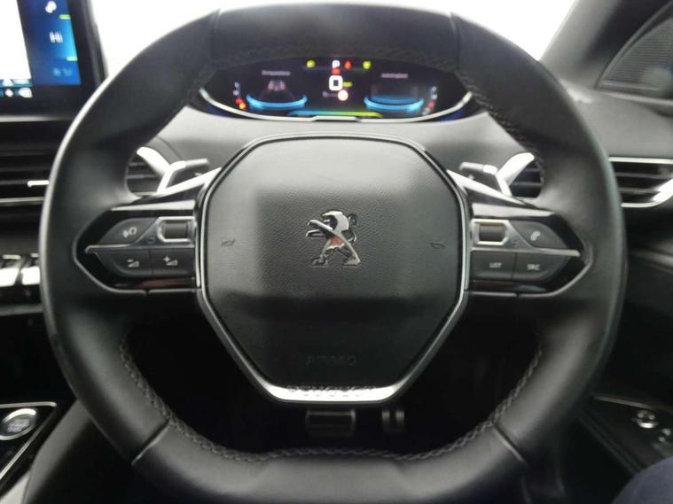 3D connected navigation with 10" HD touchscreen + voice recognition system, Apple car play and Android auto, Bluetooth telephone facility, Drive mode selector (Electric, Hybrid, Sport), Driving Time Warning (DAA1), Emergency services call system, Extended traffic sign recognition, Exterior temperature indicator with ice warning, Front and rear parking sensors, Lane departure warning system, Mirror screen with mirror link, apple carplay and android auto, Multi function trip computer, Peugeot i-cockpit with compact multi-function sports steering wheel, PEUGEOT i-Cockpit with configurable 12.3" Head-up digital instrument panel, PEUGEOT SOS and assistance, Speed limit recognition and recommendation, Deferred charging option, configurable in car or via My PEUGEOT App, Dynamic stability control and electronic anti-skid system, Mode 3 type 2 cable for wallbox charging, 6 speakers radio with mp3 compatible, DAB Digital radio, USB socket, Aluminium front door sills, Aluminium longitudinal roof bars, Automatic hazard light activation upon heavy brake application, Automatic triggered rear windscreen wiper in reverse gear, Black diamond roof, Black rubber side window trim, Black with chrome detailed front wing trim, Body colour door handles, Body colour rear roof spoiler with stainless steel edging trim, Body protectors (bottom of front and rear bumpers + wheel arches + protection at bottom of doors) in black, Chrome frameless 'Classic' grille, Chrome rear bumper facia, Dark tinted rear side windows + tailgate window, Diamond Black door mirror shells, Door mirror mounted LED courtesy floor lighting, Eco LED headlights, Electric folding door mirrors with exterior courtesy LED lighting, Electric operated/heated door mirrors, Front and rear door and sill protectors with polished stainless steel insert, Front bumper lower trim in Silver, Front windscreen wiper with magic wash cleaning system, Gloss black B and C pillar and aerodynamic deflector trim, Gloss black front bumper air scoops, Gloss black rear cluster connecting strip, Gloss black windscreen trim, Headlights left on audible warning, Heated rear windscreen with integrated antenna, HYBRID emblem on front wings and tailgate, LED daytime running lights, LED front indicator, LED rear number plate lighting, LED side indicator lights integrated into door mirrors, LED third brake light, One touch electric front/rear windows with pinch protection, Rear LED Peugeot signature 'Claw Effect' lights with clear lens and scrolling LED direction indicators, Rear side wing doors, Stainless steel door sill scuff plates, Stainless steel roof arches, 1/3 to 2/3 split folding rear seats, 12V Sockets in dashboard, rear cabin and load area, 2 cupholders in front centre console, 2 cupholders in rear armrest, 2 x Rear reading spotlights, 2x Rear coat hooks, 3x Isofix child seat fittings in the front passenger and outer rear seats, 4 Grab handles retractable and damped, Aluminium pedals, Blue ambient lighting for connecting zone, Blue ambient lighting to front door panels, Blue ambient lighting to headup instrument panel, Brumeo fabric trimmed door armrests, Cabin pre-conditioning, Centre front armrest with butterfly wing opening and illuminated storage compartment, Driver seat lumbar adjustment, Driver seat manual adjustment (longitudinal and back rest angle), Dual zone automatic climate control, e-Toggle compact gear selector, Electric power steering with reach and rake adjustable steering column, Fixed boot floor with access to the charging cable storage box, Flocked glovebox interior, Foldable front passenger seat with picnic table, Footwell illumination, Front interior light with 2 reading spotlights and rear interior light with timer, Front passenger seat manual adjustment (longitudinal and back rest angle), Front seat back map pockets, Gear shift indicator, Height adjustable front seats, Illuminated glovebox, Individual left and right controls in boot for seat folding, Leather steering wheel with detail stitch, LED interior lighting in storage spaces and load area, LED roof interior lighting, Rear bench seat with central armrest and ski hatch, Rear centre console ventilation system, Roof lining - Mistral black, Satin chrome dashboard trim, Satin chrome digital instrument panel and touchscreen trim, Satin chrome front door panel recess trim, Satin chrome interior door handles, Satin chrome scorpion's tail and toggle switch trim, Seatbelt not fastened audible and visual alert for front seats, Seatbelt unfastened on the move audible and visual alert for front and rear seats, Sunvisors with illuminated vanity mirrors, Safety Plus Pack - 3008, Visibility pack - 3008, 3x Rear three-point retractable seatbelts with force limiters in the outer rear seats, ABS (Anti-lock Braking System) with EBD (Electronic Brakeforce Distribution) and EBA (Emergency Braking Assistance), Acoustic vehicle alerting system, Adaptive driver and front passenger airbags with passenger airbag deactivation function, Driver and front passenger side airbags, Electric child locking functionality on rear windows and doors, Electric parking brake, Front and rear curtain airbags, Front optimised safety headrests and 3 x rear retractable headrests with height adjustable, Front three point retractable seatbelts with pre tensioners and force limiters, Front ventilated disc brakes and rear disc brakes, Hill start assist, Two tone horn, Automatic door locking when moving off, Electronic immobiliser, key operated exterior door lock from the left hand door, Perimetric and volumetric alarm with lift and tilt sensor, Peugeot Open and Go System, Remote control central locking with two plip keys, Brumeo fabric Dashboard, front and rear door panel finish, 18" Detroit storm grey diamond cut alloy wheels, Michelin e-primacy 225/55 R18 102V class A+ tyres, Puncture repair kit including compressor, sealant cartridge and towing eye,