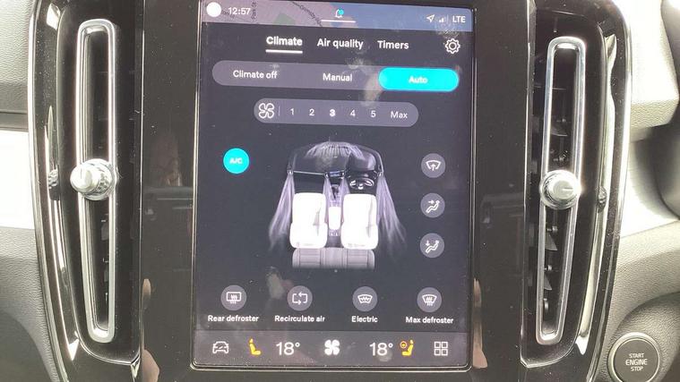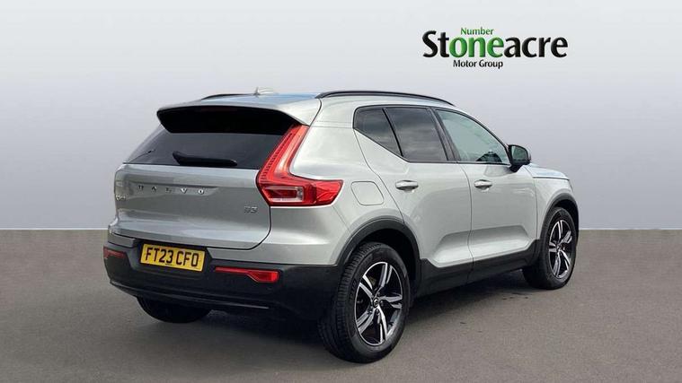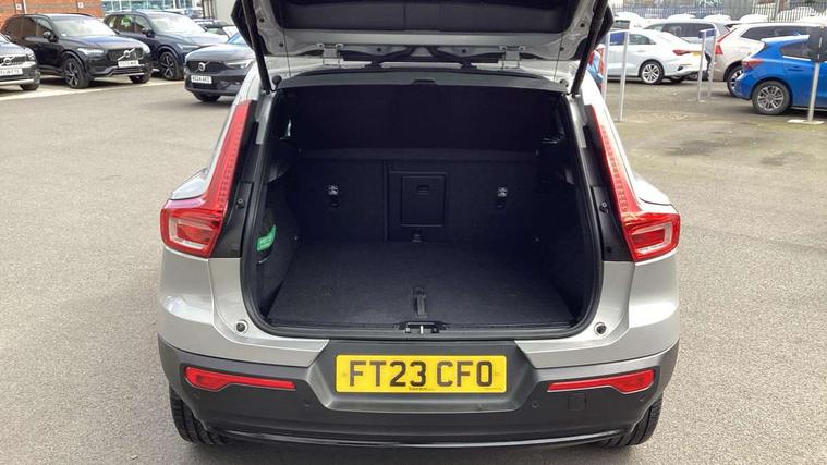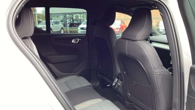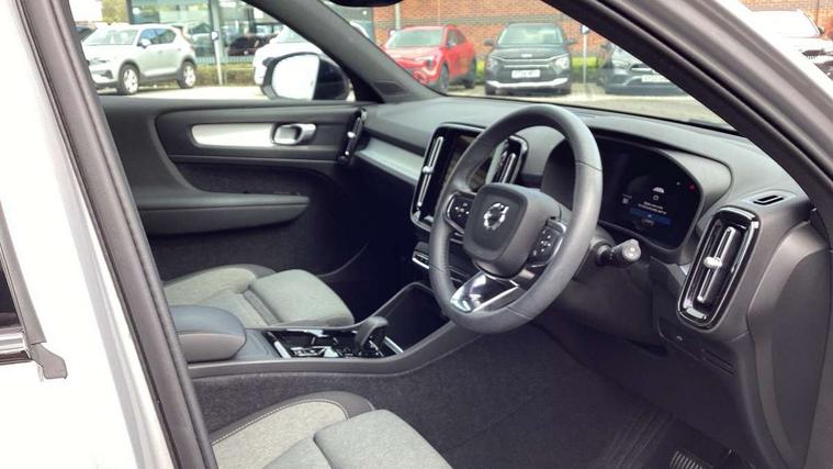 12.3" Progressive Driver Display, 360 degree surround view parking camera with side proximity sensors, 9" centre console portrait touch screen, Adjustable steering wheel force, Bluetooth hands free telephone kit, Cruise control, E-call, Front park assist, Google automatic services - Nav with google maps, apple carplay/android auto, voice recognition with google assistant, Hands free power tailgate, Lane keep assist with driver alert control, Oncoming Lane Mitigation, Rear park assist, Speed limiter, Speed sensitive steering, Wireless/Inductive Mobile Phone Charging, Dynamic chassis, DAB Digital radio, High performance sound, 8 speakers/250W, front USB and 2 rear type C USB, Steering wheel mounted remote controls, Adaptive brake lights with high level LED brake lights, Auto dimming feature for exterior door mirrors, Auto dimming interior mirror, Automatic headlamp levelling, Automatic LED Headlights + Active high beam incorporating daytime running lights, Front aluminium tread plates, Front and rear electric windows, High gloss black front and rear skid plate, High gloss black mesh front grille with high gloss black surround, High gloss black window trim, Home safe and approach lighting, Integrated roof rails in high gloss black, LED front fog lights, Puddle lights, Rain sensor with automatic windscreen wiper activation, Rear side wing doors, Rear wiper, Roof antenna, Roof spoiler, Visible VIN plate, 12V socket in front tunnel console and luggage compartment, 2-Zone electronic climate control with CleanZone air quality system and pollen filter, 3 seat bench in 2nd row, 3 Spoke tailored steering wheel with chrome trim, 60/40 versatile split folding rear seat, A-pillar parking ticket holder, Centre console cupholders and storage, Flexible load floor and grocery bag holder, Floor mats, Front door pocket, front cupholder, ambient front door, rear reading, rear courtesy, instrument panel and tailgate lighting, Front footwell illumination, Front headrests, Front reading light and theatre lighting, Front seat cushion extensions, Front tunnel pocket, Glovebox bag hook, Heated front seats, Height adjustable passenger seat, Height/reach adjustable steering column, High gloss centre tunnel deco, Illuminated glovebox, Illuminated luggage compartment, Illuminated vanity mirrors, Integrated waste bin, Isofix attachments on outer rear seats, Load protection net, Multi directional lumbar support, Power driver seat with memory + exterior mirrors memory, Rear armrest / integral cup holders / storage tray, Rear headrests, Single front passenger seat, Underfloor cargo storage, Climate pack without heated front seats - XC40, 3x3 point rear seatbelts, City safety with steering support with Pedestrian + cyclist + front collision warning with full auto brake and rear auto brake, Drivers knee airbag, Dual stage driver/passenger airbags, Electronic parking brake with auto hold, First aid kit, Front and outer rear seatbelt reminder and pretensioners, Front seats SIPS airbags, Hill descent control, Hill start assist, Inflatable curtain, Passenger airbag cut-off device, Power child locks on rear doors, Road sign information display, Run off Road Mitigation, Run off Road Protection, SIPS (Side Impact Protection System), Slippery road and hazard light alert, Stability and Traction Control with Spin control, Engine Drag Control and Corner Traction Control, Tyre pressure monitoring system, Vehicle deceleration control with Anti-lock Brake System, Electronic Brake Distribution and Emergency Brake Assist, Warning triangle, WHIPS whiplash protection system - front, Anti-theft alarm including immobiliser/volume sensor + level sensor, Key integrated remote control central locking + fuel flap with deadlocking system and auto open/close power windows, Keyless drive includes keyless entry and keyless start, Locking wheel nuts,