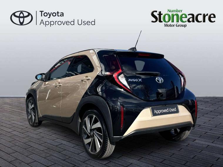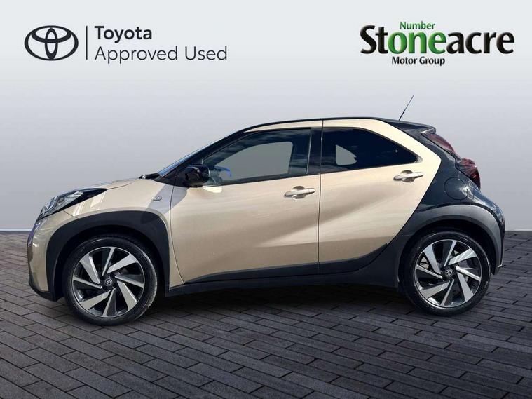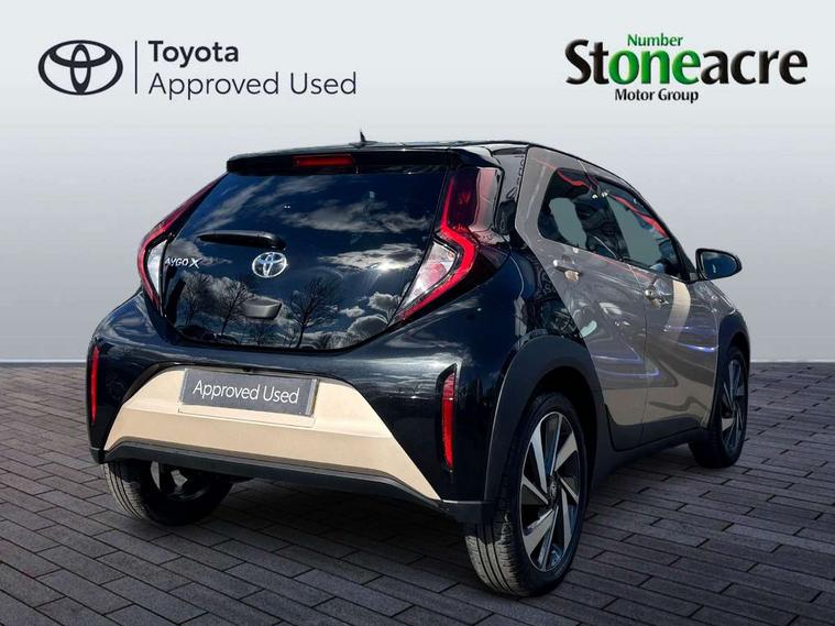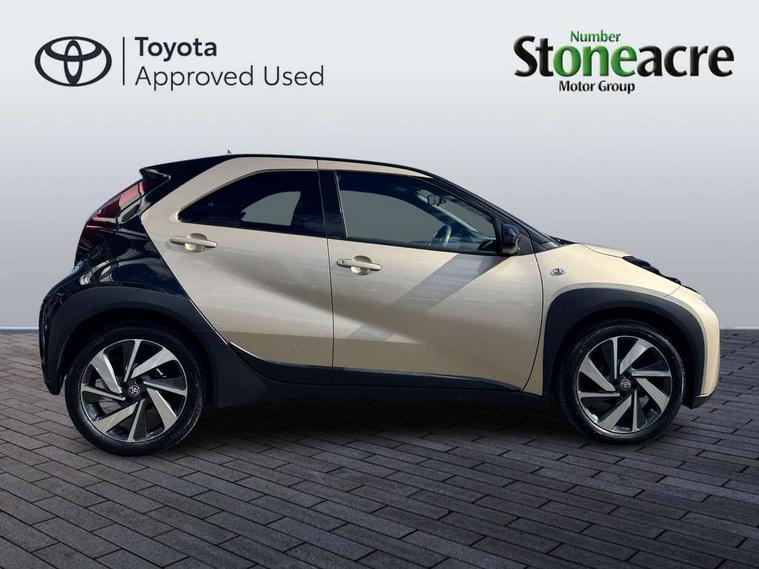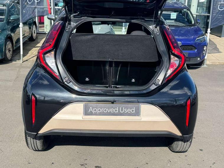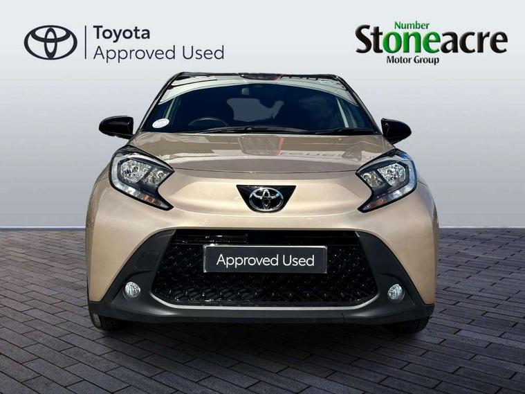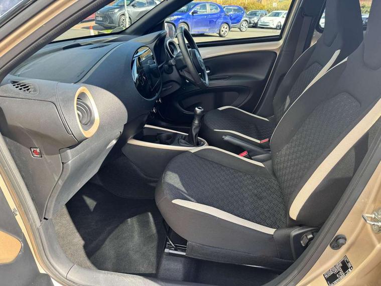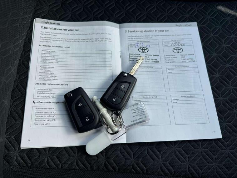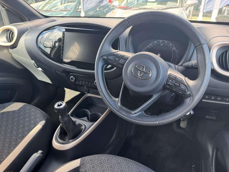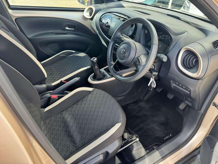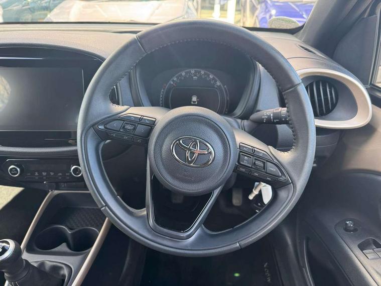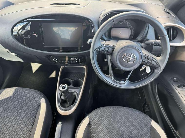 4.2" TFT colour screen, Adjustable speed limiter, Analogue speedometer, Bluetooth connectivity, Digital tachograph, Driver attention alert system, eCall emergency call system, Electric power steering, Intersection turn assist, Key reminder warning, Noise reduction kit, Pre collision system with emergency steering assist, Reversing camera with static guide lines, Smart phone integration with Apple car play/Android Auto, Speed limit display, Start and stop, Vehicle Stability Control (VSC), 4 speakers, 9" HD multimedia display touch screen with Toyota smart connect, DAB digital audio broadcast, USB connector, Auto headlights, Auto wipers, Automatic headlights cut-off, Bicycle towing hook, Black contrast roof, Black side protection mouldings, Black wheel arch mouldings, Body colour door handles, Body coloured front bumper, Boot door scuff plate, Eclipse black rear bumper, Electric heated door mirrors, Follow me home headlights, Front fog lights, Front power windows, Gloss black door mirrors, Gloss black upper front grille, Headlight cut-off reminder, LED daytime running lights, LED front light guide, LED High mounted stop lamp, Manual day/night rear view mirror, Manual headlight levelling, Pagoda roof, Power adjustable door mirrors, Power back door, Privacy glass, Projector halogen headlights, Rain sensor, Rear combination lights LED bulb type, Rear side wing doors, Rear windscreen defogger, Rear windscreen wiper, Short antenna, Variable intermittent windscreen wipers, 12v power outlet - front, 2 seat bench in 2nd row, 3 spoke leather steering wheel, 50/50 split folding rear seat, Adhesive roof headlining, Adjustable speed limiter switch on steering wheel, Audio and telephone switches on steering wheel, Auto air conditioning, Black insert on steering wheel, Black roof lining, Boot light, Centre room light, Chrome interior door handles, Chrome surround on air conditioning buttons, Clean air filter, Console box storage in body color, Fabric upholstery, Floor mats, Front and rear cup holders, Front head rest deco art, Front head restraints, Height adjustable driver seat, Intelligent adaptive cruise control switch on steering wheel, ISOFIX child restraint system on rear seats, Lane departure alert switch on steering wheel, Leather gearshift knob, Manual tilt steering wheel, Manually reclining and sliding driver seat, Manually reclining and sliding front passenger seat, Multimedia switches on steering wheel, Pollen filter, Rear door pockets, Rear head restraints, Satin silver insert on gear shift knob, Single compartment glovebox with lights, Single front passenger seat, Soft tonneau cover, Sun visors with mirror on driver and passenger side, Voice recognition switch on steering wheel, Toyota safety sense pack - Aygo X, Anti lock braking system + Electronic brake force distribution, Child safety door lock, Emergency brake light signal (EBS), Hill start assist control (HAC), Passenger airbag on/off switch, Seat belt reminder for front and rear seats, Supplement restraints system (SRS) - 6 airbags, Traction control, Tyre pressure warning system, Immobiliser, Remote power door locks, Black wheel centre caps, Tyre repair kit,