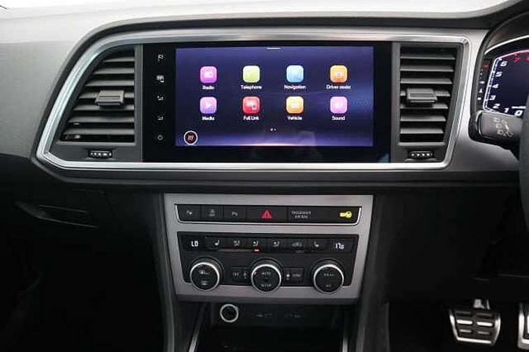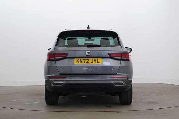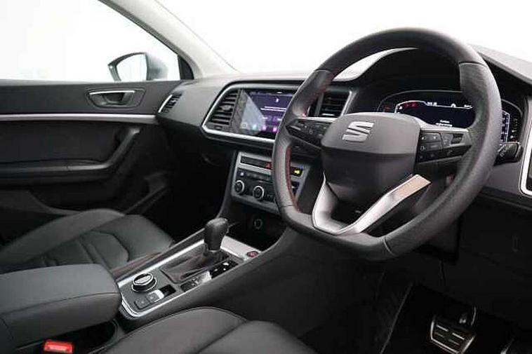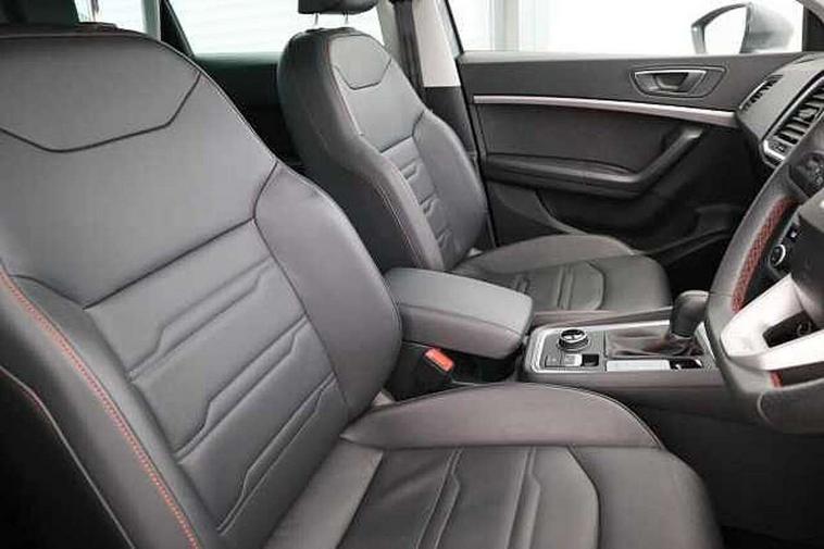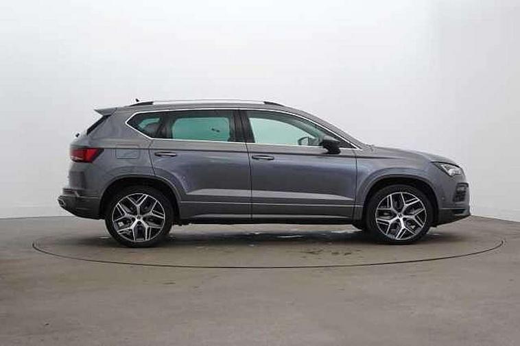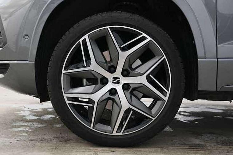 10" Digital cockpit, Cruise control system with speed limiter, E-call, Outside temperature gauge, Progressive power assisted steering, SEAT drive profile with driving experience button - Normal, Sport, Eco and Individual mode, gearshift, steering and throttle response, Self parking functionality (includes front and rear parking sensors), Trip computer, Wireless full link smartphone integration, Wireless phone charger, Steering wheel mounted audio/phone controls, Body colour bumpers, Body coloured wheel arch surrounds, Chrome front grille frame, Chrome roof rails, Chrome side window trim, Dark tinted rear windows, Daytime running lights, Door mirrors with welcome light silhouette, Dynamic headlight range control with self adjusting whilst driving, Electric adjustable/heated/folding door mirrors, Front and rear electric windows, Full LED headlamps with lens and LED front fog lamps with cornering function, Illuminated aluminium front door sill, LED rear tail lights with dynamic indicators, Rear fog lights, Rear side wing doors, Rear spoiler, Rear wash/wipe, Simulated exhaust pipes in chrome frame, 12V socket in front, 3 seat bench in 2nd row, 60/40 split folding rear seat, Aluminium pedals, Dual zone climate control, Electric adjustable driver seat with lumbar adjustment, Front and rear head restraints, Front centre armrest, Front seat back storage pockets, Heated front seats, Height adjustable passenger seats with lumbar adjustment, ISOFIX points in outer rear seats with top tether anchorage points, Leather steering wheel and gear knob, Leather upholstery with front comfort seats, Rear armrest and easy back seat release mechanism from boot, Single front passenger seat, Steering wheel mounted gearshift paddles, Convenience pack - Ateca, Interior lighting pack - Ateca, Navigation system pack with DAB - Ateca, 3x3 point rear seatbelts, ABS, Traction control system (TCS), Electronic stability control (ESC) and Electronic differential lock system (XDS), Airbags - Driver and front passenger airbag with deactivation, front side, two curtain and driver's knee airbags, Electric parking brake with auto hold function, Front and rear seatbelt reminder, Front assist with autonomous emergency braking, Hill hold control, Manual rear child locks, Tiredness recognition system, Traction control, Tyre pressure monitoring system, Alarm, Keyless entry, Locking wheel bolts, Chrome interior detailing, 19" Exclusive machined alloy wheels with decorative inserts 36/7 in cosmo grey,