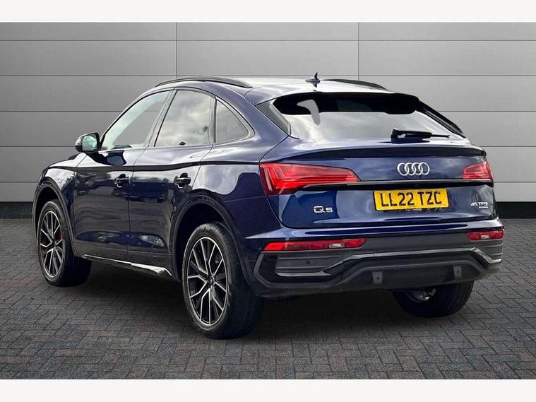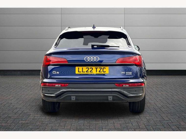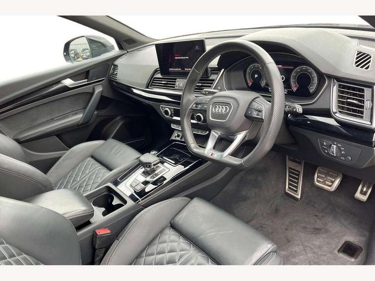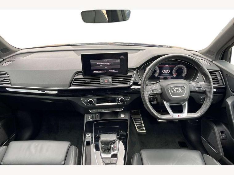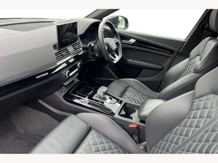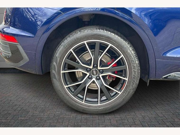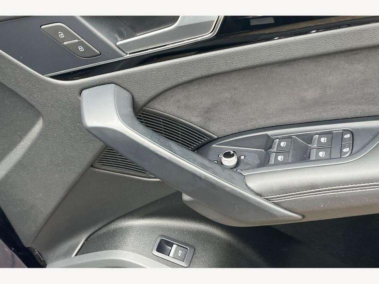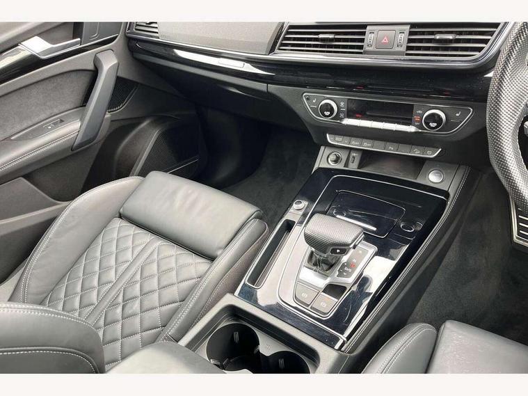 Audi connect safety and service (e-call), Audi connect with Amazon Alexa Integration, Audi drive select, Audi virtual cockpit plus with 12.3" screen and three different layout designs, Audi wireless smartphone interface, Automatic start-stop system with coasting functionality and efficiency programme, Bluetooth interface, Electro - mechanical power assisted steering, MMI navigation plus with 10.1" touch screen, Power tailgate, Reversing camera, Service interval indicator, Voice control system with Audi hotword activation "Hey Audi", 70 litre fuel tank, Quattro on demand, S line sports suspension, DAB Digital radio, Acoustic windscreen, Audi beam with Audi rings logo, Audi matrix LED headlights with dynamic front and rear indicators, Audi rings at front and rear in black, Audi rings decal on rear doors, Auto dimming door mirrors, Auto dimming rear view mirror, Automatic headlights and windscreen wipers, Black door mirrors, Black roof rails, Body colour underbody protection, Chrome plated exhaust trims, Daytime running lights, Door sills in Selenite silver, Electric adjustable/heated/folding door mirrors, Front air inlet surrounds in aluminium, Front and rear electric windows, Headlight washers, High gloss black B pillar trims and triangular rear door trim, High level LED brake light, Rear chrome trim strip below lights, Rear privacy glass and rear side windows, Rear side wing doors, Rear spoiler, Rear wiper, Roof bars, Without model and engine badging at rear, 2 x USB charging port with aux input socket, 3 rear headrests, 4 way electric lumbar support for driver and front passenger, 40:20:40 split folding 3 rear bench seat in 2nd row with rear centre armrest, Black cloth headlining, Comfort front centre armrest, Contrast stitching on seats, steering wheel and gear lever gaiter, Deluxe 3 zone electronic climate control, Electrically adjustable front seats, Fine Nappa leather upholstery with diamond pattern contrast stitching + front sport seats with S embossed logo, Front head restraints, Front/rear floor mats, Gear lever in black leather, Heated front seats, Height/reach adjustable steering column, Illuminated door sill trims with S logo, ISOFIX child seat mounting and top tether, Rear seat bench plus, Removable luggage compartment floor, Single front passenger seat, Stainless steel pedals, Sunvisors with vanity mirrors, Trunk roller cover, Artificial leather pack - Q5, Black styling package - Q5 Edition 1, Extended LED Interior multi coloured Lighting Pack - Q5, 3 point seatbelts on all seats, 6 airbags - Driver, front passenger, curtain and side airbags, Electrically operated child locks on rear doors, Electromechanical parking brake, Electronic stabilisation control including ABS, ASR and EDL, Front and rear brake calipers painted in red, Front passenger airbag deactivation, Hill descent control, Hill hold assist, Multi collision brake assist, Pop-up bonnet for pedestrian protection, Pre sense city, Seat belt force limiter, Seatbelt monitoring, Tyre pressure warning, Warning triangle and first aid kit, Anti theft alarm, Anti-theft wheel bolts, Keyless Go access/ignition system, Remote central locking, Piano black finish inlay,