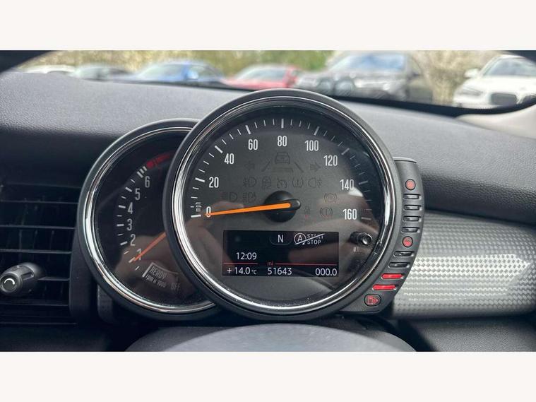 Acoustic seat-belt warning, Brake fluid level warning light, Brake pad wear indicator warning light, DTC - Dynamic traction control, Exterior temperature gauge, Intelligent emergency call, MINI TeleServices, Oil level indicator, On board computer, Push button starter, Service interval indicator, Servotronic PAS, Electronic differential lock, Auxiliary input socket, DAB digital radio module, 2 speed wipers+intermittent wipe, Aluminium tailgate, Anti dazzle mirror, Anti trapping/one touch open close front windows, Body coloured bumpers, Chrome bezels around rear lights and headlights, Chrome door handles, Chrome exhaust tailpipe, Chrome plated radiator grille, Chrome plated trim on bottom edge of window, Chrome strip on lower grille, Electric front windows, Electrically adjustable door mirrors, Flared wheel arches, Follow me home headlights, Green tinted heat insulating glass, Heated door mirrors/heated windscreen washers, Heated rear window with auto timer, Metal look door sill finishers, Rear wiper, Roof spoiler in roof colour, 2 rear head restraints, 4 boot load lashing points, 4 way manually adjustable passenger seat with height, reach, tilt, backrest and headrest, 6-way manually adjustable driver's seat, Active carbon filter, Air recirculation system, Auxiliary socket in centre console storage compartment, Centre console storage, Driver's seat height adjuster, Driver/passenger sunvisors, Easy entry seats, Front and rear cupholders, Front head restraints, Front interior light, Front passenger grab handle, Gear/selector and handbrake in artificial leather, Internal chrome door handles, Isofix child seat preparation, Luggage compartment lighting, Reach + rake adjustable steering column, Rear grab handles, Rear storage trays, Split folding rear seats, Storage compartments in doors, Toolkit in luggage compartment, Vanity mirrors, 3 point seatbelts, ABS/EBD, ASC+T, Cornering brake control (CBC), Crash Sensor - activates hazard/interior lighting + unlocks doors, Driver and passenger airbags, Driver/front passenger side airbags, DSC - Dynamic Stability Control, Fuel cut off safety device, Head airbags, Hill start assist, Manual passenger airbag deactivation function, Seatbelt pretensioners, Tyre pressure warning, Ventilated front disc brakes, Drive away door locking, Locking wheel bolts, Remote central locking/doors+fuel cap+tailgate, Second remote key, Thatcham category 1 alarm + immobiliser,