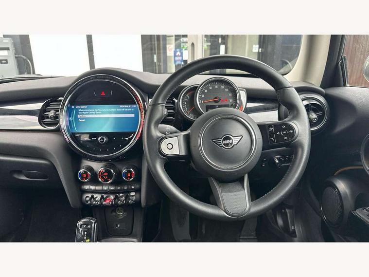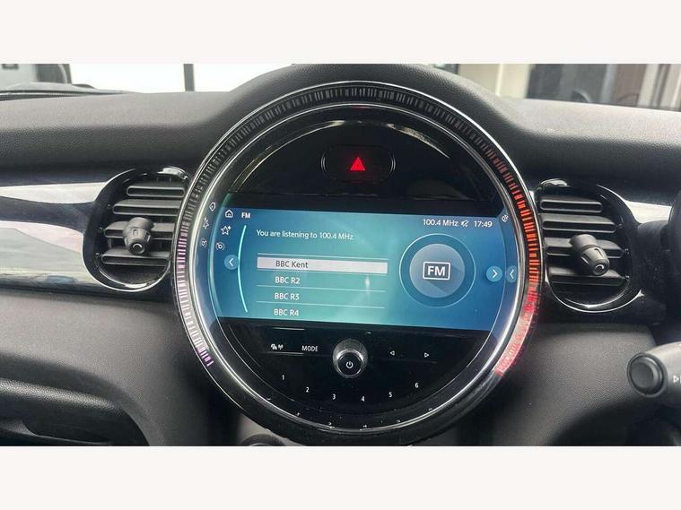 Apple CarPlay, Automatic start/stop function with brake energy recuperation, Compatible mobile phone bluetooth with audio streaming, Cruise control with brake assist, Electro-mechanical speed dependant steering assistance, Flexible car sharing preparation, Instrument cluster, Mini E-call, MINI TeleServices, On board computer, Service interval indicator, Double Vanos system, Fully variable valve control, High precision injection, Performance Control, Steptronic transmission with double clutch, 8.8" touchscreen with LED ring, FM tuner and DAB digital radio, 3rd brake light, Automatic headlight activation switch, Body colour fuel filler cap, Chrome border high gloss black slats radiator grille, Dynamic brake lights, Electric front windows, Exhaust tailpipe on left with chrome finisher, Heated rear window, Heated windscreen washer jets, LED headlight with closed ring and daytime driving lights, Metal door sill strips with MINI imprint, Model logo Cooper on right of tailgate, Rain sensor window wipers, Rear fog lights, Rear LED lights with union jack design, Rear window wiper, Side scuttle panel with integrated indicator, Sun/heat protection glass, White indicator lenses, 12V Accessory socket in centre console, 2 seat bench in 2nd row, 4 lashing eyes in luggage compartment, 60/40 split folding rear seat, Ambient lighting, Carbon black colour line - Knee roll and door armrest, Chrome interior highlights, Cupholders, Front and rear head restraints, Front and rear isofix with front passenger airbag deactivation, Front floor mats in velour, Glove compartment, Height and length steering column adjustment, Interior lighting with 12 different colours across the dashboard, underneath door bezel with illuminated laser-engraved design on central display, Leatherette gearshift lever and handbrake gaiters, LED reading lights, vanity mirror lights, front foot well light and spotlight on front seats, Manual air conditioning, Mechanical seat adjustment - forward/back & backrest for front seats and driver seat height adjust, Multifunction steering wheel, Passenger seat height adjuster, Satellite grey headlining including grab handles and clothes hooks, Single front passenger seat, Sport leather steering wheel with speed limiter and audio/communication controls, Storage compartments in doors, Sunvisors with vanity mirrors, 3 point seatbelts on all four seats, 6 Airbags - front, side, head and seat belt tensioners, Anti-lock braking system (ABS), DSC - Dynamic Stability Control, Front and rear disc brakes, Single tone fanfare horn, Tyre pressure monitoring system, Alarm system with tilt sensor, monitoring doors, bonnet interior and tailgate, Electronic vehicle immobiliser, Start/stop toggle with keyless go, Piano black interior trim, Tool kit, Tyre repair kit,