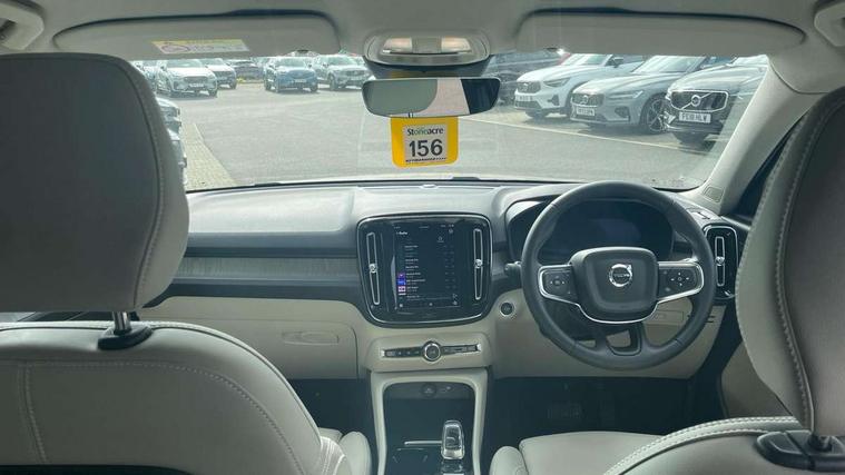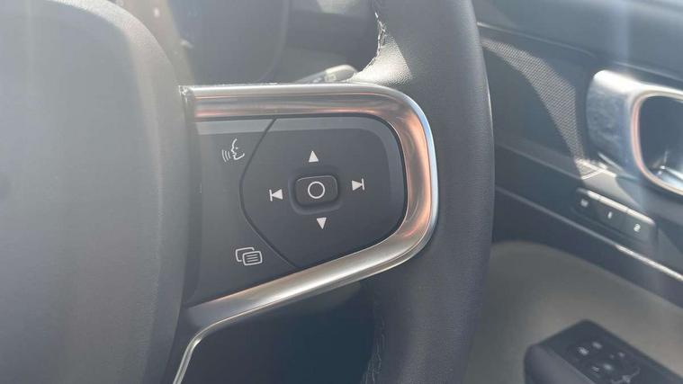 12.3" Progressive Driver Display, 9" centre console portrait touch screen, Adjustable steering wheel force, Bluetooth hands free telephone kit, Cruise control, Driver awareness - blind spot information system with steer assist, cross traffic alert with autobrake, rear collision warning and migitation, E-call, Front park assist, Google automatic services - Nav with google maps, apple carplay/android auto, voice recognition with google assistant, Hands free power tailgate, Lane keep assist with driver alert control, Oncoming Lane Mitigation, Rear park assist, Rear park assist camera, Speed limiter, Speed sensitive steering, Wireless/Inductive Mobile Phone Charging, Dynamic chassis, DAB Digital radio, High performance sound, 8 speakers/250W, front USB and 2 rear type C USB, Steering wheel mounted remote controls, Adaptive brake lights with high level LED brake lights, Auto dimming feature for exterior door mirrors, Auto dimming interior mirror, Automatic headlamp levelling, Automatic LED Headlights + Active high beam incorporating daytime running lights, Front aluminium tread plates, Front and rear electric windows, High gloss black front and rear skid plate, High gloss black mesh front grille with high gloss black surround, High gloss black window trim, Home safe and approach lighting, Integrated roof rails in high gloss black, LED front fog lights, Puddle lights, Rain sensor with automatic windscreen wiper activation, Rear side wing doors, Rear wiper, Roof antenna, Roof spoiler, Visible VIN plate, 12V socket in front tunnel console and luggage compartment, 2-Zone electronic climate control with CleanZone air quality system and pollen filter, 3 seat bench in 2nd row, 3 Spoke tailored steering wheel with chrome trim, 60/40 versatile split folding rear seat, A-pillar parking ticket holder, Ambient front door and instrumental panel lighting, Centre console cupholders and storage, Flexible load floor and grocery bag holder, Floor mats, Front door pocket and front cupholder illumination, Front footwell illumination, Front headrests, Front reading light and theatre lighting, Front seat cushion extensions, Front tunnel pocket, Glovebox bag hook, Heated front seats, Height adjustable passenger seat, Height/reach adjustable steering column, High gloss centre tunnel deco, Illuminated glovebox, Illuminated luggage compartment, Illuminated tailgate, Illuminated vanity mirrors, Integrated waste bin, Isofix attachments on outer rear seats, Load protection net, Multi directional lumbar support, Power driver seat with memory + exterior mirrors memory, Rear armrest / integral cup holders / storage tray, Rear headrests, Rear reading and courtesy lights, Single front passenger seat, Underfloor cargo storage, Climate pack without heated front seats - XC40, 3x3 point rear seatbelts, City safety with steering support with Pedestrian + cyclist + front collision warning with full auto brake and rear auto brake, Drivers knee airbag, Dual stage driver/passenger airbags, Electronic parking brake with auto hold, First aid kit, Front and outer rear seatbelt reminder and pretensioners, Front seats SIPS airbags, Hill descent control, Hill start assist, Inflatable curtain, Passenger airbag cut-off device, Power child locks on rear doors, Road sign information display, Run off Road Mitigation, Run off Road Protection, SIPS (Side Impact Protection System), Slippery road and hazard light alert, Stability and Traction Control with Spin control, Engine Drag Control and Corner Traction Control, Tyre pressure monitoring system, Vehicle deceleration control with Anti-lock Brake System, Electronic Brake Distribution and Emergency Brake Assist, Warning triangle, WHIPS whiplash protection system - front, Anti-theft alarm including immobiliser/volume sensor + level sensor, Key integrated remote control central locking + fuel flap with deadlocking system and auto open/close power windows, Keyless drive includes keyless entry and keyless start, Locking wheel nuts,