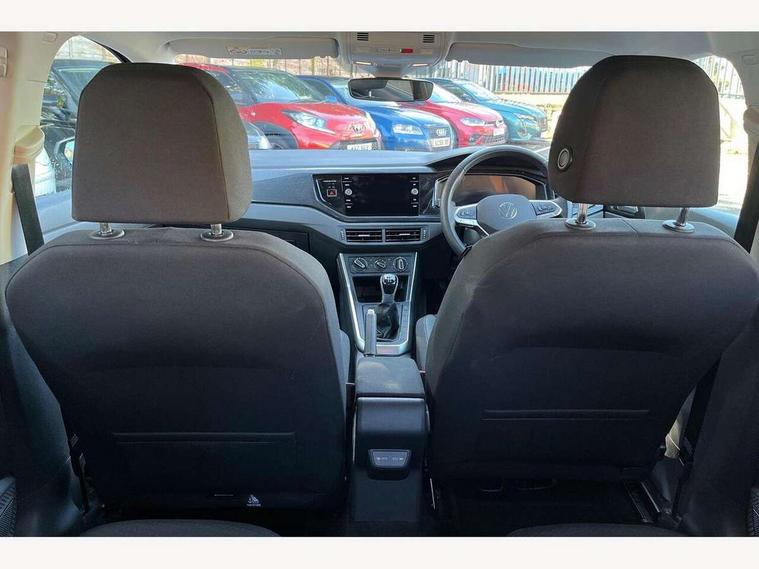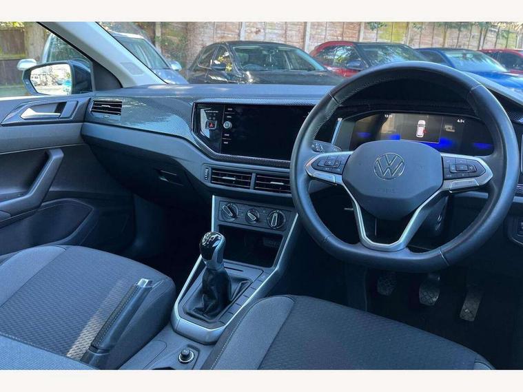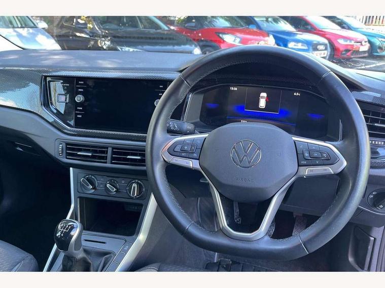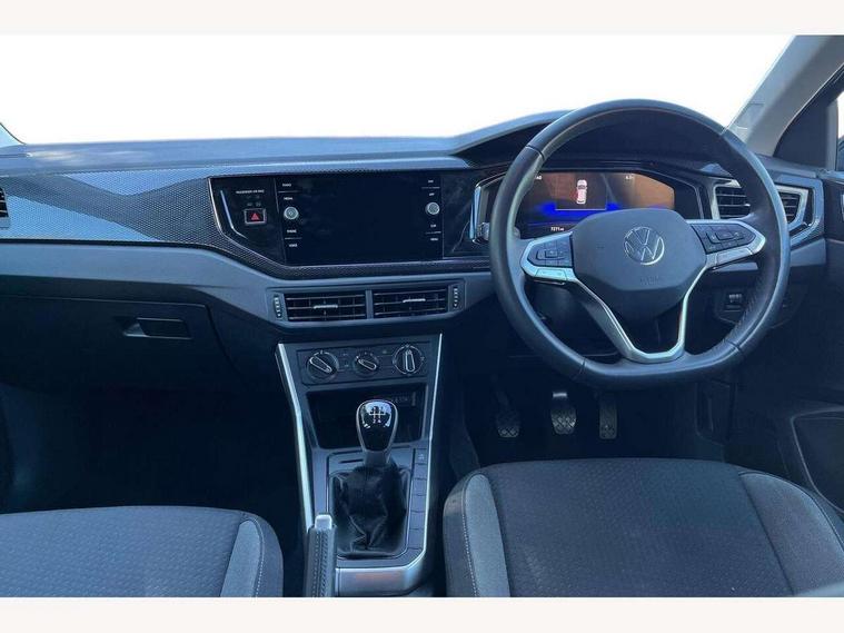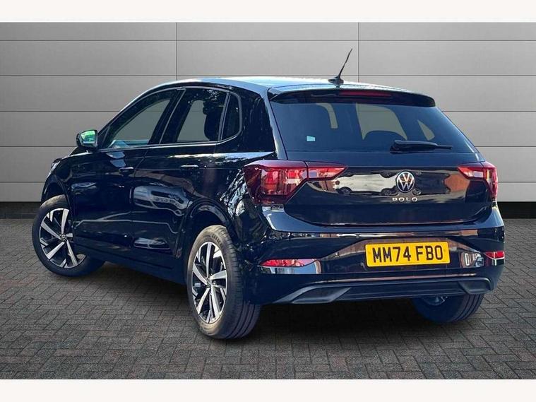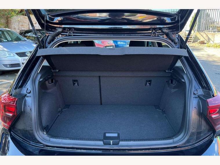 Adaptive cruise control without follow-to-stop and speed limiter, Advanced driver attention and drowsiness monitor, Bluetooth mobile phone interface, Dynamic road sign display, Emergency call service, Multifunction front facing camera for distance control, Park distance control, Power assisted speed sensitive steering, Preparation for navigation system with media and internet package, Preparation for We connect and We connect plus, Rear view camera, Speedo and rev counter, electronic odometer, trip, service interval display and exterior temperature gauge, Standard rear axle, Travel Assist - Lane keeping system and traffic jam assist, Travel assist including emergency assist, Trip computer, Warning signal and warning light for front and rear seatbelts not fastened, Washer fluid level indicator, Wireless app connect, Front wheel drive, Rear shock absorpion, Start-stop system with battery regeneration (recuperation - energy recovery during braking), DAB Digital radio, Diversity antenna for FM reception, Front and rear 6 speakers, Automatic dimming interior rear view mirror, Automatic headlight control with LED separate daytime running lights with coming/leaving home function, Body colour bumpers with chrome inserts, Body colour door handles, Body colour door mirrors, Electric front windows, Engine badge deletion, Headlight range adjustment, Heat insulating and laminated safety glass windshield, LED Headlights, LED rear combination lamps, Power folding adjustable/heated exterior mirrors and front passenger exterior mirror lowering function, Rain sensor, Rear electric windows, Rear fog light, Rear side wing doors, Rear tinted glass from B-pillar backwards approx 65% tinted, Rear windscreen washer and wiper with interval delay, Third brake light, 12V power socket in centre console, 2 front and 2 rear reading lights with switch off delay and dimmer, 2 USB-C ports in the front, 2 USB-C charging sockets on the center console in the rear, 3 rear head restraints, 60/40 split folding rear seat and rear seat bench not split, Ceramique roof lining, Chrome plated radiator grille inserts, air vent surrounds and light switch surrounds, Door and side trim panel, Driver and front passenger seat height adjustment, Driver/passenger sunvisors with illuminated vanity mirrors, Front centre armrest, Front seat backrest storage pockets, Front standard seats, Handbrake lever handle in leather, Hartley/Thomas cloth upholstery, Headliner in recycled material, Isofix child seat preparation easy-fit (for two outer rear seats, and front passenger seat) compatible with I-size, Leather trimmed gear knob, Luggage compartment cover, Luggage compartment lighting, Removable luggage compartment floor, Single front passenger seat, Standard climatic zones, Standard pedal cluster, Three spoke leather wrapped multifunction steering wheel, Light and vision pack - Polo, 3 point height adj front seatbelts + pretensioners, 3 point seat belt for centre rear seat, 3 point seatbelts, outer rear with ECE lable, ABS, Driver and front passenger airbag with front passenger airbag deactivation, Drivers and front passengers safety optimised head restraints, ESC (Electronic stability control) + EDL (Electronic Differntial lock) and ASR (Traction control), Extended and predictive pedestrian/ cyclist protection, Front assist with autonomous emergency braking (for Adaptive Cruise Control ACC up to 130 mph), Front curtain and side airbags with center airbag, Front disc brakes, Hill hold control, Manual child lock in rear doors, Rear drum brakes, Single tone horn, Tyre pressure loss indicator, Alarm with interior protection, Anti-theft alarm system with interior monitoring, backup horn, and towing protection, Anti-theft wheel bolts, Electronic engine immobiliser, Lava stone black gloss/matt decorative inserts in dash and front door panels, 16" Torsby alloy wheels, Low rolling resistance tyres,