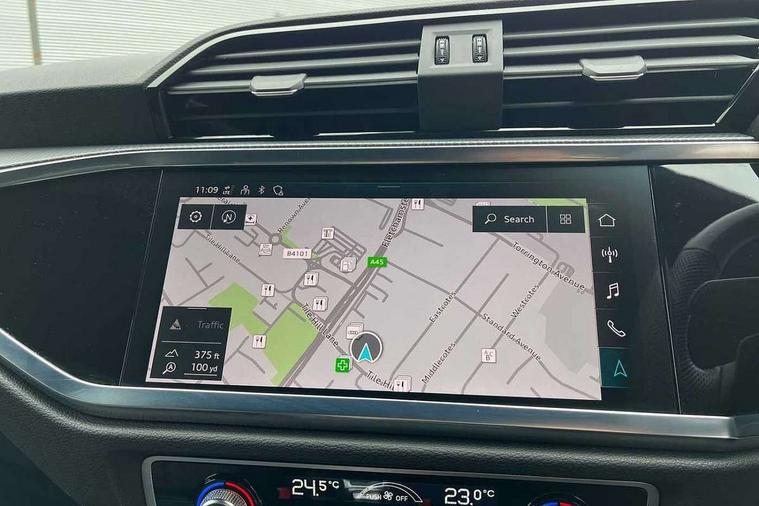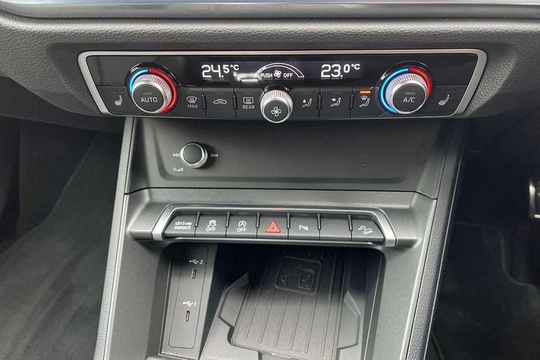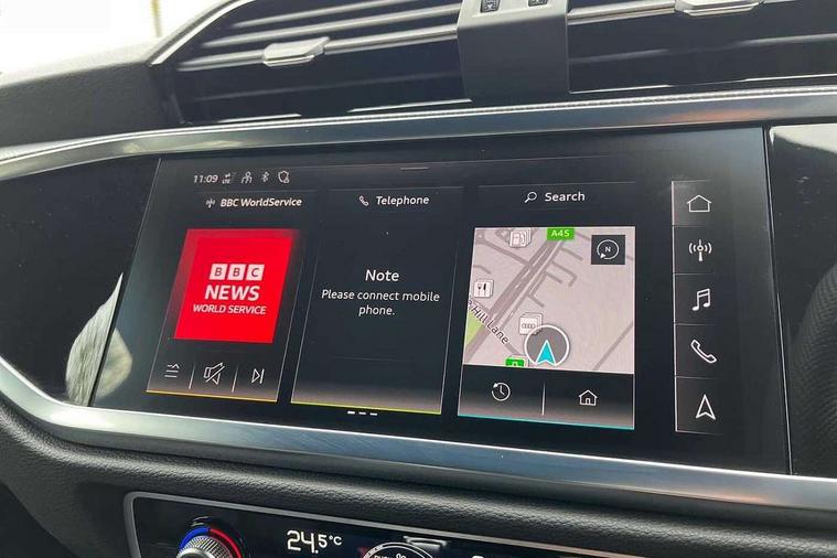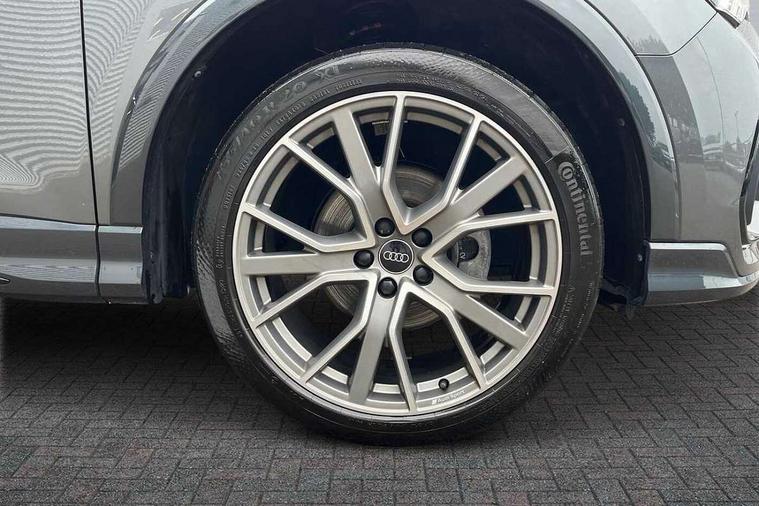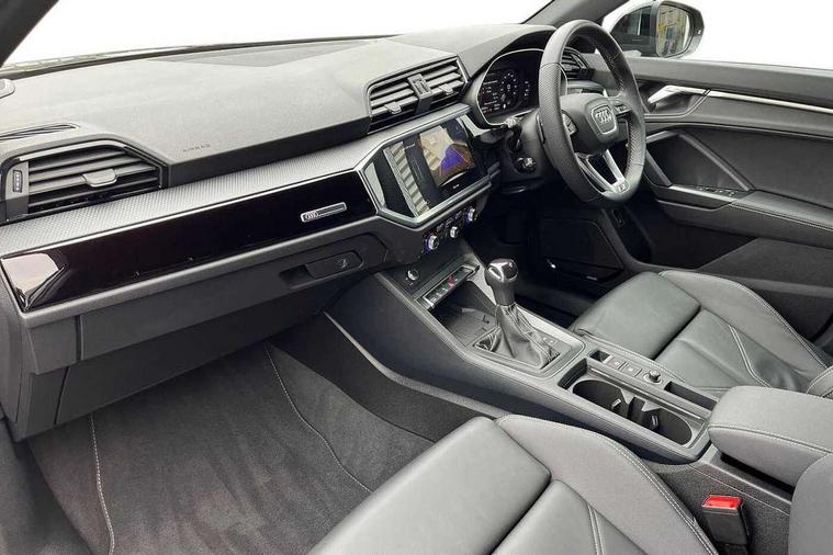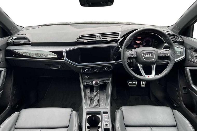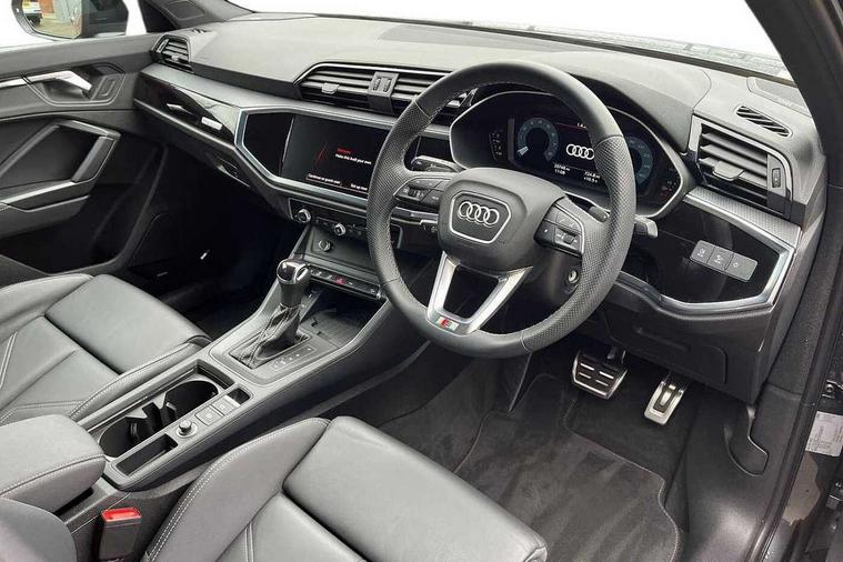 Amazon alexa Integration, Audi drive select, Audi lane departure warning, Audi Virtual Cockpit - 10.25" display, Bluetooth interface, Camera based traffic sign recognition, Legal emergency call, MMI Navigation Plus with high resolution 10.1 inch touchscreen colour display, Power operated tailgate, Progressive steering, Service interval indicator, Smartphone interface includes wireless Apple carplay/Android Auto, Start stop system with recuperation, Voice control system with natural language interaction, Sports suspension, 2 USB-C ports with charge and data functions, 6 passive loudspeakers, DAB digital radio module, Acoustic windscreen, Auto dimming frameless rear view mirror, Black roof rails, Electrically folding, adjustable and heated door mirrors with integrated LED side indicators and kerb view function for passenger side, Front and rear electric windows, Front fog lights, Grille vertical bars in aluminium silver/Matt, High gloss black finish B and C pillars, LED Dynamic rear indicators, LED headlights with LED daytime running lights, LED rear lights, LED third brake light, Privacy glass dark tinted rear and rear-side windows (from B-pillar backwards), Rain and light sensors, Rear diffuser grille in grained matt black, Rear diffuser strip in matt anthracite black, Rear side wing doors, Rear wiper, S line bumpers in contrasting Manhattan grey, Variable front intermittent wipers, 12V socket in rear centre console, 3 seat bench in 2nd row, 40:20:40 folding with manual adjustment for 60:40 forwards/backwards position and backrest angle, Adjustable rear seat bench/backrest with centre armrest and cupholder, Black cloth headlining, Dual zone electronic climate control, Front and rear black floor mats with contrast stitching in rock grey, Front and rear headrests, Front and rear roof module including reading lights, Front centre armrest, Glove compartment lighting, Height and reach adjustable steering wheel, Illuminated door sill trims with S logo, ISOFIX child seat mounting for front passenger with airbag deactivation and outer rear seat including top tether attachment point for outer rear seats, Luggage compartment light, Manual front seats with height adjustment, Perforated leather gearknob, Single front passenger seat, Stainless steel luggage compartment sill finisher, Stainless steel pedals, Ambient lighting pack - Q3, Black styling pack - Q3, Non smoking pack - Q3, 3x3 point rear seatbelts, 6 airbags - Driver, front passenger, curtain and side windows, Audi pre-sense front with pedestrain and cyclist recognition, Electrically operated child locks on rear doors, Electromechanical parking brake, Electronic stabilisation control including ABS, ASR and EDL, Front seatbelt reminder, Hill descent control, Hill hold assist, Pre sense basic, Seatbelt monitoring, Tyre pressure warning, Warning triangle and first aid kit, Anti theft alarm, Anti theft wheel bolts, Immobiliser, Remote central locking, Aluminium look interior elements, Detail dashboard around MMI touch colour display in glass look, black with surround in aluminium look, Leatherette door armrest, Piano black inlay, 19" 5 twin arm design diamond cut audi sport alloy wheels in matt grey look,
