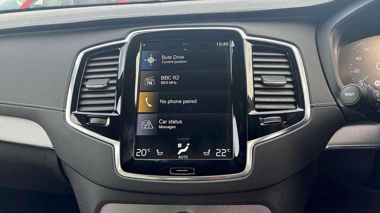 12.3" Active TFT crystal driver's instrument display, 9" centre console portrait touch screen, Adjustable steering wheel force, Bluetooth hands free telephone connection, Drive mode settings, Driver alert control with lane keeping aid, Driver assistance (pilot assist and adaptive cruise control), Driver awareness - Blind spot information system with steer assist, cross traffic alert with autobrake and rear collision warning and mitigation, Emergency call service, Front and rear park assist, Handsfree power tailgate opening and closing, Oncoming Lane Mitigation, Remote engine start, Sensus navigation with European mapping and traffic information, Service interval indicator, Speed limiter, Speed sensitive steering, Trip computer, Voice activated control for key functions, Volvo on call, 8 speed automatic transmission with start/stop + manual change functions, All wheel drive system, Touring chassis, DAB Radio (Digital Audio Broadcasting), Steering wheel remote infotainment controls, Adaptive brake lights with high level LED brake lights, Auto dimming interior + exterior mirrors, Automatic headlight levelling system, Automatic LED Headlights + Active high beam incorporating daytime running lights, Body colour bumpers, Dark tinted windows for rear side windows and cargo area, Dual integrated exhaust pipes with high gloss black surround, Electric folding and heated door mirrors, Front and rear power windows, Heated washer nozzles, High gloss black Deco lower front bumper, High gloss black door mirrors, High gloss black lower rear valance, High gloss black mesh front grille with surround, High gloss black window surround, Home safe and approach lighting, Integrated roof rails in high gloss black, Puddle lights, Rain sensor with automatic windscreen wiper activation, Rear side wing doors, Rear wash/wipe with intermittent wipe setting, Roof antenna, Roof spoiler, Visible VIN plate, 12V socket front tunnel console, rear passenger compartment and cargo area, 2 seat bench in 3rd row, 3 seat bench in 2nd row, A-pillar parking ticket holder, Ambient door and instrument panel lighting, B Pillar ventilation, Bright metal luggage threshold, Cargo divider with grocery bag holder, Centre console cupholders and storage, Charcoal headlining, Driver's side lower dashboard storage compartment, Front and rear door pocket and front cupholder illumination, Front footwell and side step illumination, Front headrests, Front seat cushion extensions, Heated front seats, Height/reach adjustable steering column, Illuminated front and rear tread plates, Illuminated luggage compartment, Illuminated tailgate, Illuminated vanity mirrors + ticket holder, Illumination lockable glovebox compartment, Integrated sun curtains in rear doors, Load protection net, Lower dashboard, tunnel console, Lower door panel in blond, Multicolour theatre lighting, Outboard armrest with cupholder and storage for third row passengers, Power driver seat with multi directional lumbar support and memory for seat and exterior mirrors, Power folding 2nd row headrests, Power passenger seat with multi directional lumbar support and memory, Rear footwell and side step illumination, Rear headrests, Semi automatic load cover, Single front passenger seat, Sports floor mats, Sports leather gear knob, Sports pedals, Underfloor cargo storage, 7 three point seatbelts, City safety includes pedestrian, cyclist and large animal detection and front collision warning with full auto brake, Drivers knee airbag, Dual stage driver/passenger airbags, First aid kit, Front seats SIPS airbags, Hill descent control, Hill start assist, IC (Inflatable Curtains) - Full Length, Passenger airbag cut-off switch, Power parking brake with auto hold function, Road sign information display, Run off Road Mitigation, Run off Road Protection, Seatbelt reminder and pretensioners for all seats, SIPS (Side Impact Protection System), Slippery road and hazard light alert, Stability and Traction Control with Spin control, Engine Drag Control and Corner Traction Control, Tyre pressure monitoring system, Vehicle deceleration control with Anti-lock Brake System, Electronic Brake Distribution and Emergency Brake Assist, Warning triangle, WHIPS whiplash protection system - front, Anti-theft alarm including immobiliser/volume sensor + level sensor, Care key with user defined top speed, Key integrated remote control central locking + fuel flap with deadlocking system and auto open/close power windows, Keyless drive (includes keyless entry and keyless start) with remote tag, Locking wheel nuts, Private locking for glovebox and tailgate, Metal mesh inlays, Tailored Instrument Panel and Door Tops with Contrast Stitching, Tempa spare wheel and jack,