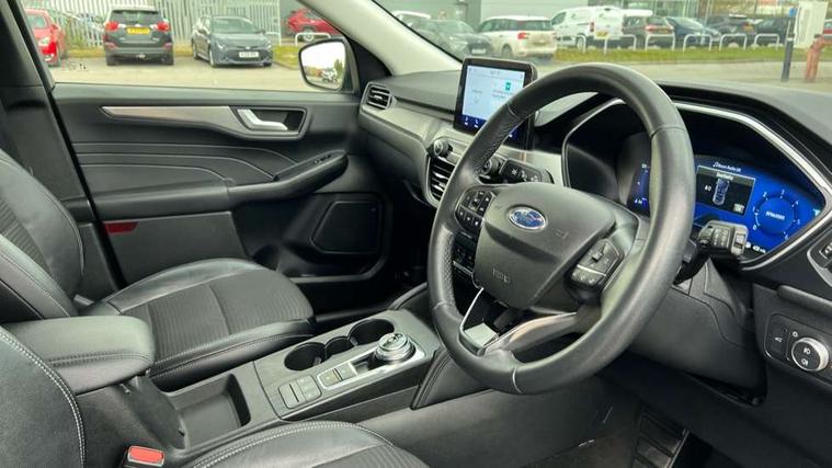 12.3" digital colour instrument cluster, Ford easy fuel, Ford SYNC 3 with 8" TFT LCD touchscreen, App Link, andriod auto/apple carPlay, emergency assistance and navigation with Ford pass connect, Front and rear parking sensors, Hands free power tailgate, Lane keeping aid with lane departure warning, Power assist steering, Rear view camera, Selectable drive modes, Service interval indicator, Standard suspension, Twist beam rear suspension, B&O premium audio system with 10 speakers and subwoofer, 2 USB ports, DAB radio/CD, Auto dimming rear view mirror, Auto headlamps with high and low beam, Auto wipers, Front LED fog lamps, LED daytime running lights, LED rear lights, Power folding heated door mirrors with puddle lights, Power front/rear windows with global close, Privacy glass, Quickclear heated windscreen, Rear spoiler, Silver roof rails, Third brake light, Twin exhausts, 10 way power adjustable drivers seat, 2nd row sliding seats with 60:40 split, 8 way manual passenger seat including lumbar support and height adjust, Ambient lighting, Centre console with electronic parking brake, Dual electronic automatic temperature control, Front and rear floor mats, Front and rear head restraints, Partial premium touch sensico leather upholstery with black cloth inserts, Rear charging point, Sports seats, 3x3 point rear seatbelts, Airbags - front driver/passenger, front and rear curtain, Drivers knee airbag, Electronic stability control (ESC) and ABS, Ford MyKey Gen 2 safety system, Manual child proof rear door locks, Post collision braking, Pre collision assist with autonomous emergency braking, Rear seat Occupancy alert, Tyre pressure monitoring system, Engine immobiliser, Keyless entry and Ford power start button (Keyless start), Locking wheel nuts, Remote powered central double locking doors, Thatcham category 1 alarm,