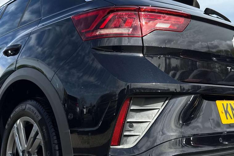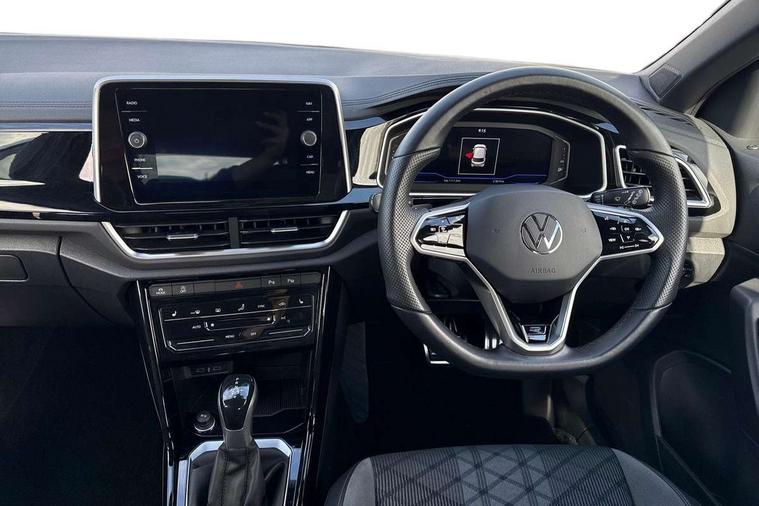 10.25" Digital cockpit pro, Bluetooth mobile phone interface, Driver alert system with fatigue detection, Driver tips and journey analysis, Emergency call service, Lane keeping system Lane Assist, Modified key software - reduce switch off time for key status change to Long no motion, Online services, Park assist including front and rear parking sensors, Service interval indicator, Tailgate/trunk lid release from outside, Think blue trainer driver tips and journey analysis, Warning sound and light for front seatbelts unfastened, Wireless app connect, Battery regeneration during braking, Start/stop function with battery regeneration, Diversity antenna for FM reception, Front and rear 6 speakers, Music playback - MP3, WMA and AAC files, Premium USB cable in choice of either Apple or Android smartphone compatibility, SD card slot, Simultaneous pairing of 2 compatible mobile devices, Title and cover art display, We Connect and We Connect Plus functionality, 3rd brake light, Auto dimming interior rear view mirror, Automatic hazard lights activation under emergency braking, Automatic headlight control with LED separate daytime running lights with coming/leaving home function, Extended roof spoiler, Exterior mirrors aspherical on driver side, convex on front passenger side, External USB type C socket and charging sockets, Front windscreen wiper with intermittent wipe and 4 position delay, Heated rear window, LED Plus headlamps, LED rear combination lamps, LED rear number plate lights, LED tail lamp rear comination lamps, Power windows with comfort operation and circuit breaker, R-Line design body coloured bumpers, Rain sensor, Rear exhaust tailpipe, Rear fog light on one side and reversing lights on both sides, Rear side wing doors, Rear wash/wipe with intermittent wipe setting, Remote electrically foldable door mirrors, puddle lights and reverse activated passenger's door mirror, 12V power socket in centre console, 3 rear head restraints, 3 seat bench in 2nd row, 4 load lashing points in luggage compartment, Air care climatronic air conditoning system with active combination filter and 2-zone temperature control, Black roof lining, Chrome plated radiator grille inserts, air vent surrounds and light switch surrounds, Door and side trim panel with leatherette insert, Drawer under drivers seat, Front + rear carpet mats, Front centre armrest, Front cupholders x 2, Front footwell illumination, Front reading light, Front scuff plates with R logo, Instrument lighting, white adjustable panel illumination, Interior ambient lighting and surround lighting, Interior light delay, Isofix child seat preparation, Leather gearshift handle, Load-through provision with cup holder when folded down ('Unsplit rear seat bench, split folding backrest, with centre armrest), Luggage compartment lighting, Single front passenger seat, Stainless steel pedals, Storage compartment in left and right luggage area, Storage compartment in rear doors, Storage compartments in driver and front passenger doors, Sunvisors with illuminated vanity mirrors, Variable boot floor, height adjustable and removable, Driver assistance pack without proactive passenger protection - T-Roc, 3 point height adj front seatbelts + pretensioners, 3 point seatbelts in outer rear with ECE label, ABS, Child locks on rear doors, Driver and front passenger airbag with front passenger airbag deactivation, Driver and front passenger safety-optimised head restraints, Drivers seatbelt reminder, Electronic parking brake, Electronic Stability Control (ESC) inc EDL (Electronic Differential Lock) and ASR (Traction Control), Front and rear passengers curtain airbag system including front side airbags, Front assist with city emergency braking and pedestrian monitoring, Front seat side impact airbags, Hill start assist, Predictive pedestrian protection, Rear disc brakes, Single tone horn, Tyre pressure loss indicator, Volkswagen roadside assistance, Alarm with interior protection, Anti-theft alarm system with interior monitoring, backup horn, and towing protection, Remote central locking with SAFELOCK, radio remote control with 2 remote control folding keys, Trims for alloy wheels,