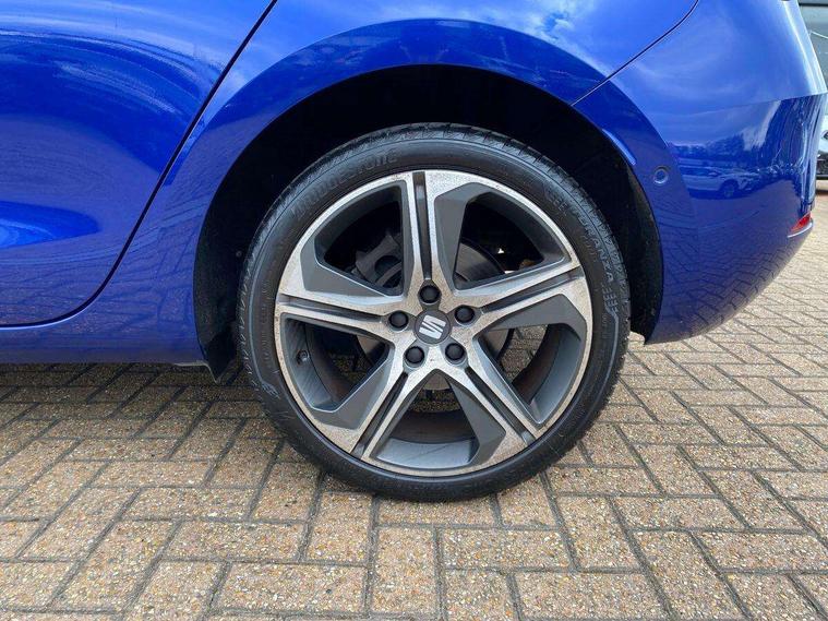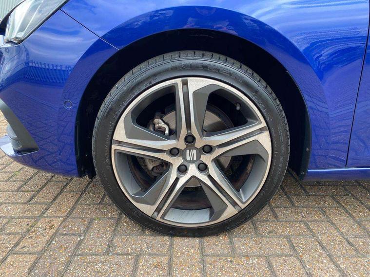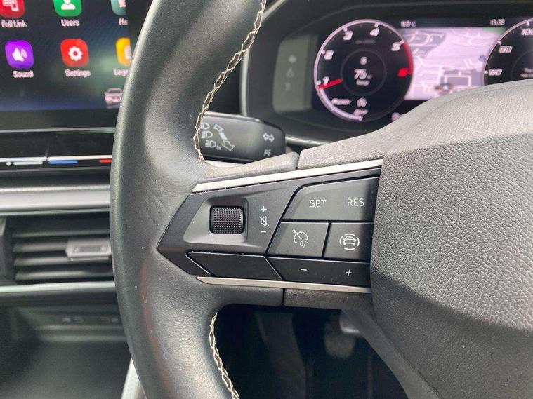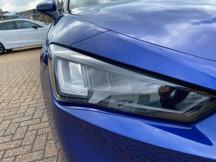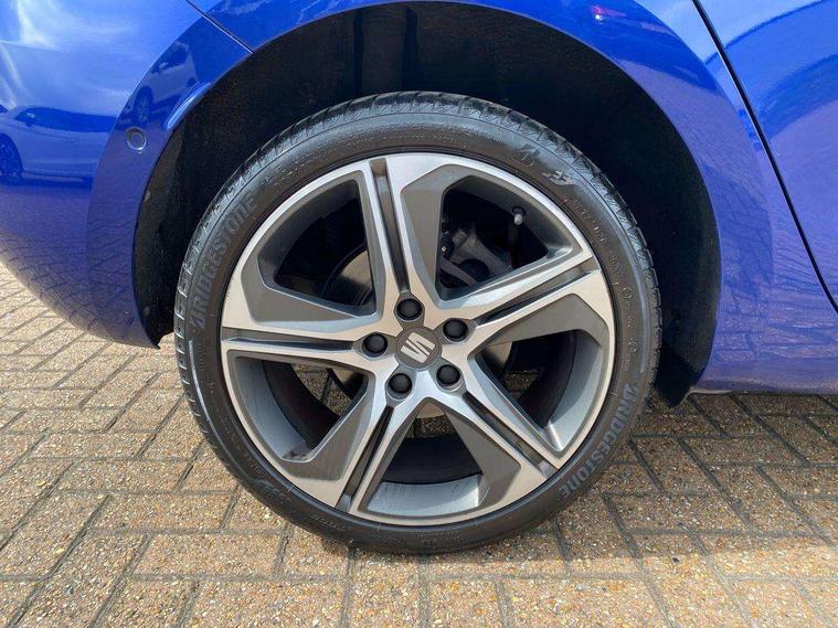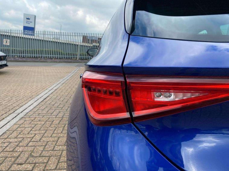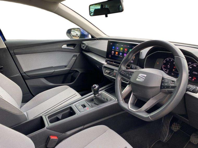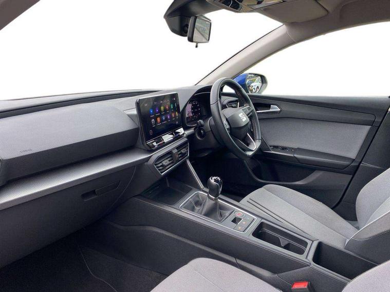 Cruise control with speed limiter, Digital cockpit, Front assist with forward collision warning braking reaction to vehicles, pedestrians and cyclists, Full link smartphone integration with Mirror Link, wireless Apple CarPlay and wired Google Android Auto, Lane keeping system, Lockable tailgate, Park assist (inc front/rear parking sensors), Power assisted speed sensitive electro-mechanical steering, RPM, trip computer, outside temp gauge, instrument light brightness, low fuel warning light, lights on reminder, gearshift indicator, Service interval indicator, Start/stop system with regenerative braking, Standard suspension, XDS electronic differential lock and dynamic traction support, Auxiliary input socket, Body colour door handles, Body coloured bumpers, Body coloured exterior mirrors with integrated LED indicators, Dark tinted rear windows, Electric front/rear windows, Electrically adjustable and heated door mirrors, LED front fog lamps with cornering function, LED headlights and LED tail lights, LED rear fog lamp, Manual dimming rear view mirror, Rear wash/wipe, Separate daytime running light with automatic headlight control, 12v power point in centre console, 60/40 split rear bench seat, Air conditioning, Cloth upholstery, Driver seat lumbar adjustment, Driver/passenger manual seat height adjustment, Dust/pollen filter, Folding boot cover, Front and rear height adjustable headrests, Front and rear reading lights X 4, Front seatback storage pockets, Height/reach adjust steering wheel, Interior lighting with LED lighting in sunvisor, glovebox and rear headlining, ISOFIX points in outer rear seats with top tether anchorage points, Leather flat bottomed, perforated steering wheel and leather gearstick, Luggage tie-down hooks, Sunvisors with covered illuminated mirror, Media system plus with navigation - Leon SE, 3 point seatbelts on all rear seats, ABS, Brake control system - ESC and brake booster, Child proof door locks, Driver and front passenger airbags with front passenger airbag de-activation, front side and curtain airbags, Electronic parking brake, Extended safety system - seat belt tensioner, window closure and hazard lights, Hill hold control, Rear disc brakes, Seat belt reminder for front and rear seats, Tiredness recognition system, driver alert system, Tyre pressure monitoring system, Anti theft alarm system with interior monitoring in cab, backup horn and towing protection, KESSY Go (Keyless start), Locking wheel bolts, Chrome interior detailing, 17" Dynamic tri-spoke alloy wheels with 91W tyres, Tool kit,