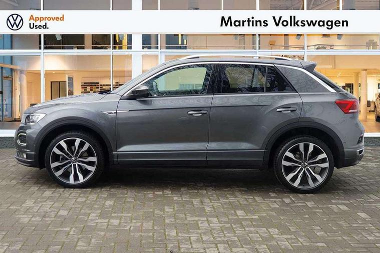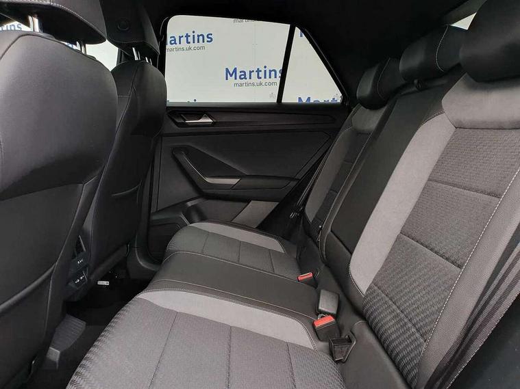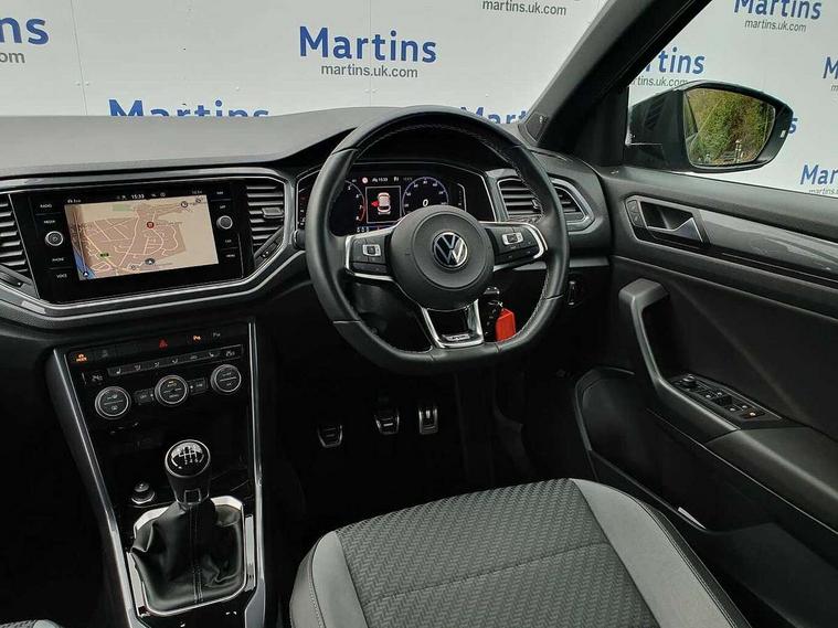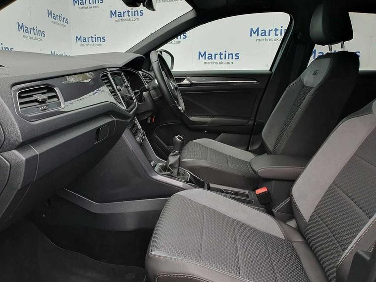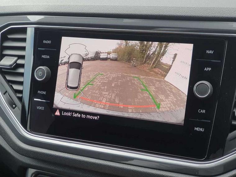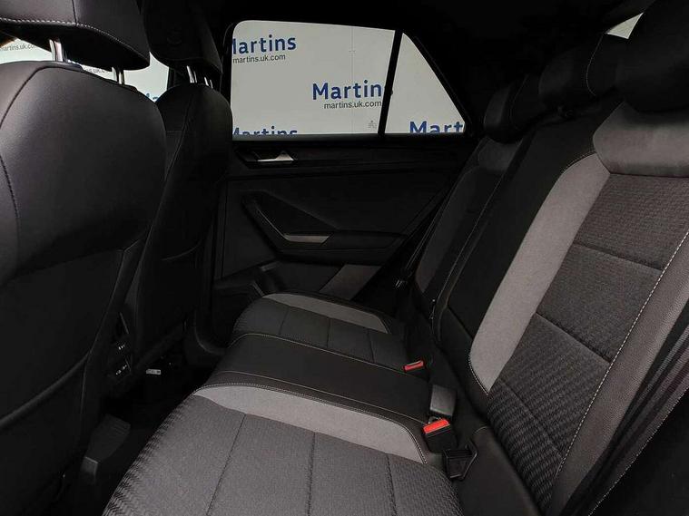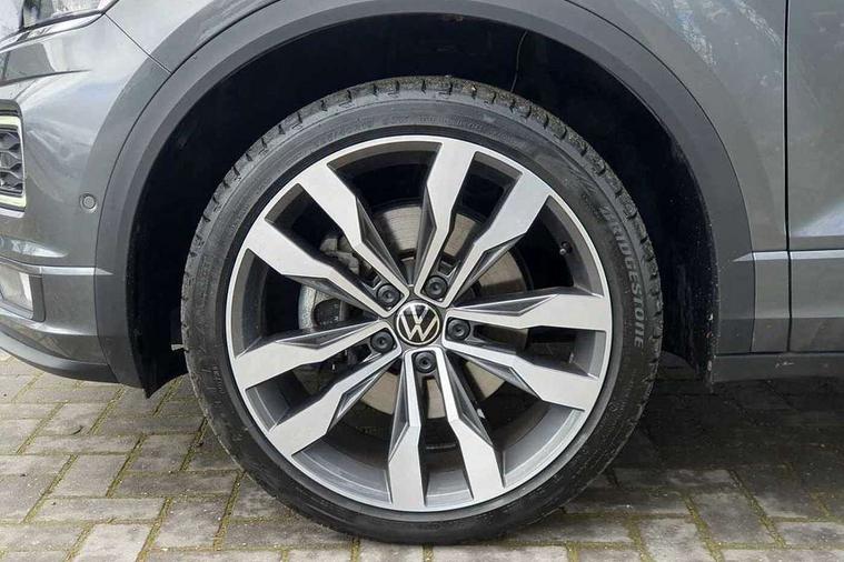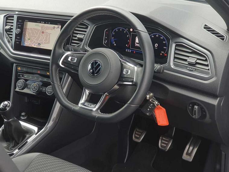 'Lights On' Reminder warning buzzer, Adaptive cruise control, Bluetooth telephone and audio connection for compatible devices, Car information display, Digital Cockpit Pro - Active info display, Driver alert system with audible and visual fatigue detection system, Driver tips and journey analysis, Dusk sensor, Emergency call service, Lane assist with warning text instrument cluster, Modified key software - reduce switch off time for key status change to Long no motion, Multifunction camera, Multifunction computer with visual gear change recommendation for fuel consumption, Navigation system discover media including streaming and internet, Service interval indicator, Think blue trainer driver tips and journey analysis, Traffic sign recognition, Voice activation, Warning sound and light for front seatbelts unfastened, Wireless app connect for apple carPlay, Battery regeneration during braking, Rear shock absorption for sports version, Start/stop function with battery regeneration, DAB Digital radio, Disk brakes in front, Diversity antenna for FM reception, Music playback - MP3, WMA and AAC files, Premium USB cable in choice of either Apple or Android smartphone compatibility, SD card slot, Simultaneous pairing of 2 compatible mobile devices, SMS functionality - read, compose and send SMS messages using touch-screen display, Storage compartment with longitudinal and height adjustable in armrest and two rear air vents, Three route options - Fast, Short, Eco, Title and cover art display, USB-C Interface and USB charging socket, Auto dimming interior rear view mirror, Automatic coming/leaving home lighting function and daytime running lights, Automatic hazard lights activation under emergency braking, Black grained lower door protectors, Body colored door lower parts, Body colour door handles, Body colour rear roof spoiler, Chrome effect left and right trapezoid exhaust tailpipe fascia surround, Chrome plated moldings, Chrome plated radiator grille inserts, air vent surrounds and light switch surrounds, Chrome plated roof rails, Chrome trim on upper and lower radiator grille, Dynamic headlight range control with self adjusting whilst driving, Electrically foldable, adjustable and heated door mirrors with puddle lights and reverse activated kerb-view adjustment on passenger's door mirror, External USB type C socket and charging sockets, Front and rear electric windows, Front fog lights with static cornering function, Front windscreen wiper with intermittent wipe and 4 position delay, Fully galvanised body, Heated rear window, Heated windscreen washer jets, High level 3rd brake light, LED darkened rear light clusters, LED headlamps with automatic range adjustment and unique signature LED separate daytime running lights, LED rear number plate lights, LED tail lamp rear comination lamps, Privacy glass, R-Line design body coloured bumpers, Rain sensor, Rear tinted glass from B-pillar backwards approx 65% tinted, Rear wash/wipe with intermittent wipe setting, Volkswagen roundel, 12V socket in centre console storage area, 3 rear head restraints, 4 load lashing points in luggage compartment, Aluminium pedals, Black roof lining and sun visors, Branded points of interest, Carbon flag cloth upholstery, Climate control - 2 zone electronic air conditioning with automatic air recirculation and allergy filter, Door and side trim panel, Door and side trim panel in foam film, insert in leatherette, Drawer under drivers seat, Front + rear carpet mats, Front centre armrest, Front cupholders x 2, Front seat back storage pockets, Front sports seats with R-Line logo on seat backrest, Glovebox, Heated front seats, Height adjustable front seats, Height/reach adjust steering wheel, Instrument lighting, white adjustable panel illumination, Interior light delay, Interior light in footwell, Isofix easy fit child seat preparation for 2 outer rear seats, LED interior light with switch off delay/dimmer and 2 front/rear LED reading lights, Load through provision with single cup holder when folded down, Luggage compartment cover, removable, Luggage compartment lighting, R Line badge, Scuff plates in door apertures, Split folding rear seat backrests with centre armrest, Stainless steel pedals, Storage compartment in left and right luggage area, Storage compartment in rear doors, Storage compartments in driver and front passenger doors, Sunvisors with illuminated vanity mirrors, Unique R Line door sill protectors, White ambient lighting, R line styling pack - T-Roc, Winter pack - T-Roc, 3 rear three point seatbelts, ABS, Curtain airbags, Driver and front passenger safety-optimised head restraints, Drivers and front passengers airbags with passengers deactivation switch, Drivers seatbelt reminder, Electronic parking brake with auto hold, Electronic stability control (ESC) includes ASR, EDL, EDTC and trailer stabilisation function, Front assist with city emergency braking and pedestrian monitoring, Front seat side impact airbags, Hill start assist, Predictive pedestrian protection, Rigid safety cell with front and rear crumple zones, Single tone horn, Three point height adjust front seatbelts + pretensioners, Tyre pressure loss indicator, Ventilated front and rear disc brakes, Volkswagen roadside assistance, Alarm with remote central locking and interior protection, Electronic engine immobiliser, Remote central locking with SAFELOCK, radio remote control with 2 remote control folding keys, Shadow grey decorative inserts in dash, centre console and door panel, 19" Suzuka alloy wheels with low rolling resistance tyres and anti wheel bolts,
