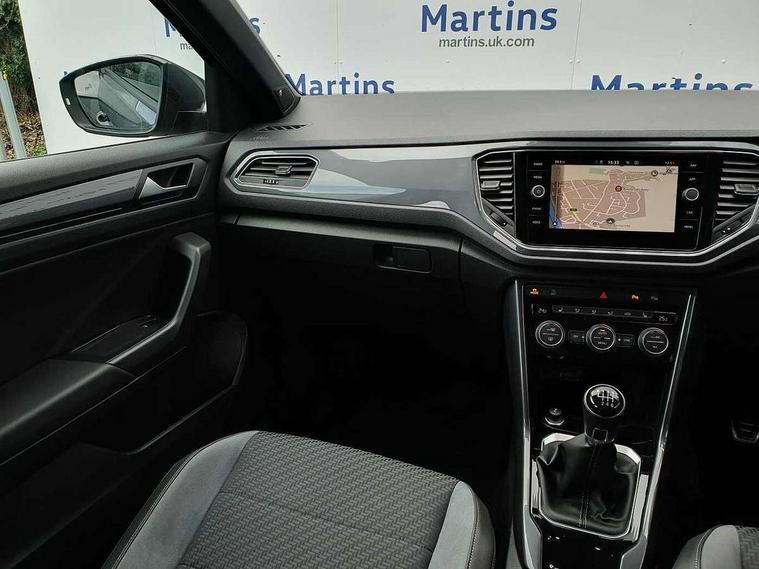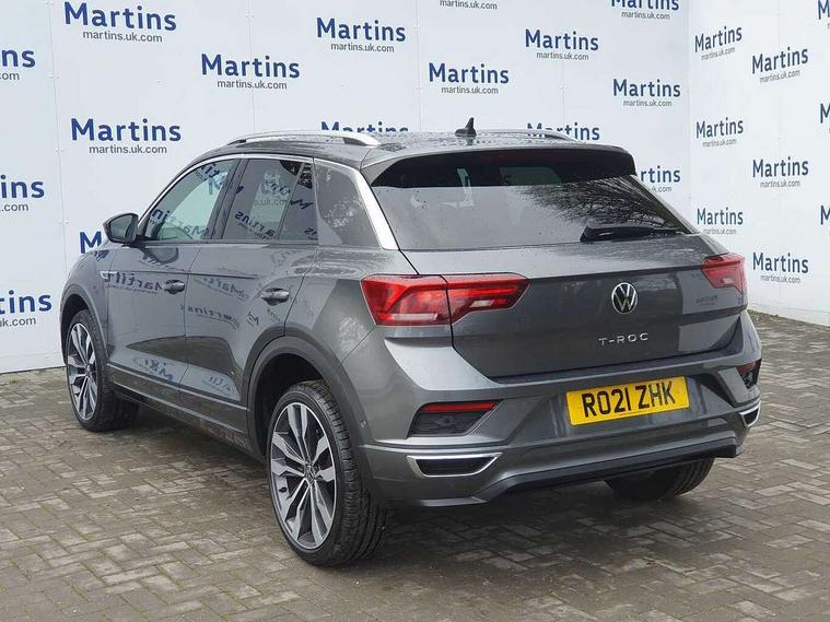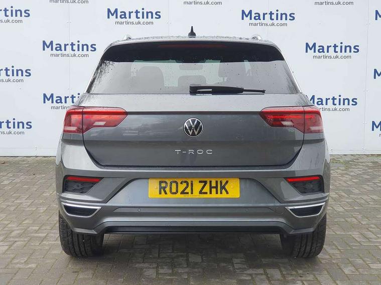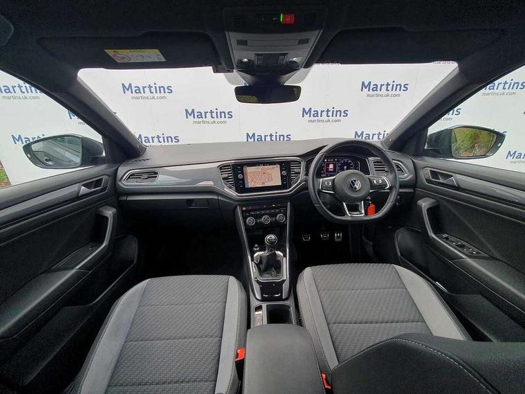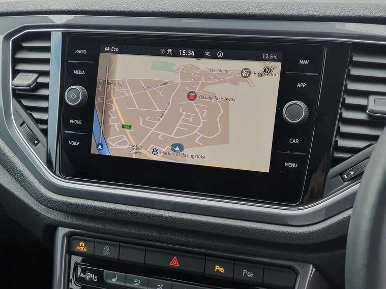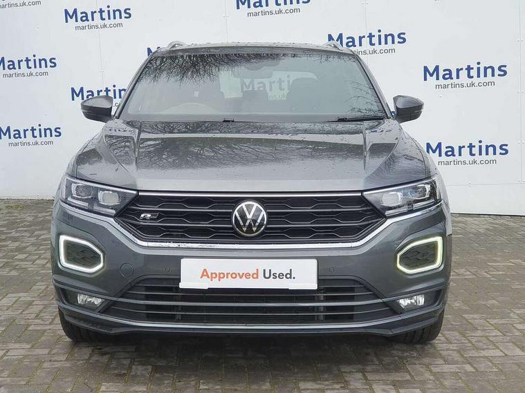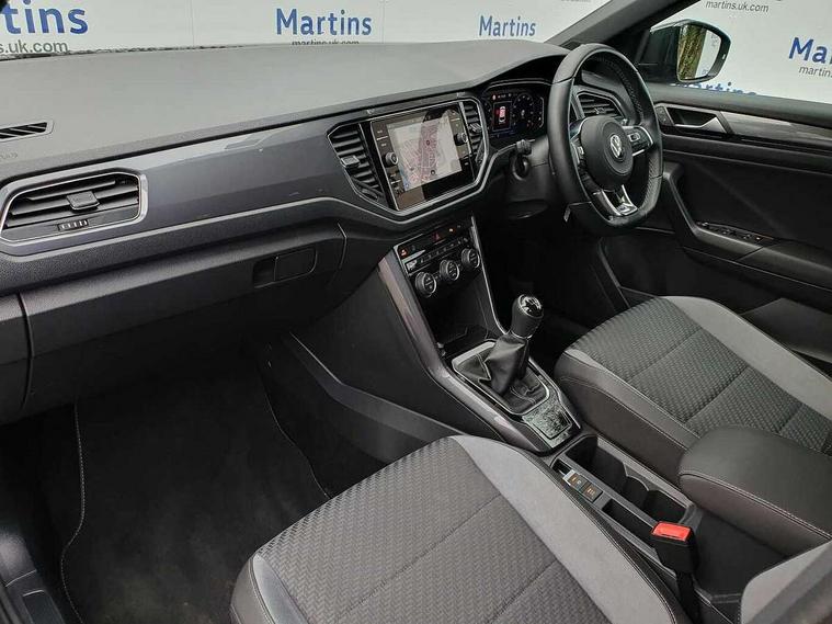 'Lights On' Reminder warning buzzer, Adaptive cruise control, Bluetooth telephone and audio connection for compatible devices, Car information display, Digital Cockpit Pro - Active info display, Driver alert system with audible and visual fatigue detection system, Driver tips and journey analysis, Dusk sensor, Emergency call service, Lane assist with warning text instrument cluster, Modified key software - reduce switch off time for key status change to Long no motion, Multifunction camera, Multifunction computer with visual gear change recommendation for fuel consumption, Navigation system discover media including streaming and internet, Service interval indicator, Think blue trainer driver tips and journey analysis, Traffic sign recognition, Voice activation, Warning sound and light for front seatbelts unfastened, Wireless app connect for apple carPlay, Battery regeneration during braking, Rear shock absorption for sports version, Start/stop function with battery regeneration, DAB Digital radio, Disk brakes in front, Diversity antenna for FM reception, Music playback - MP3, WMA and AAC files, Premium USB cable in choice of either Apple or Android smartphone compatibility, SD card slot, Simultaneous pairing of 2 compatible mobile devices, SMS functionality - read, compose and send SMS messages using touch-screen display, Storage compartment with longitudinal and height adjustable in armrest and two rear air vents, Three route options - Fast, Short, Eco, Title and cover art display, USB-C Interface and USB charging socket, Auto dimming interior rear view mirror, Automatic coming/leaving home lighting function and daytime running lights, Automatic hazard lights activation under emergency braking, Black grained lower door protectors, Body colored door lower parts, Body colour door handles, Body colour rear roof spoiler, Chrome effect left and right trapezoid exhaust tailpipe fascia surround, Chrome plated moldings, Chrome plated radiator grille inserts, air vent surrounds and light switch surrounds, Chrome plated roof rails, Chrome trim on upper and lower radiator grille, Dynamic headlight range control with self adjusting whilst driving, Electrically foldable, adjustable and heated door mirrors with puddle lights and reverse activated kerb-view adjustment on passenger's door mirror, External USB type C socket and charging sockets, Front and rear electric windows, Front fog lights with static cornering function, Front windscreen wiper with intermittent wipe and 4 position delay, Fully galvanised body, Heated rear window, Heated windscreen washer jets, High level 3rd brake light, LED darkened rear light clusters, LED headlamps with automatic range adjustment and unique signature LED separate daytime running lights, LED rear number plate lights, LED tail lamp rear comination lamps, Privacy glass, R-Line design body coloured bumpers, Rain sensor, Rear tinted glass from B-pillar backwards approx 65% tinted, Rear wash/wipe with intermittent wipe setting, Volkswagen roundel, 12V socket in centre console storage area, 3 rear head restraints, 4 load lashing points in luggage compartment, Aluminium pedals, Black roof lining and sun visors, Branded points of interest, Carbon flag cloth upholstery, Climate control - 2 zone electronic air conditioning with automatic air recirculation and allergy filter, Door and side trim panel, Door and side trim panel in foam film, insert in leatherette, Drawer under drivers seat, Front + rear carpet mats, Front centre armrest, Front cupholders x 2, Front seat back storage pockets, Front sports seats with R-Line logo on seat backrest, Glovebox, Heated front seats, Height adjustable front seats, Height/reach adjust steering wheel, Instrument lighting, white adjustable panel illumination, Interior light delay, Interior light in footwell, Isofix easy fit child seat preparation for 2 outer rear seats, LED interior light with switch off delay/dimmer and 2 front/rear LED reading lights, Load through provision with single cup holder when folded down, Luggage compartment cover, removable, Luggage compartment lighting, R Line badge, Scuff plates in door apertures, Split folding rear seat backrests with centre armrest, Stainless steel pedals, Storage compartment in left and right luggage area, Storage compartment in rear doors, Storage compartments in driver and front passenger doors, Sunvisors with illuminated vanity mirrors, Unique R Line door sill protectors, White ambient lighting, R line styling pack - T-Roc, Winter pack - T-Roc, 3 rear three point seatbelts, ABS, Curtain airbags, Driver and front passenger safety-optimised head restraints, Drivers and front passengers airbags with passengers deactivation switch, Drivers seatbelt reminder, Electronic parking brake with auto hold, Electronic stability control (ESC) includes ASR, EDL, EDTC and trailer stabilisation function, Front assist with city emergency braking and pedestrian monitoring, Front seat side impact airbags, Hill start assist, Predictive pedestrian protection, Rigid safety cell with front and rear crumple zones, Single tone horn, Three point height adjust front seatbelts + pretensioners, Tyre pressure loss indicator, Ventilated front and rear disc brakes, Volkswagen roadside assistance, Alarm with remote central locking and interior protection, Electronic engine immobiliser, Remote central locking with SAFELOCK, radio remote control with 2 remote control folding keys, Shadow grey decorative inserts in dash, centre console and door panel, 19" Suzuka alloy wheels with low rolling resistance tyres and anti wheel bolts,