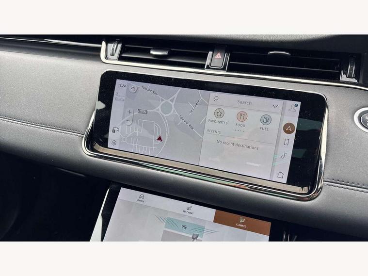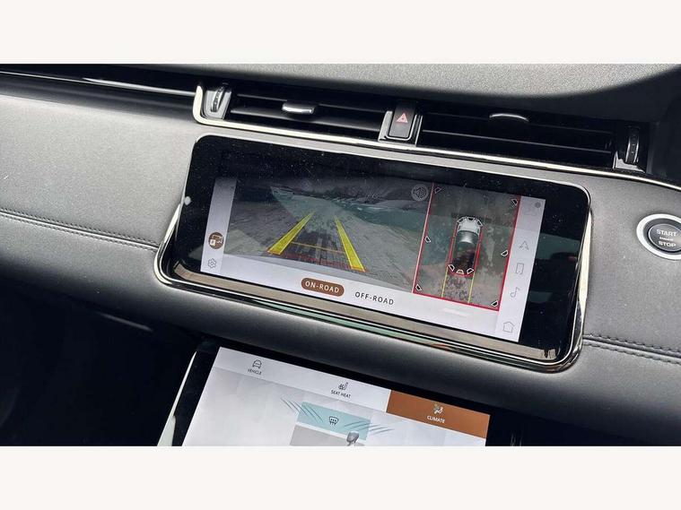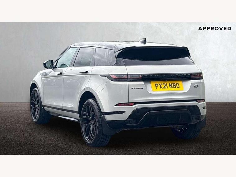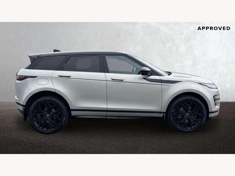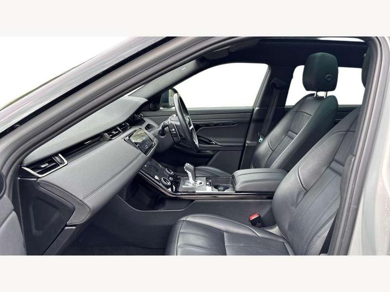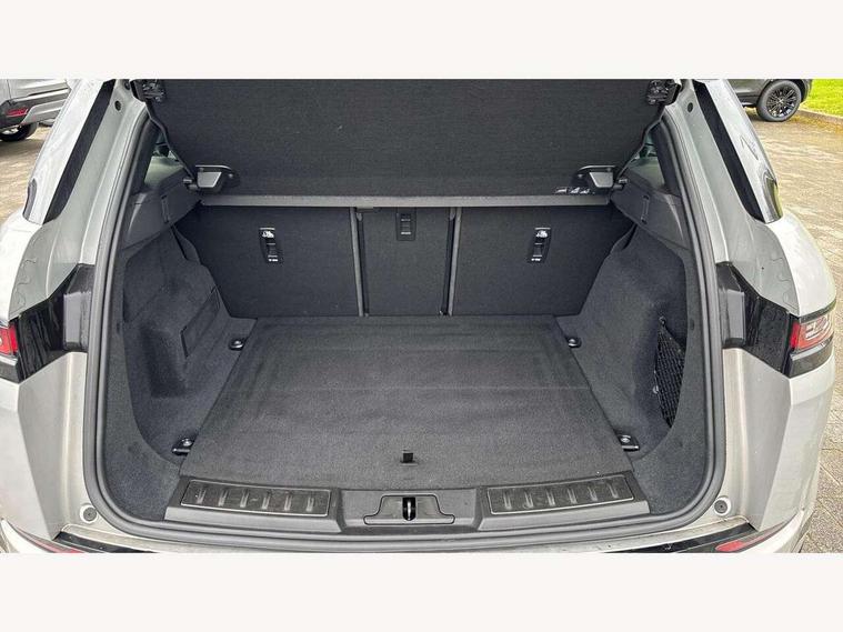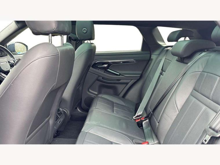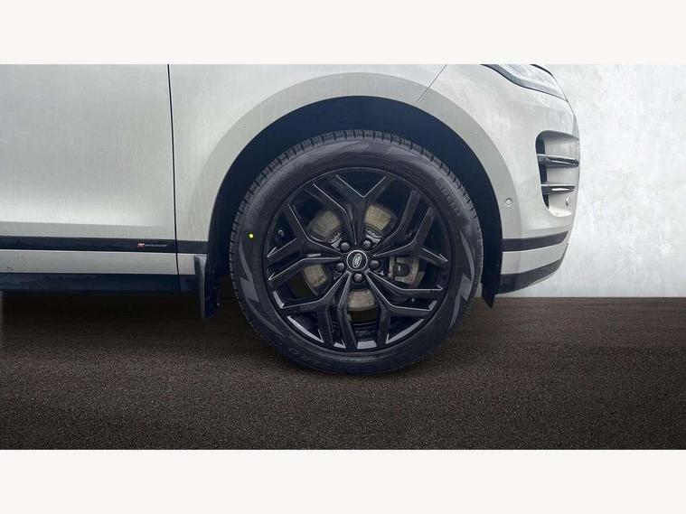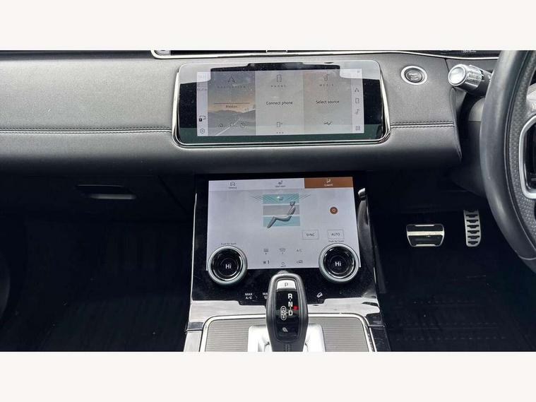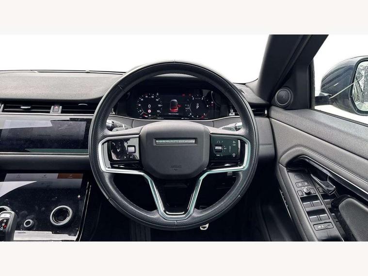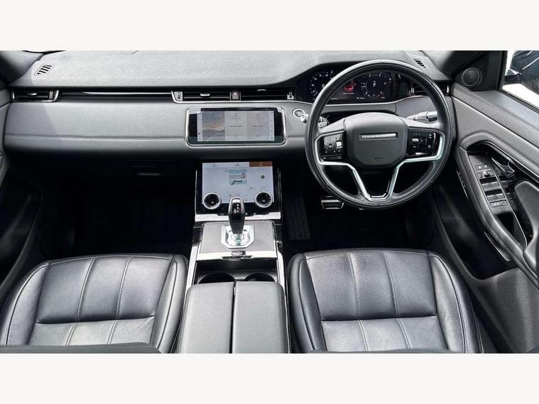 3D 360 degree surround camera, Android Auto, Apple car play, Blind spot assist, Bluetooth connectivity, Brake pad wear indicator warning light, Clear exit monitor, Driver condition monitor, Duo touch pro, eCall emergency system, Electronic power assisted steering (EPAS), InControl remote, Interactive Driver display instrument cluster, Land Rover InControl apps, Lane keep assist, Pivi pro connected includes upgraded infotainment, connected navigation pro, Nuance speech licence, Push button starter, Rear traffic monitor, Traffic sign recognition with adaptive speed limiter, Voice control system, Wade Sensing, All terrain progress control, Efficient Driveline, Passive suspension, Terrain Response 2 Auto, Digital Audio Broadcast radio-DAB, Steering wheel mounted controls, Auto headlights, Automatic headlight levelling, Electric windows with one touch open/close and anti trap, Evoque and R-Dynamic badge, Flush deployable exterior door handles, Heated rear window with timer, Heated washer jets, Heated windscreen, Power fold, auto-dimming, heated door mirrors with approach lights and auto dimming driver side, Rain sensing windscreen wipers, Rear fog lights, Rear side wing doors, Rear wiper, Shadow atlas bonnet and tailgate script, Tailgate spoiler, Third brake light, 40:20:40 split folding rear seats with centre headrest and armrest, Ambient interior lighting, Bright metal pedals, Isofix system on outer rear seats, Overhead lighting console, Overhead stowage for sunglasses, Passive front head restraints, Rear air vents, Rear centre headrest, Rear head restraints, Satin chrome gearshift paddles, Single passenger seat, Sunvisors with illuminated vanity mirrors, Twin sliding front centre armrest, 3 rear 3 point seatbelts, Anti-lock braking system (ABS), Customer configurable autolock, DSC - Dynamic Stability Control, Electronic brake force distribution, Electronic parking brake, Electronic traction control, Emergency braking, Front and rear seatbelt reminder, Hill descent control, Hill launch assist, Low traction launch, Power operated child locks, Roll stability control, Six airbags - Driver and passenger airbags/driver knee airbag/front side airbag and curtain airbags, Torque vectoring brake, Tyre pressure monitoring system, Alarm, Immobiliser, Intrusion sensor, Locking wheel nuts,